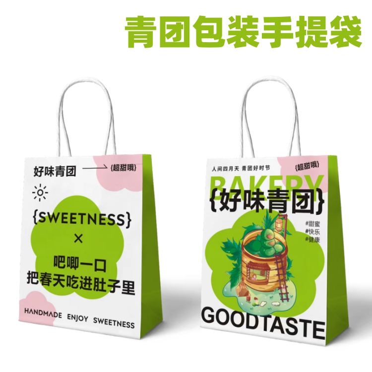 好味青团纸质手提袋 青团打包袋 艾草果糕点心外卖包装手提纸袋