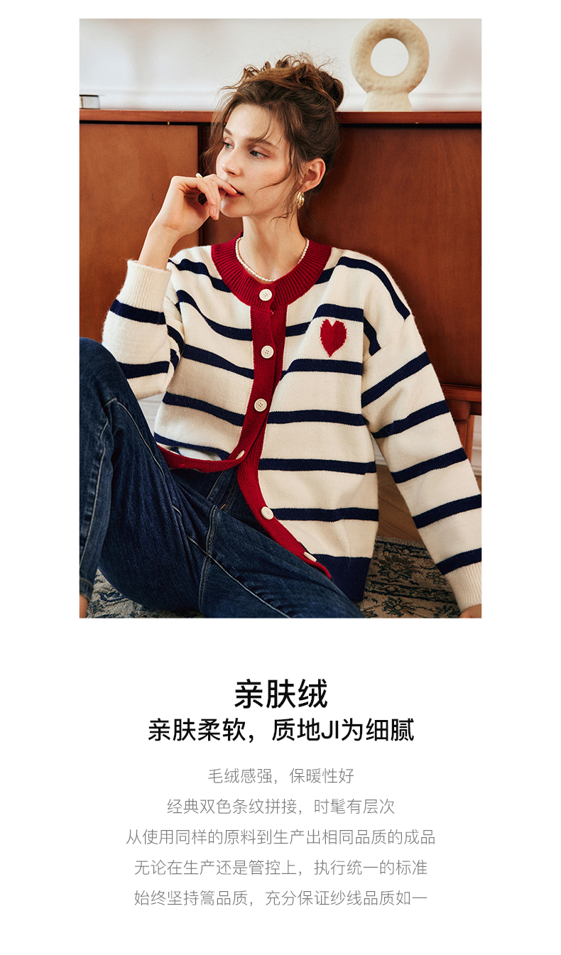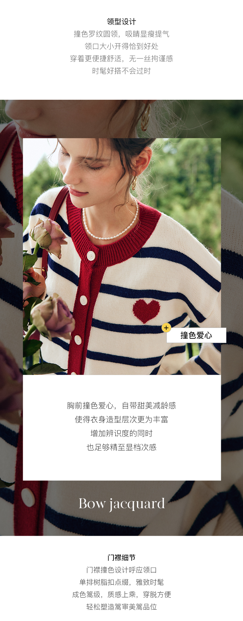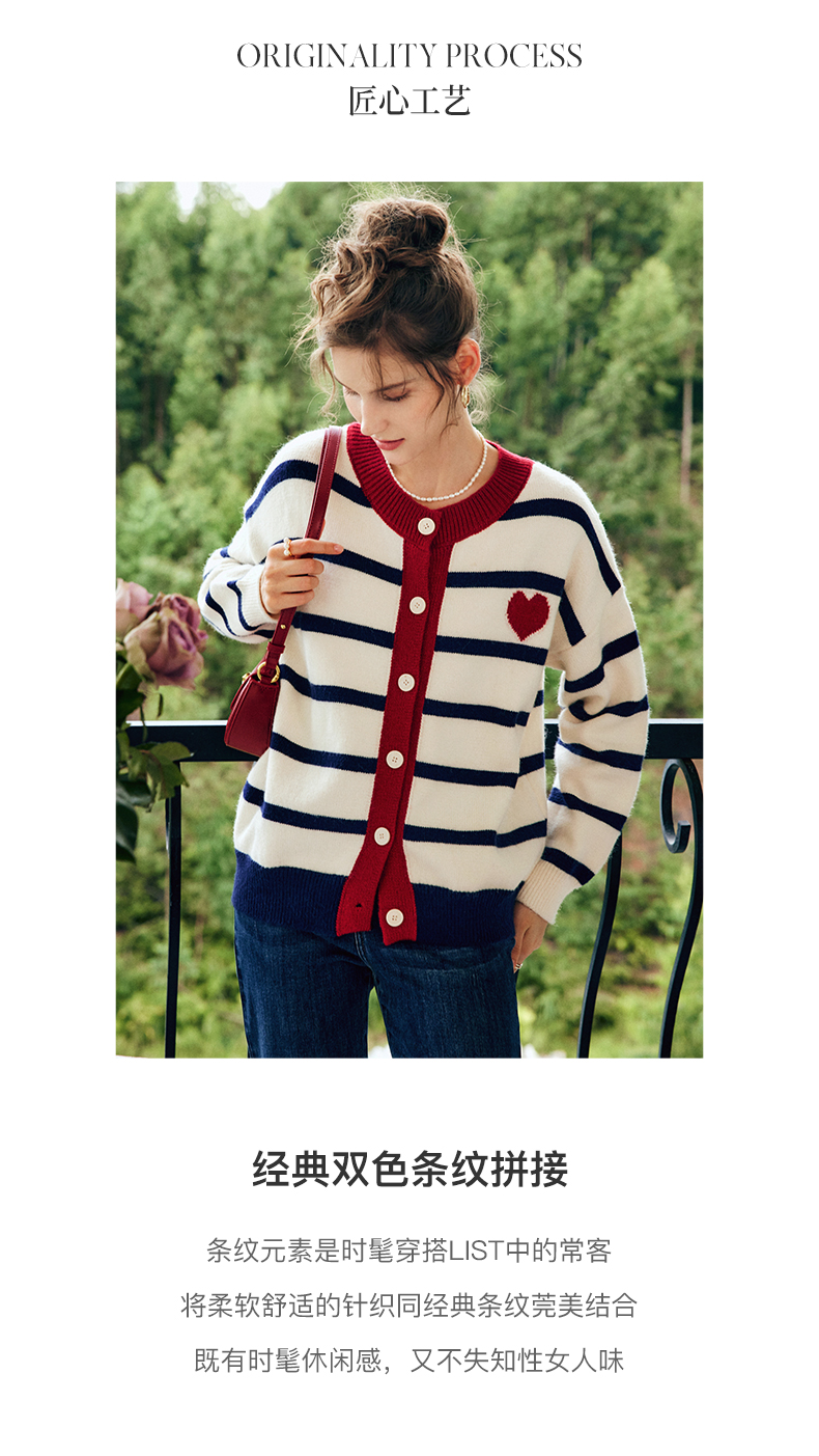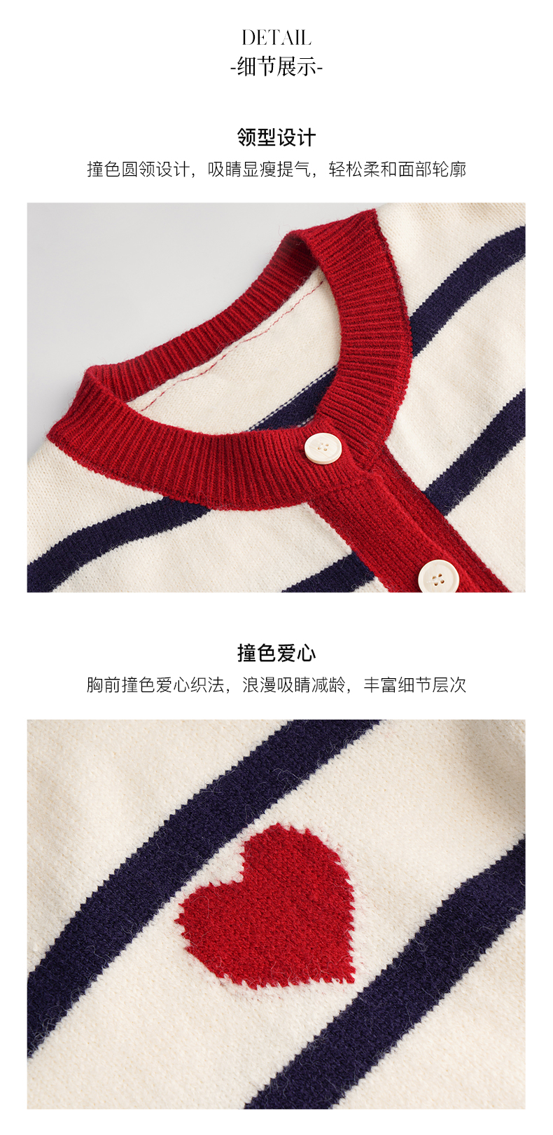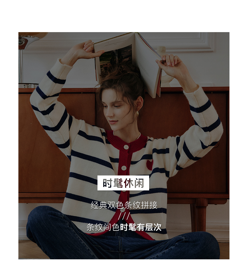 OLrain欧芮儿法式条纹毛衣开衫女秋季2022年新款撞色圆领针织外套
