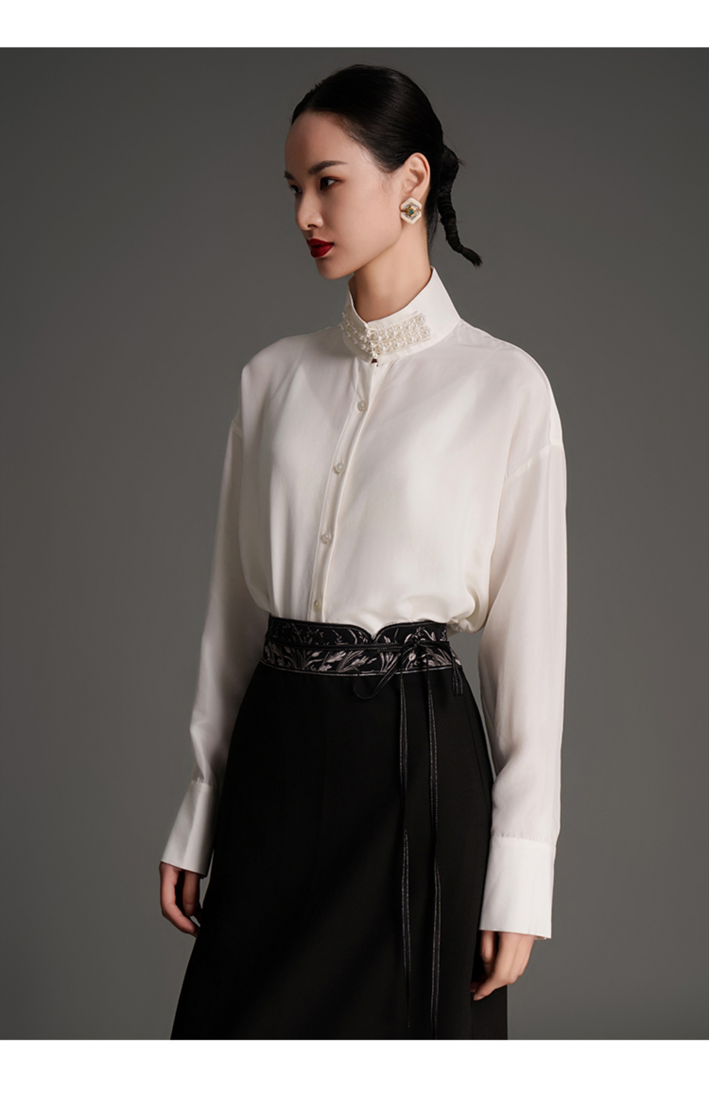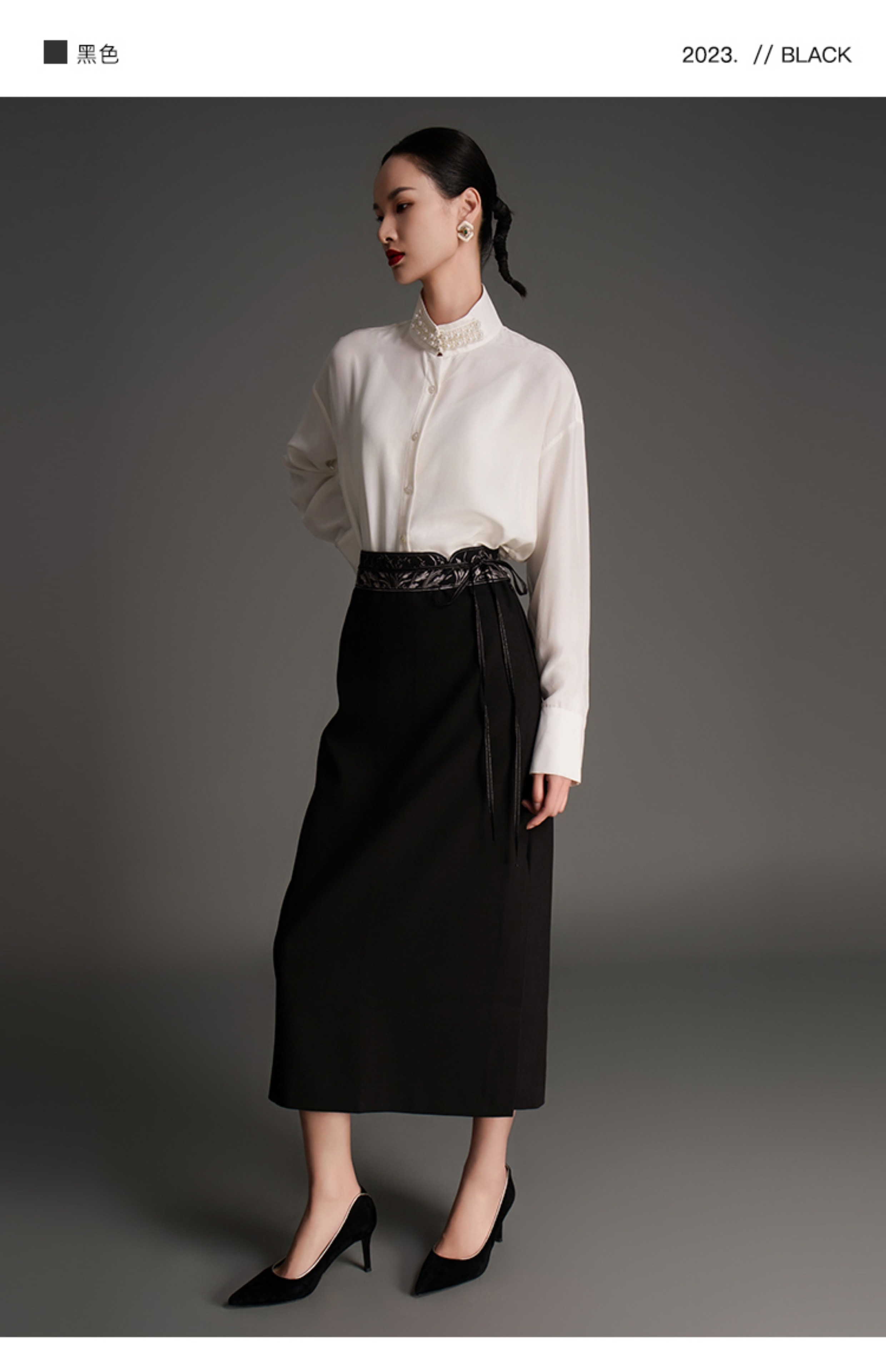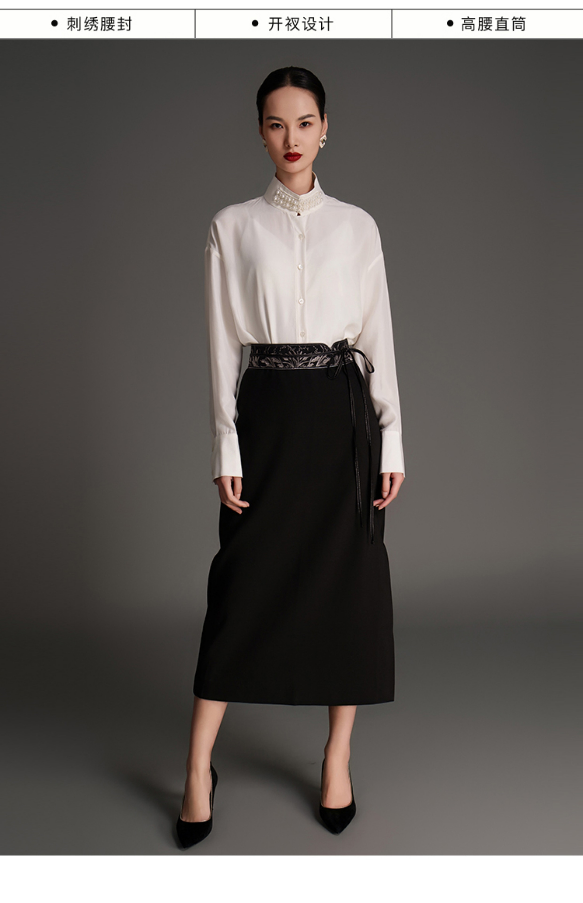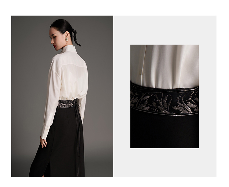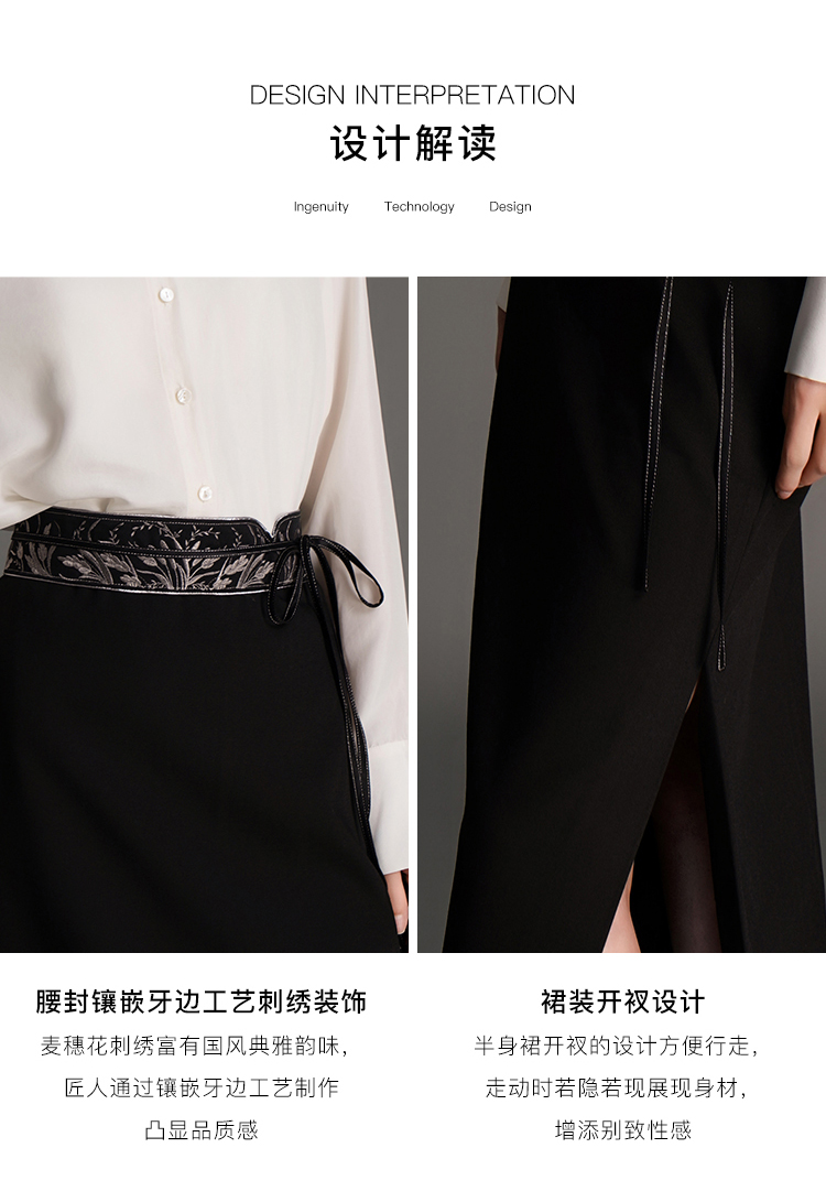 RSG2023郭培线上成衣品牌麦穗花刺绣腰带毛呢半身裙