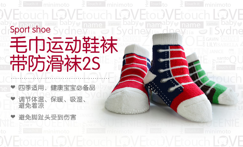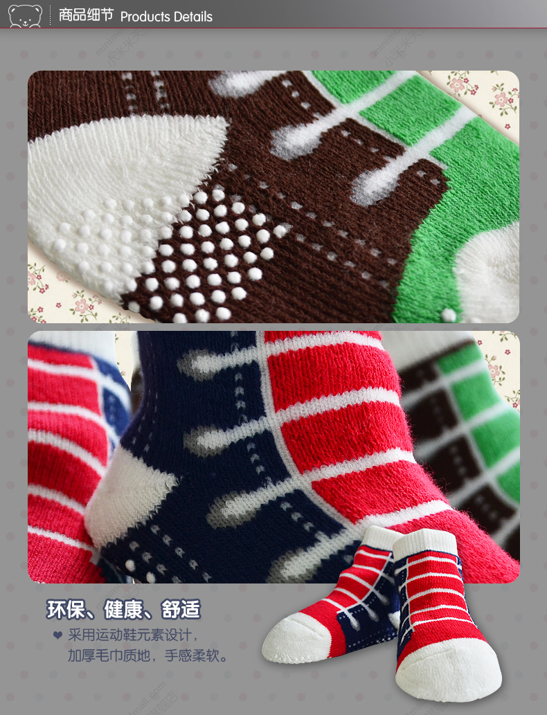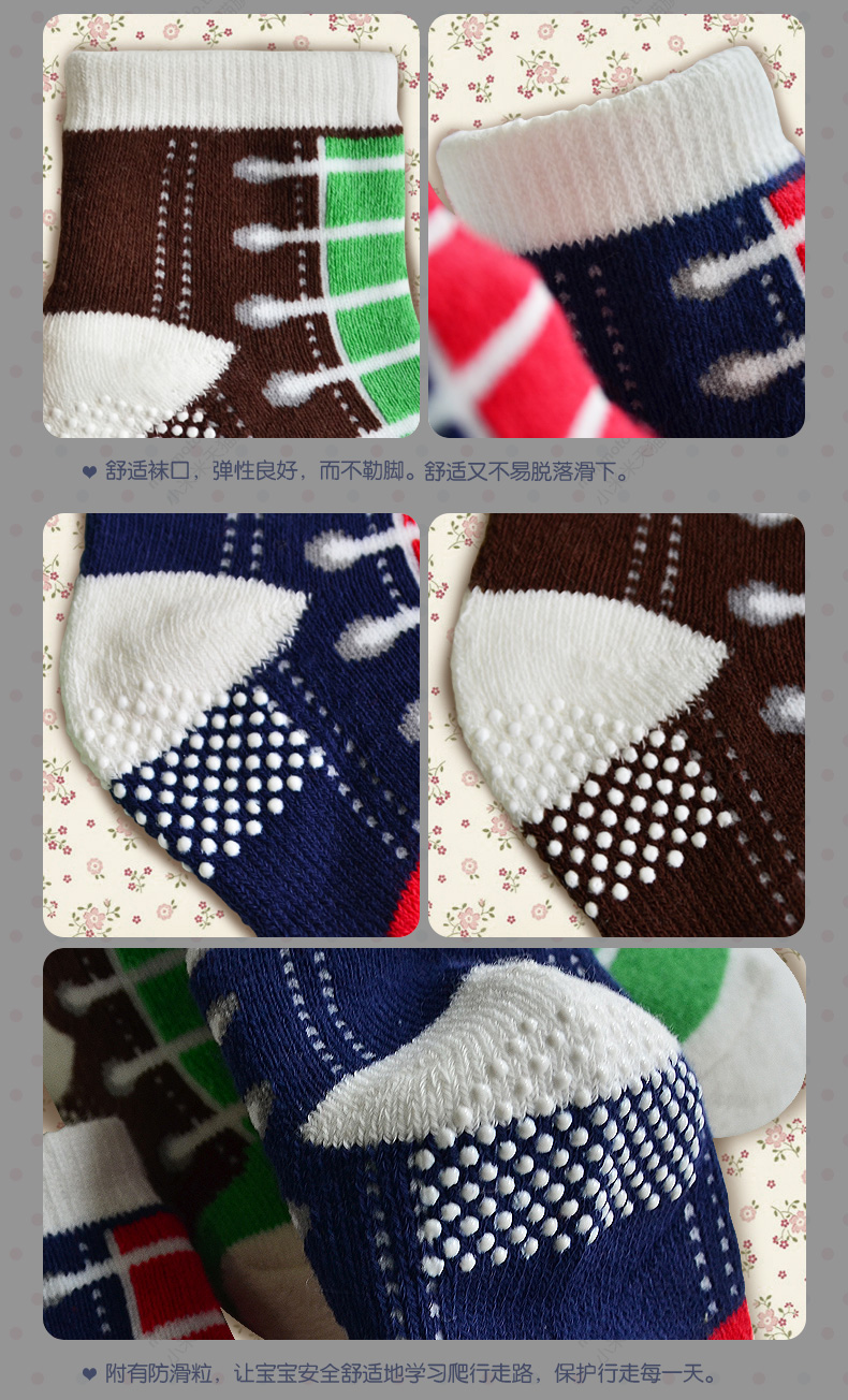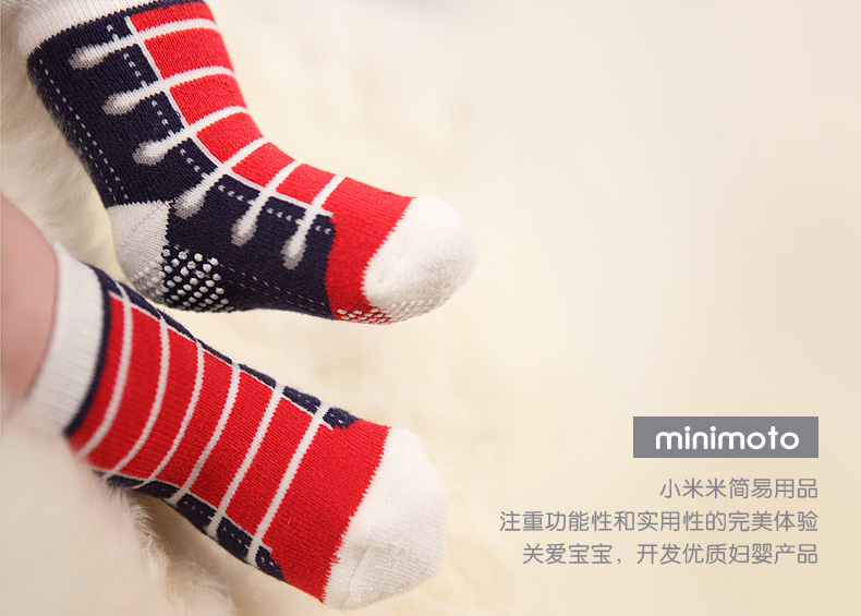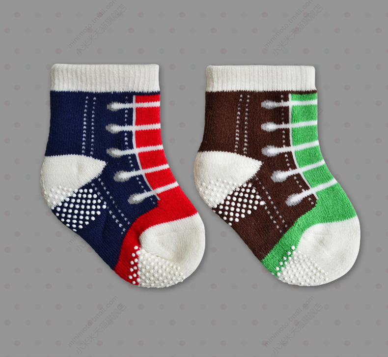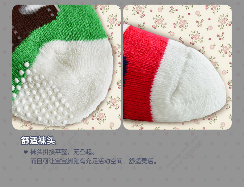 小米米配饰儿童袜子四季毛巾防滑运动袜婴儿短筒舒适地板袜男女宝宝袜2对装