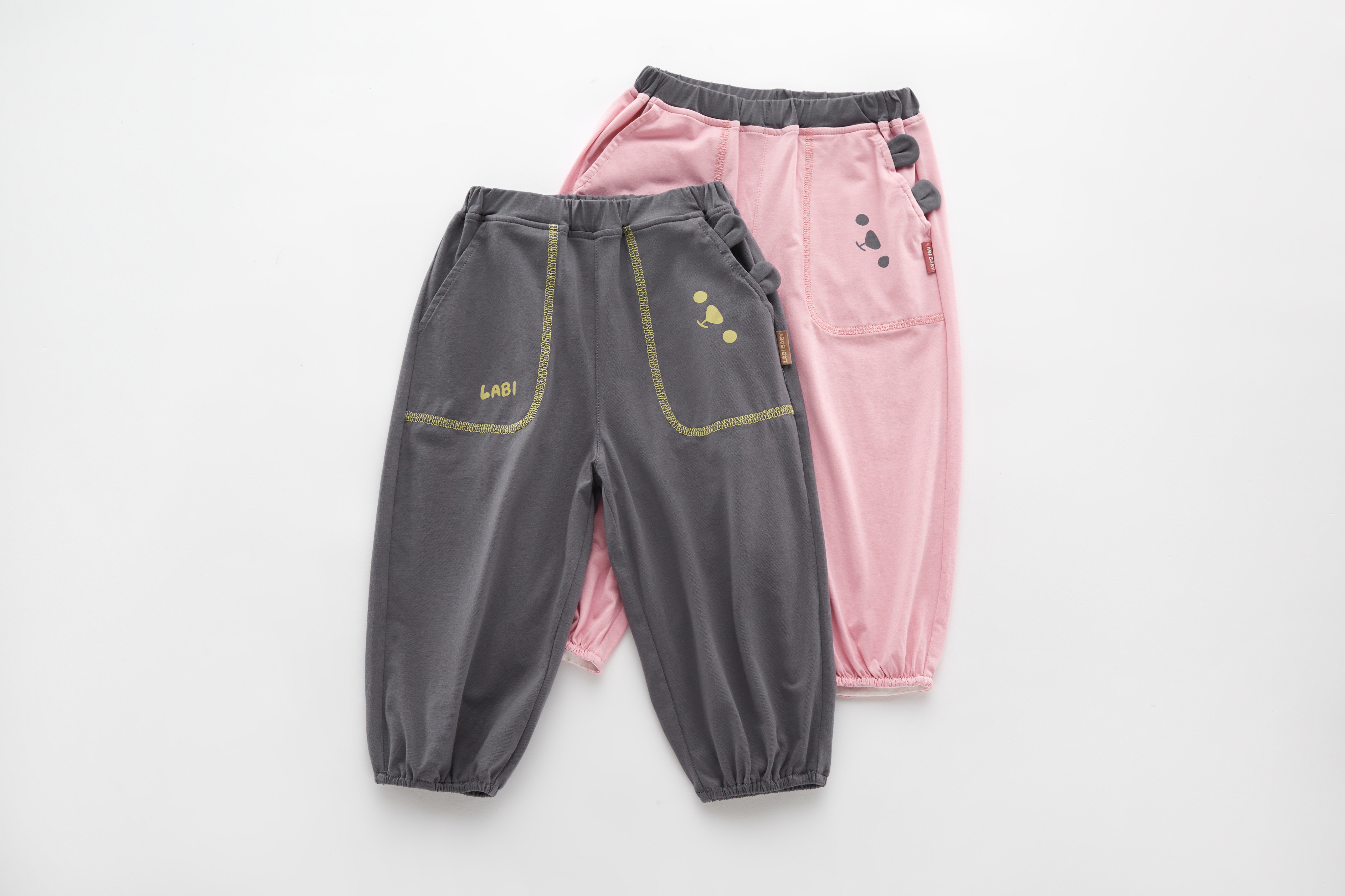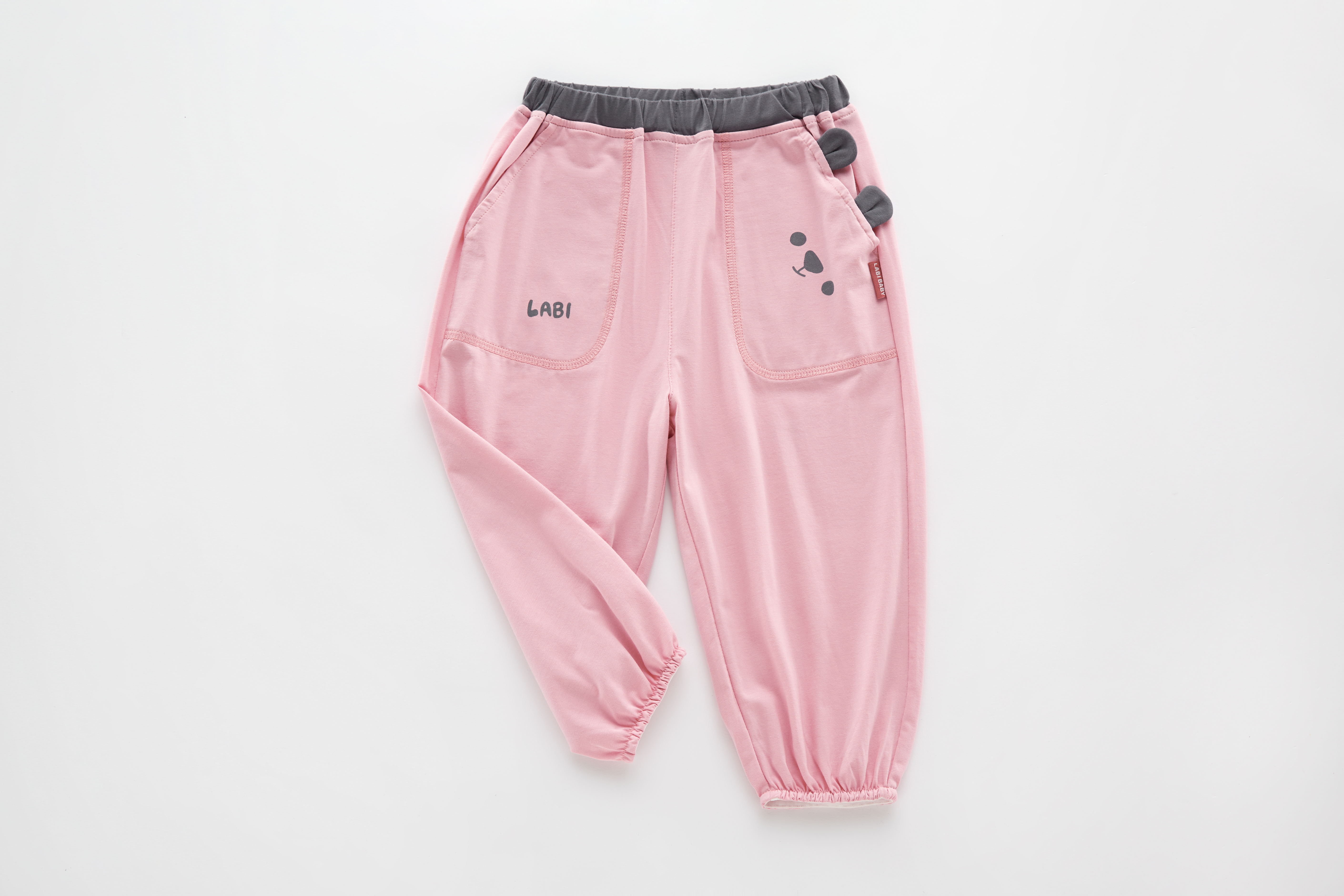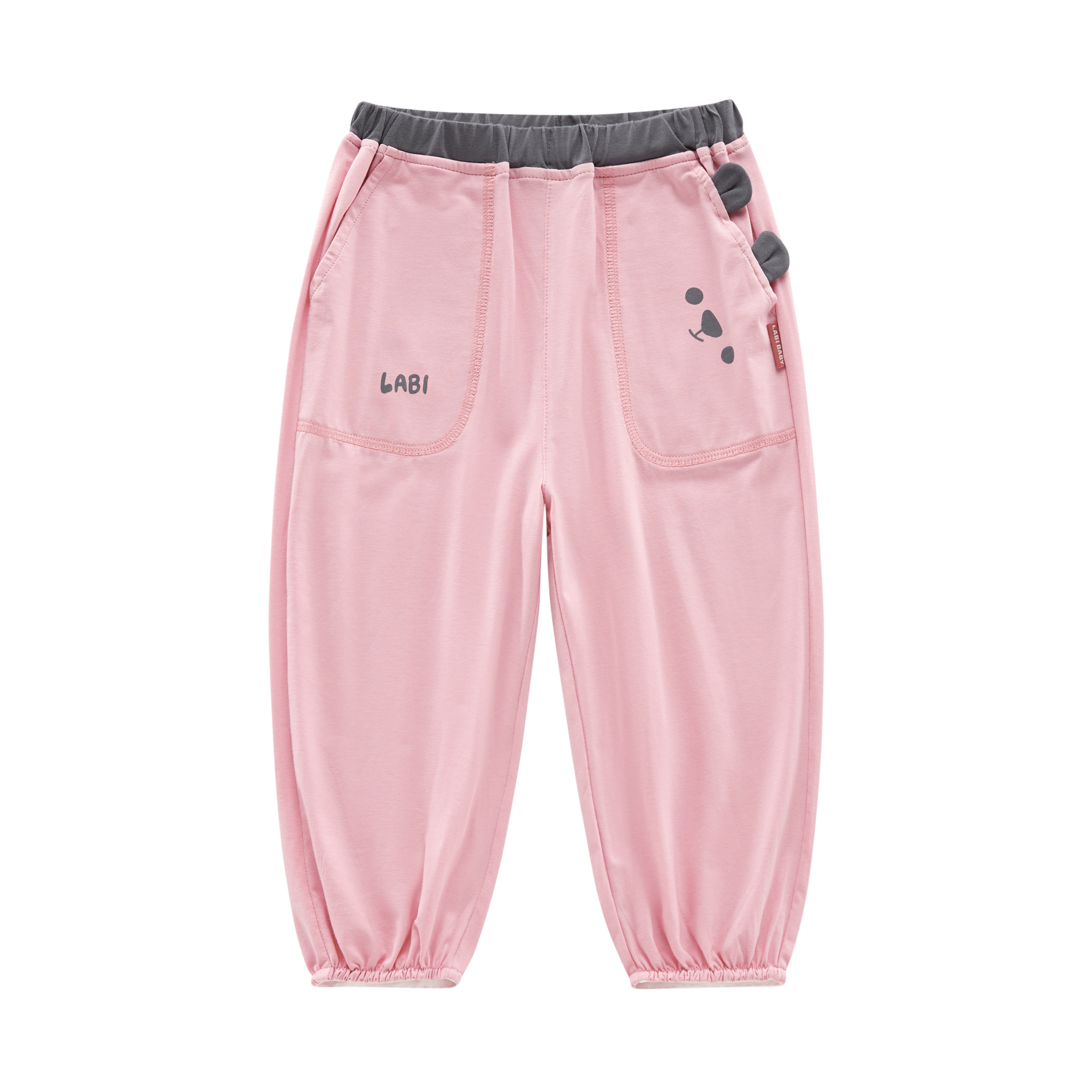 拉比-童衣类(春)I5自然撞色束口长裤玫瑰红(PH)