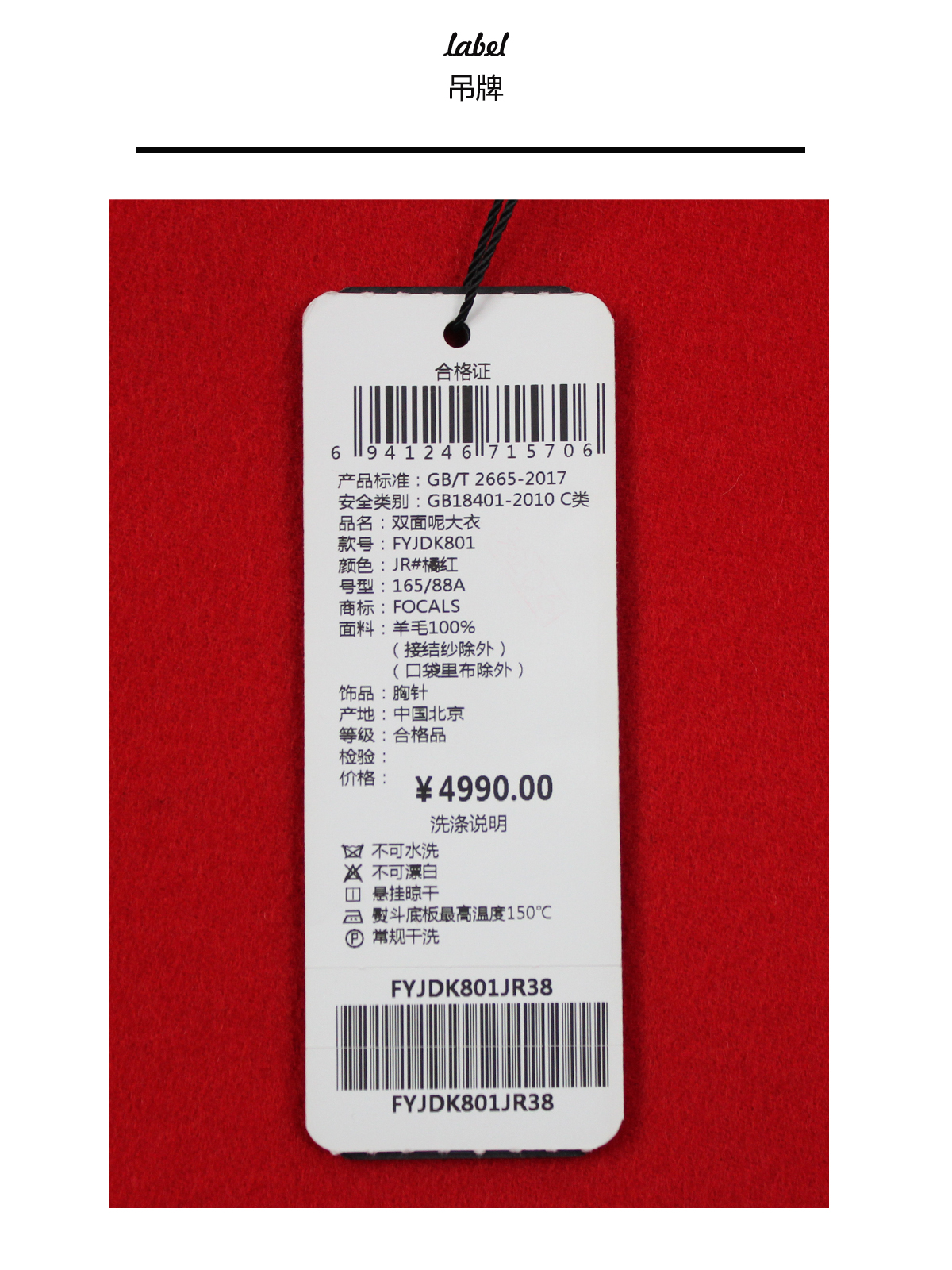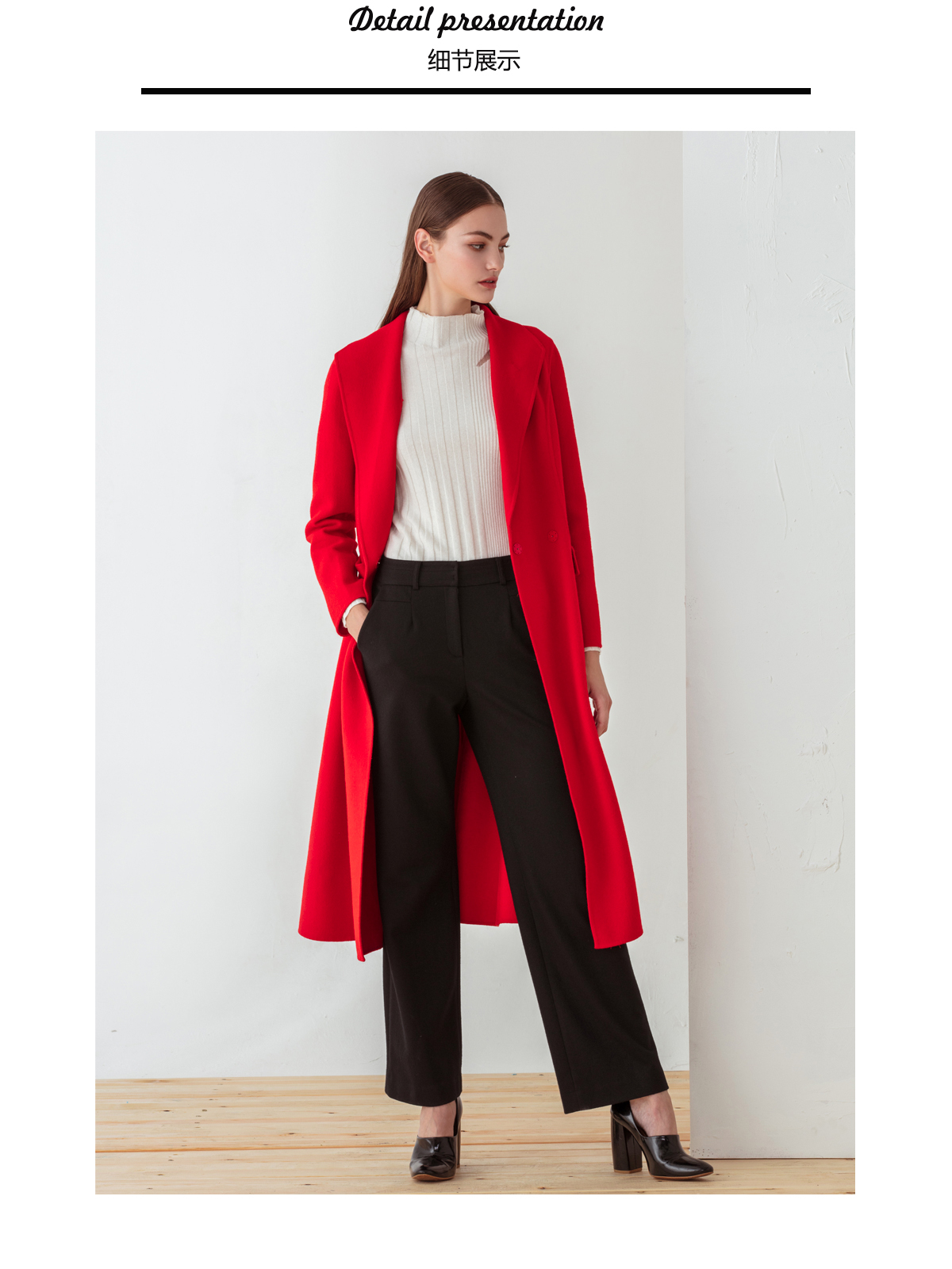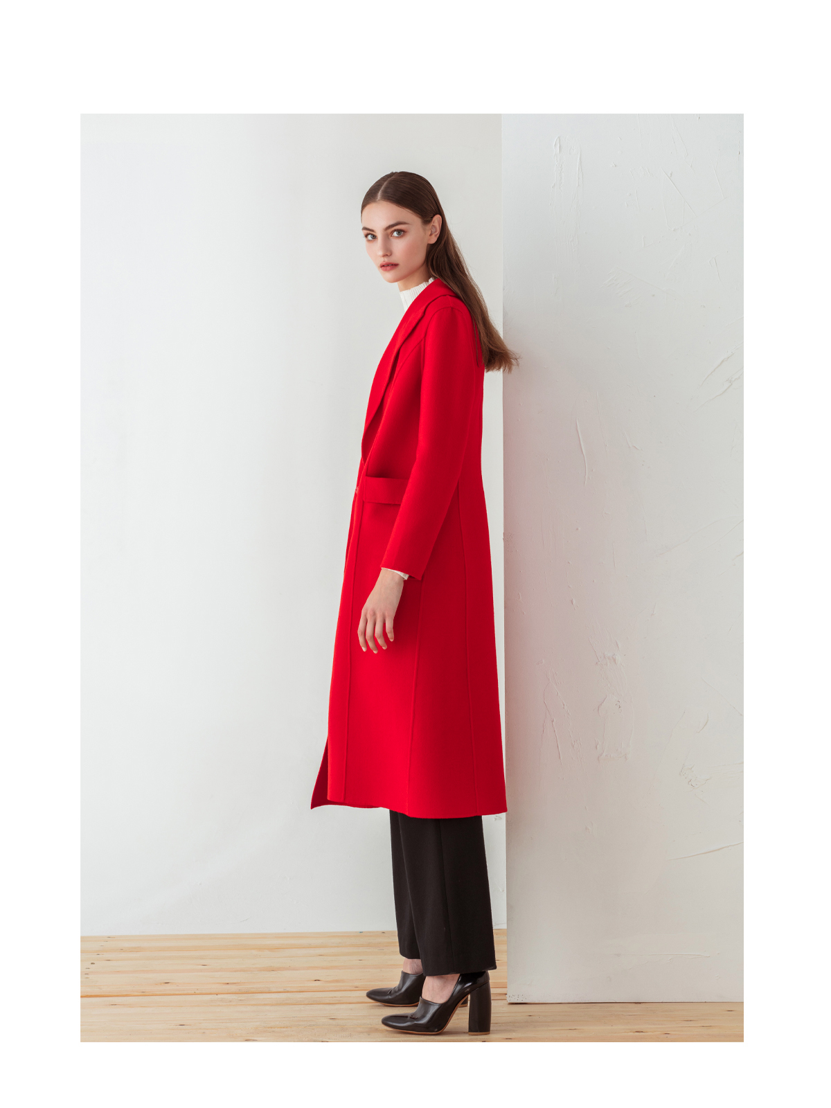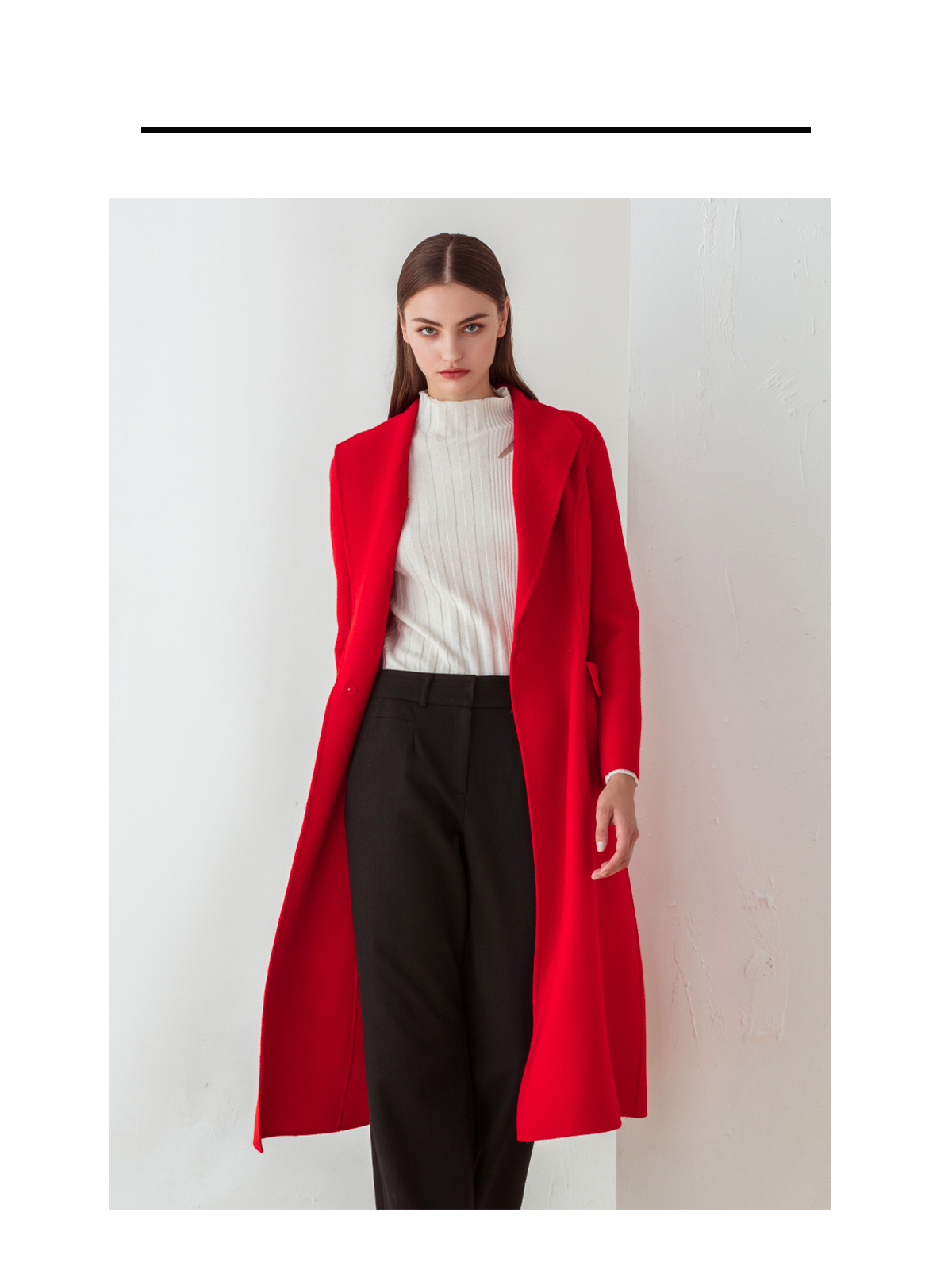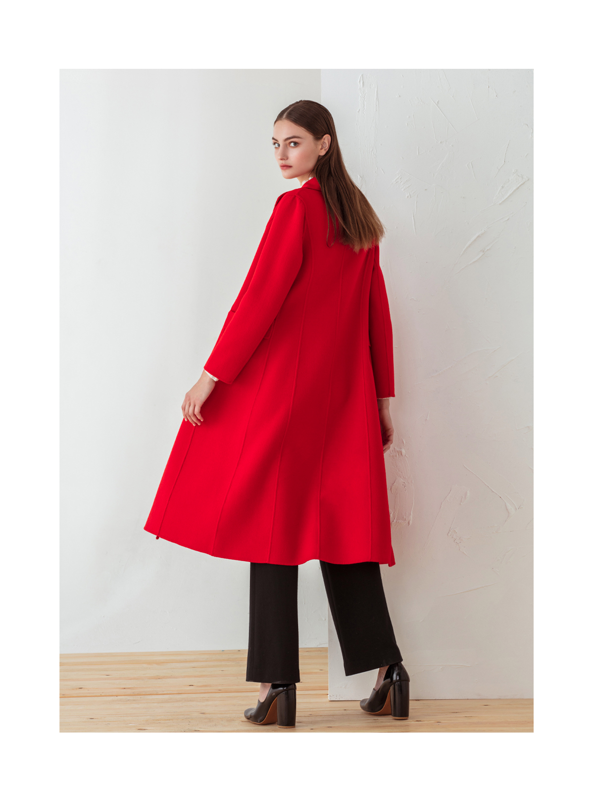 FOCALS福柯斯冬季新款修身长款纯色羊毛双面呢大衣外套FYJDK801JR