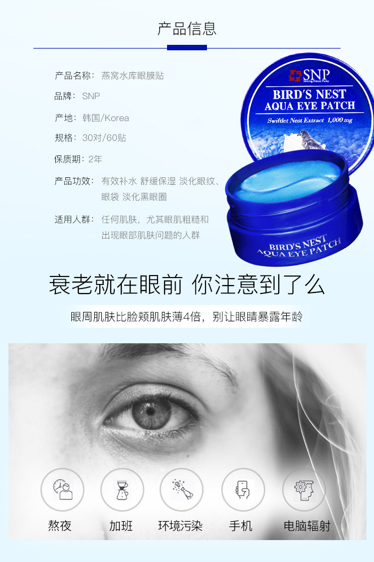 SNP爱神菲 海洋燕窝保湿眼膜(30对装)