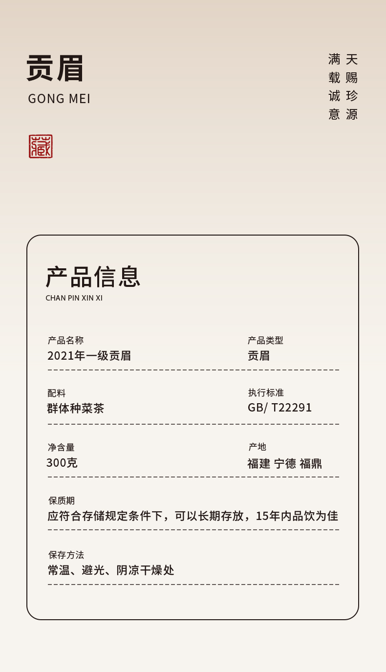 福小白 登顶福鼎白茶2021特级贡眉300g