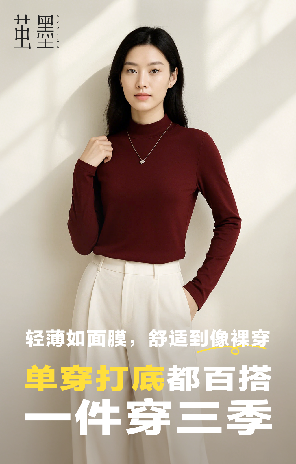 【39.9两件丨半高领面膜打底衫】德绒自发热黑科技!保暖升级,软糯亲肤,顺滑细腻!上身透气舒适,四面弹力不紧绷!单穿打底都百搭!