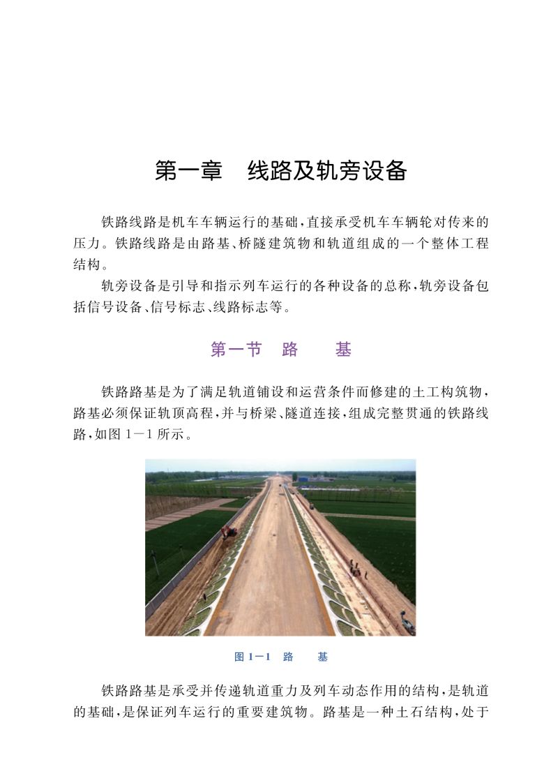 《基础知识》,阐述铁路安全管理,简要介绍线路及轨旁设备、道岔及转换设备、牵引供电设备的基本要求、结构组成。