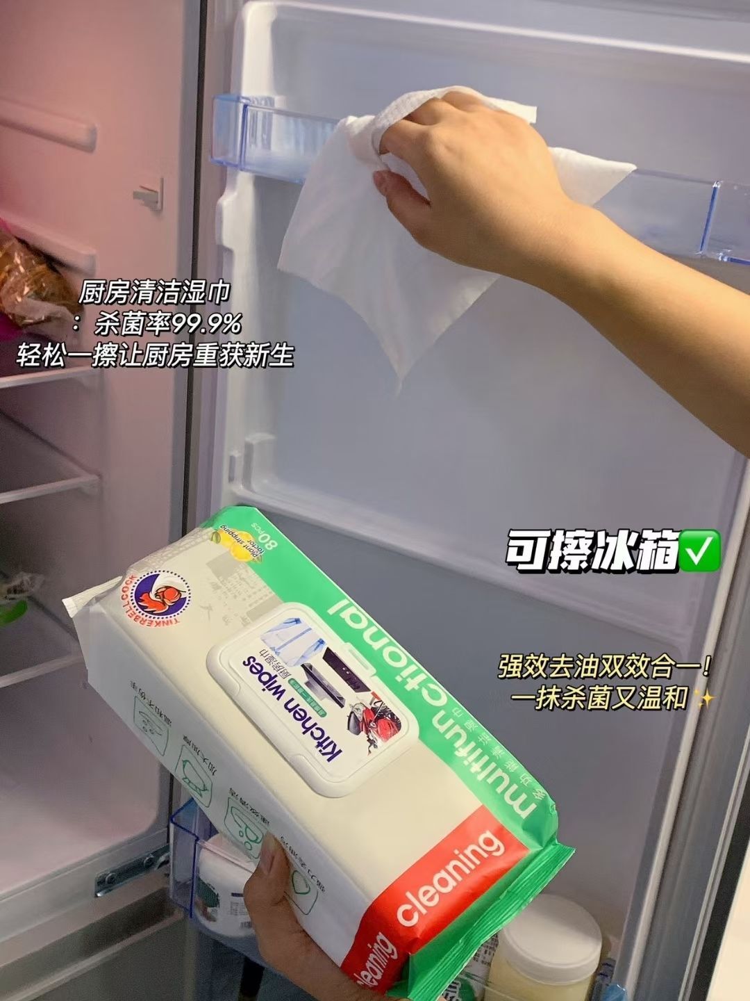 在忙碌的生活中🌱,最幸福的事情🌸无非就是在家里 和家人一起吃一顿的饭🍱 可是 灶台、饭桌在一顿饭之后留下许多💥的油污 我相信🍃 很多人都是用抹布来处理这种情况 但是抹布很难清洗 而且它还含有许多细菌👻 据调查显示 一块普通家用抹布 可能沾有5000亿个细菌💢 新的抹布在厨房里使用5天后 细菌总量会比原来增长1000万倍😫 这样的抹布,你真的放心拿去厨房使用吗❓️ 我们也不可能天天换新抹布吧❓️ 那么换成这款厨房湿巾呗💐 自带清洁剂 随用随去污方便🌸 一次性也避免了交叉污染
