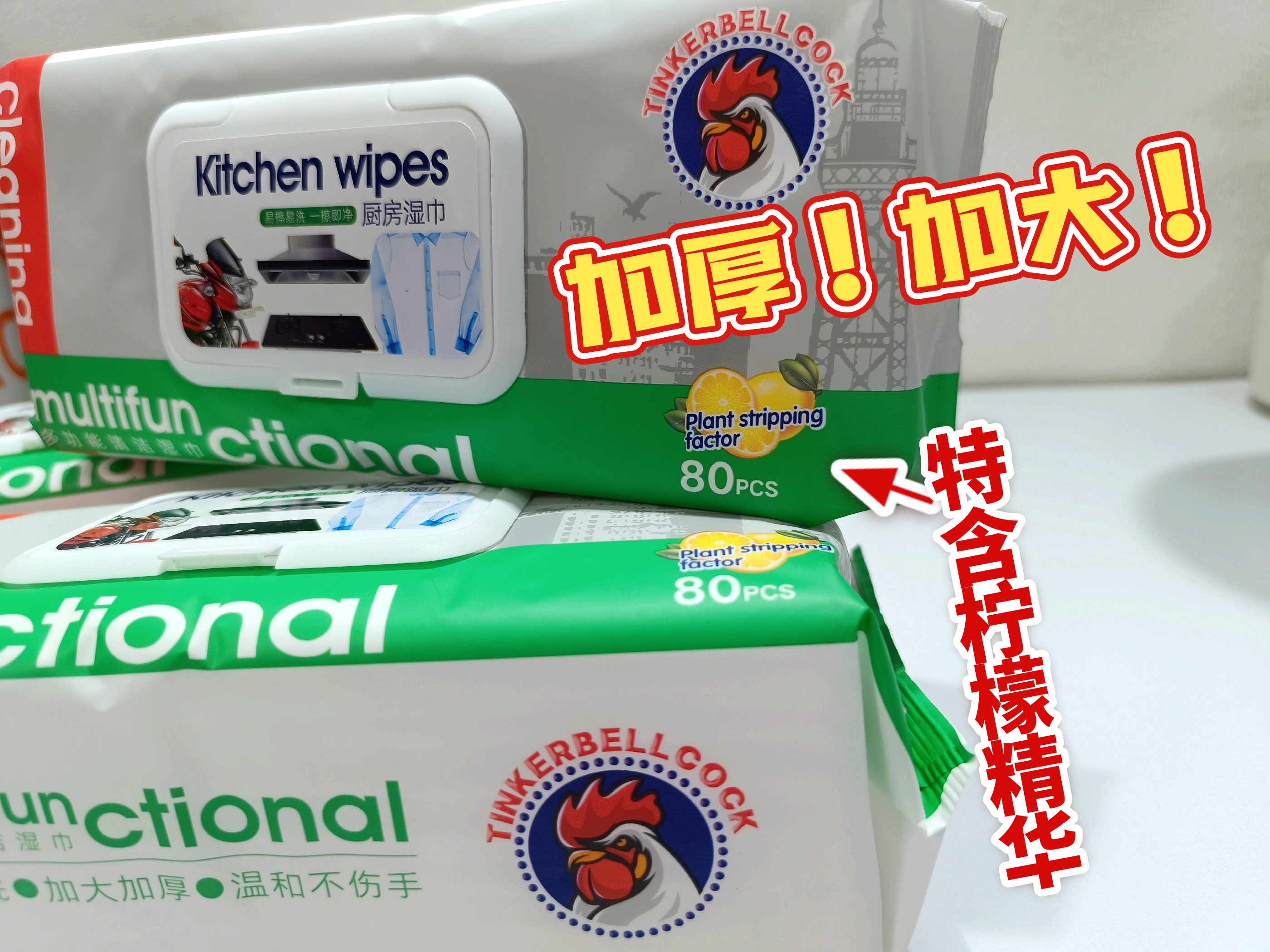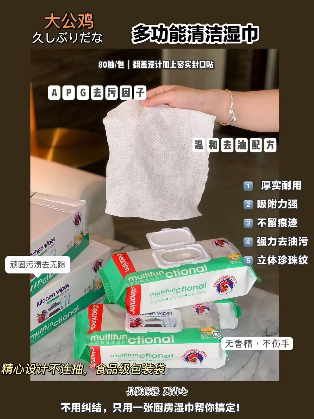 之前用过那么多款厨房湿巾 直到用到👉大公鸡🐓巨型厨房湿巾 我真的是被震撼了👏 ✨超大的尺寸,一包顶普通湿巾3包 一张就是一个小抹布🉑循环利用,超大加厚, 80片一包,自带清洁剂,厨房油污,一张搞定 薅羊毛🦙的价格必须入手 ❗❗❗ 以下为团长实拍 请勿盗图⭕️