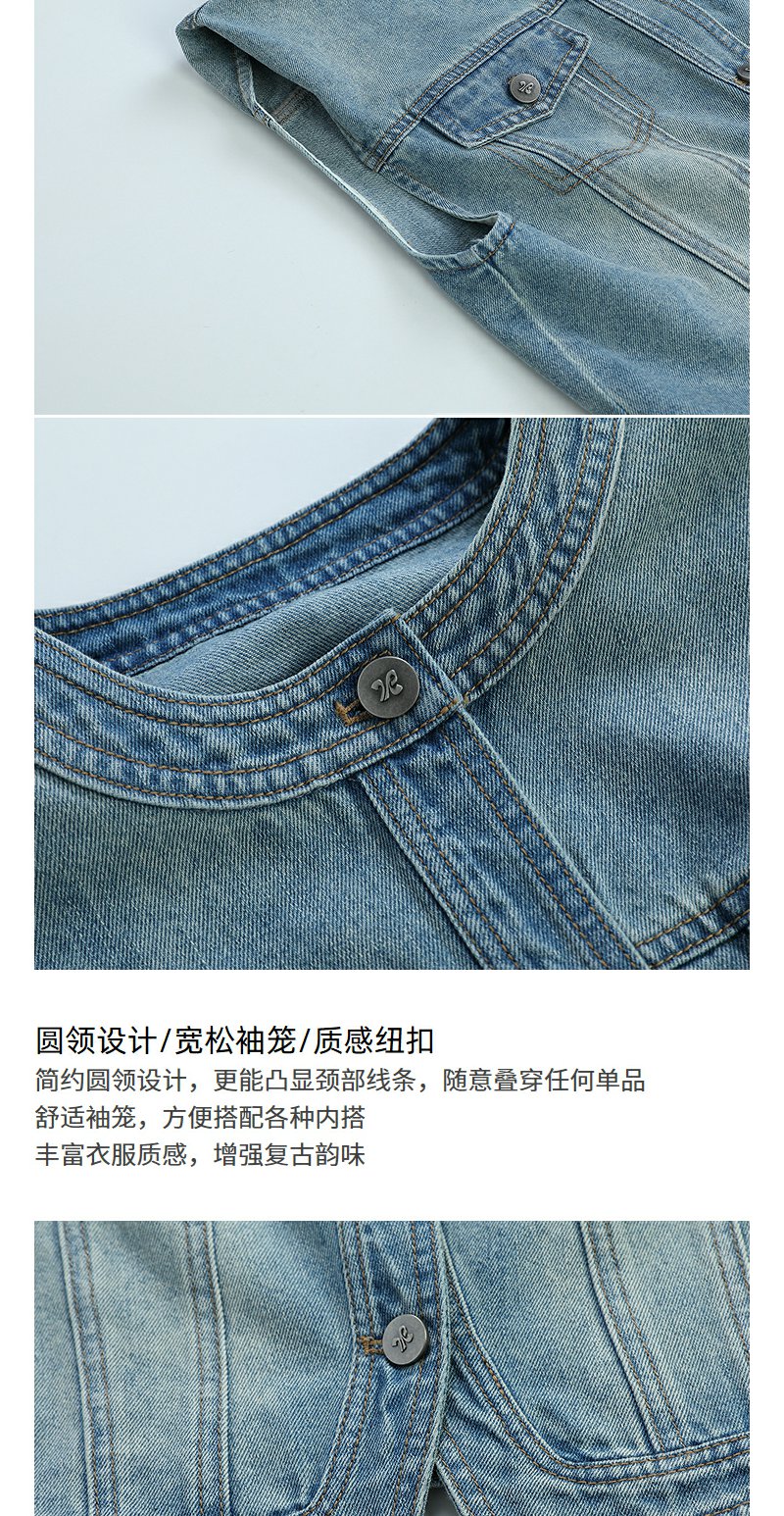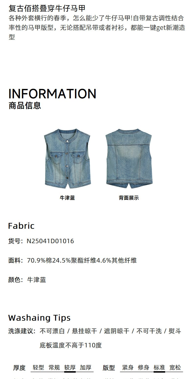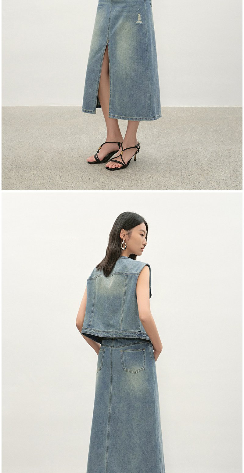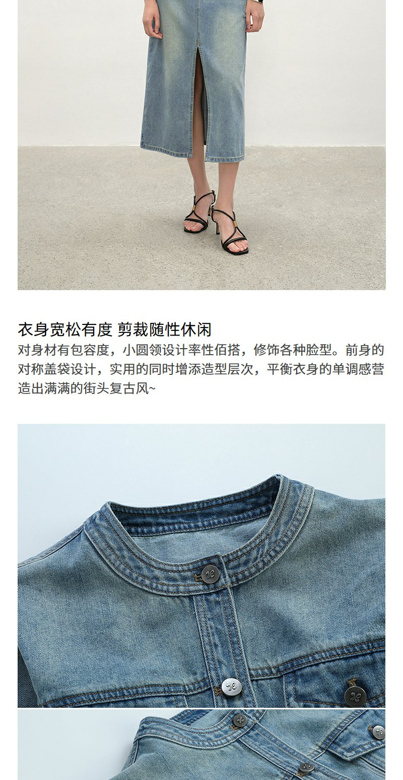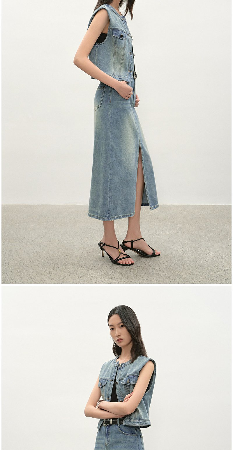 NEELLY纳俪商场同款夏新款复古百搭牛仔套装女简约叠穿马甲两件套N25041D01016