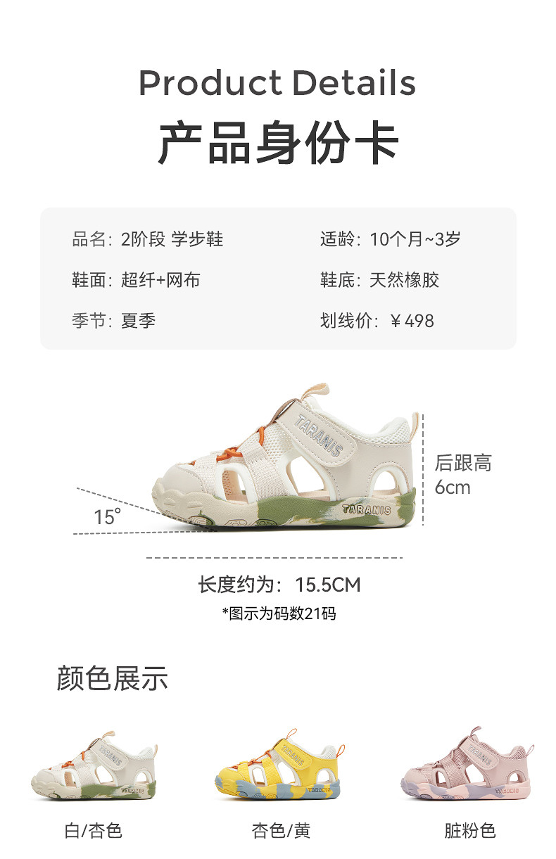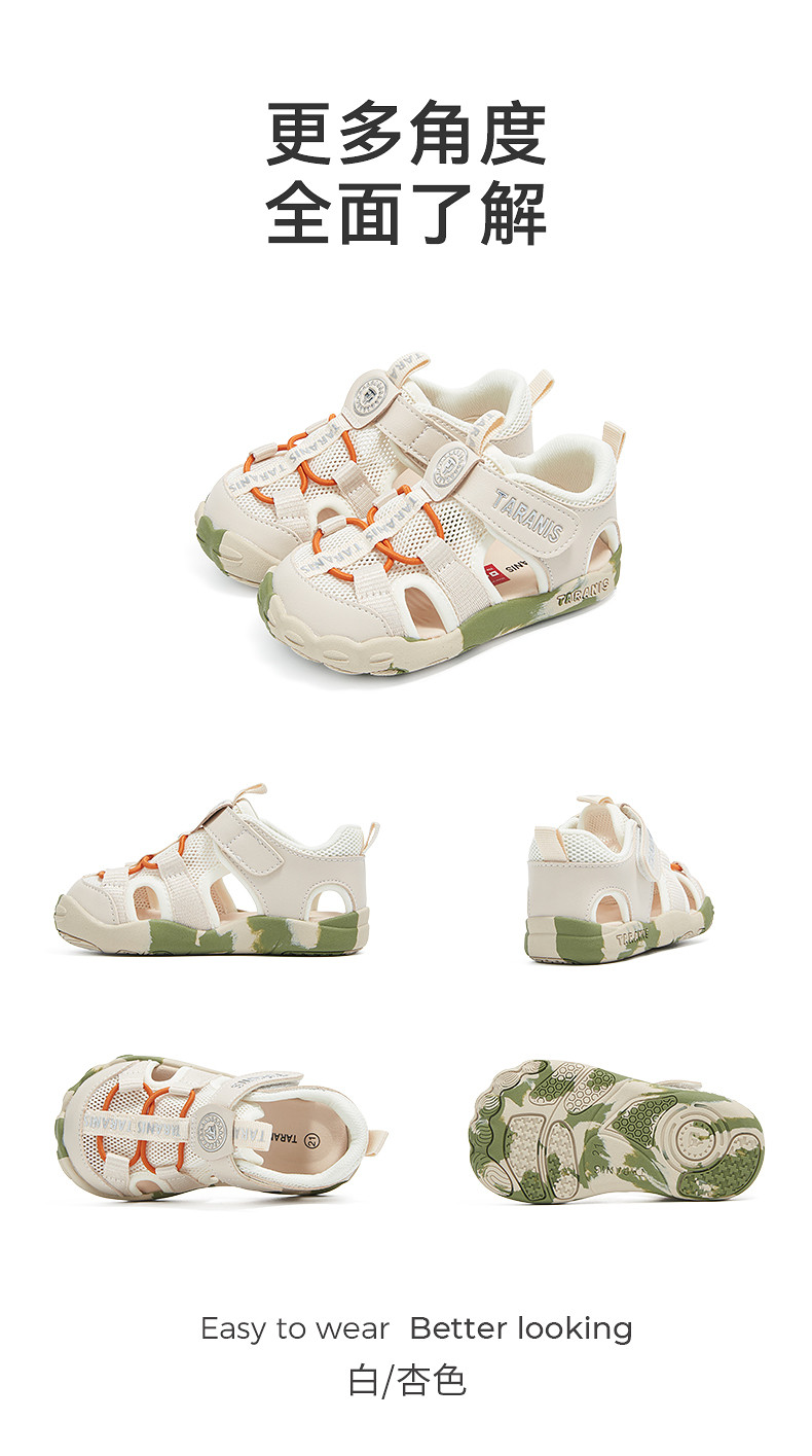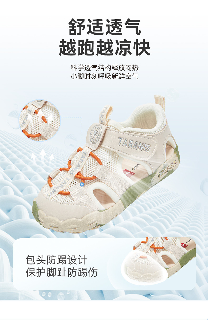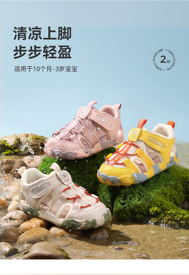 泰兰尼斯夏季新款萌爪系列学步凉鞋男宝宝防踢机能鞋透气女童鞋子T07T6B9070