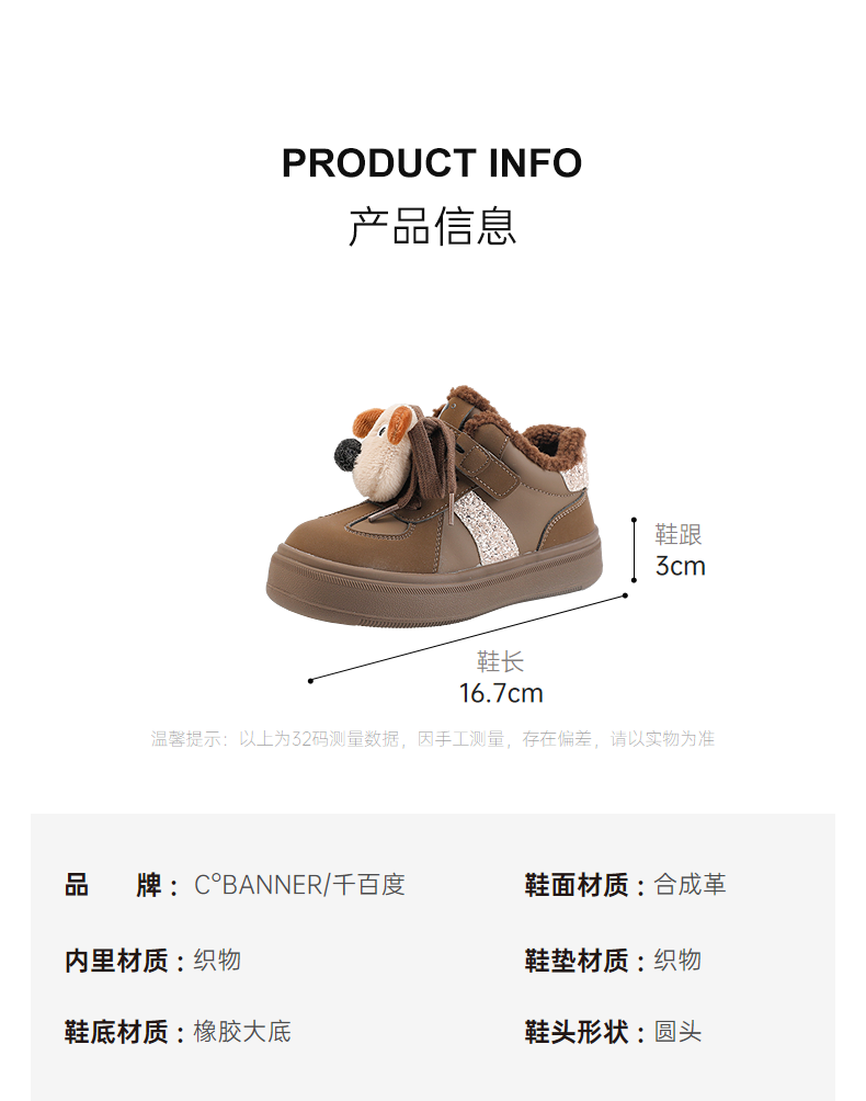 千百度冬季趣味立体饰扣卡通造型童鞋A25680009