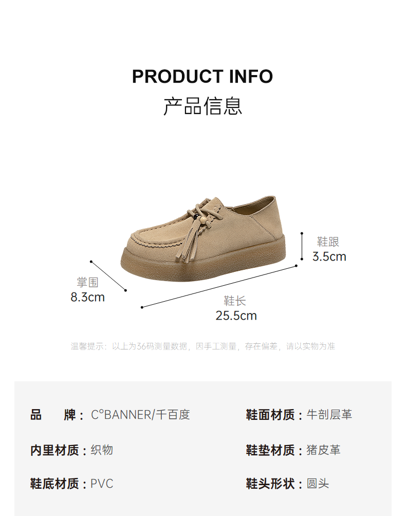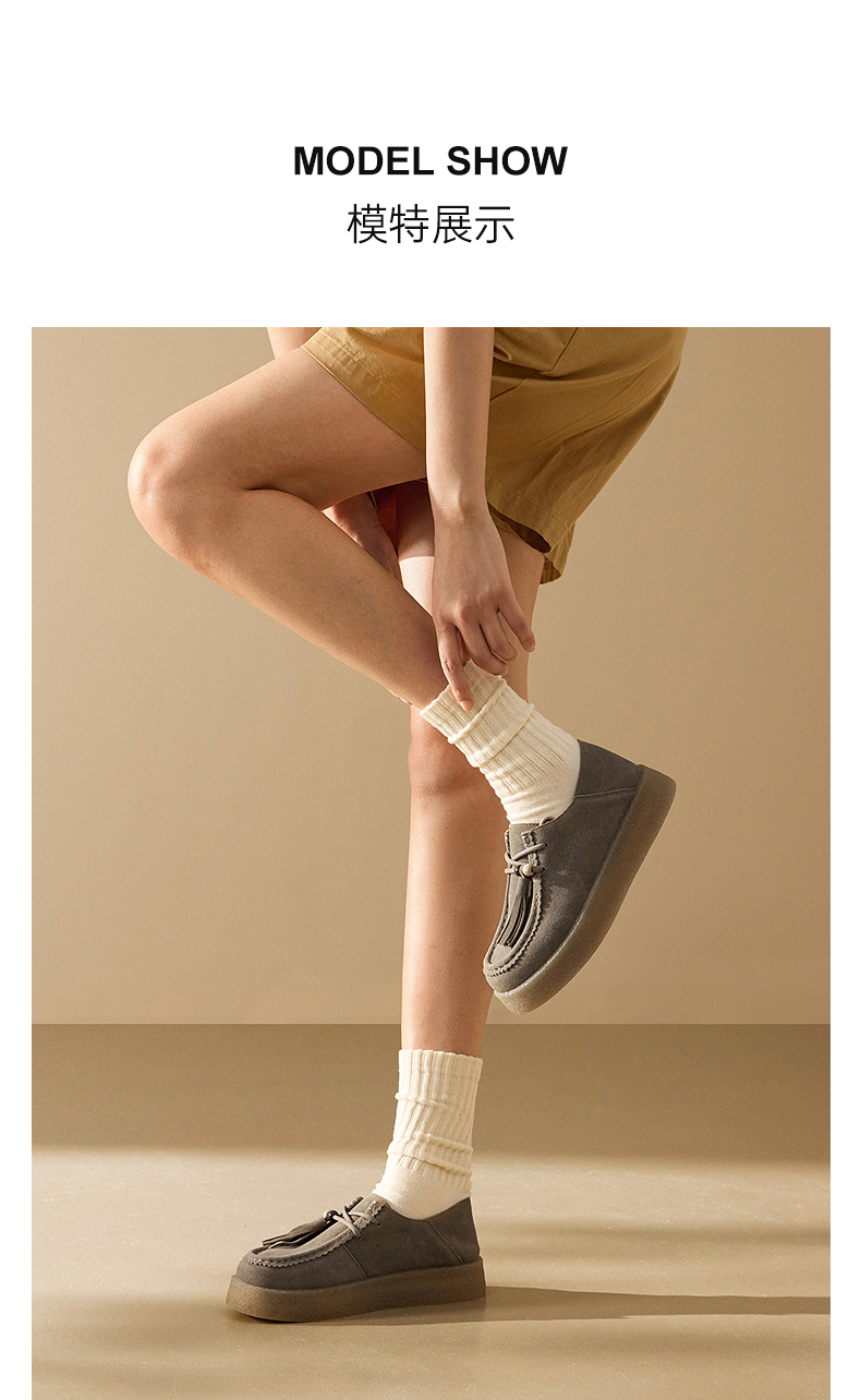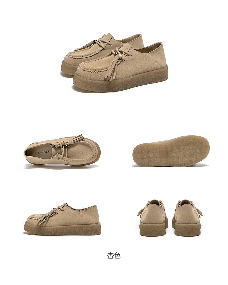 千百度复古厚底袋鼠鞋女款休闲德训鞋增高运动乐福鞋A25126804