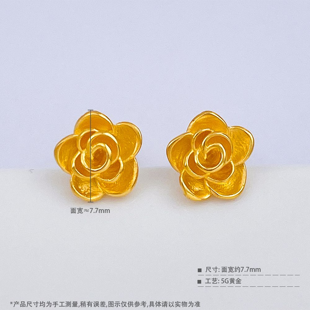【限时7.5折】【定价黄金】足金999 5G黄金玫瑰花形耳钉(AG5GES00104)(预售产品下单后不退款不退货不换货不补差价)(预售产品下单后不退款不退货不换货不补差价)