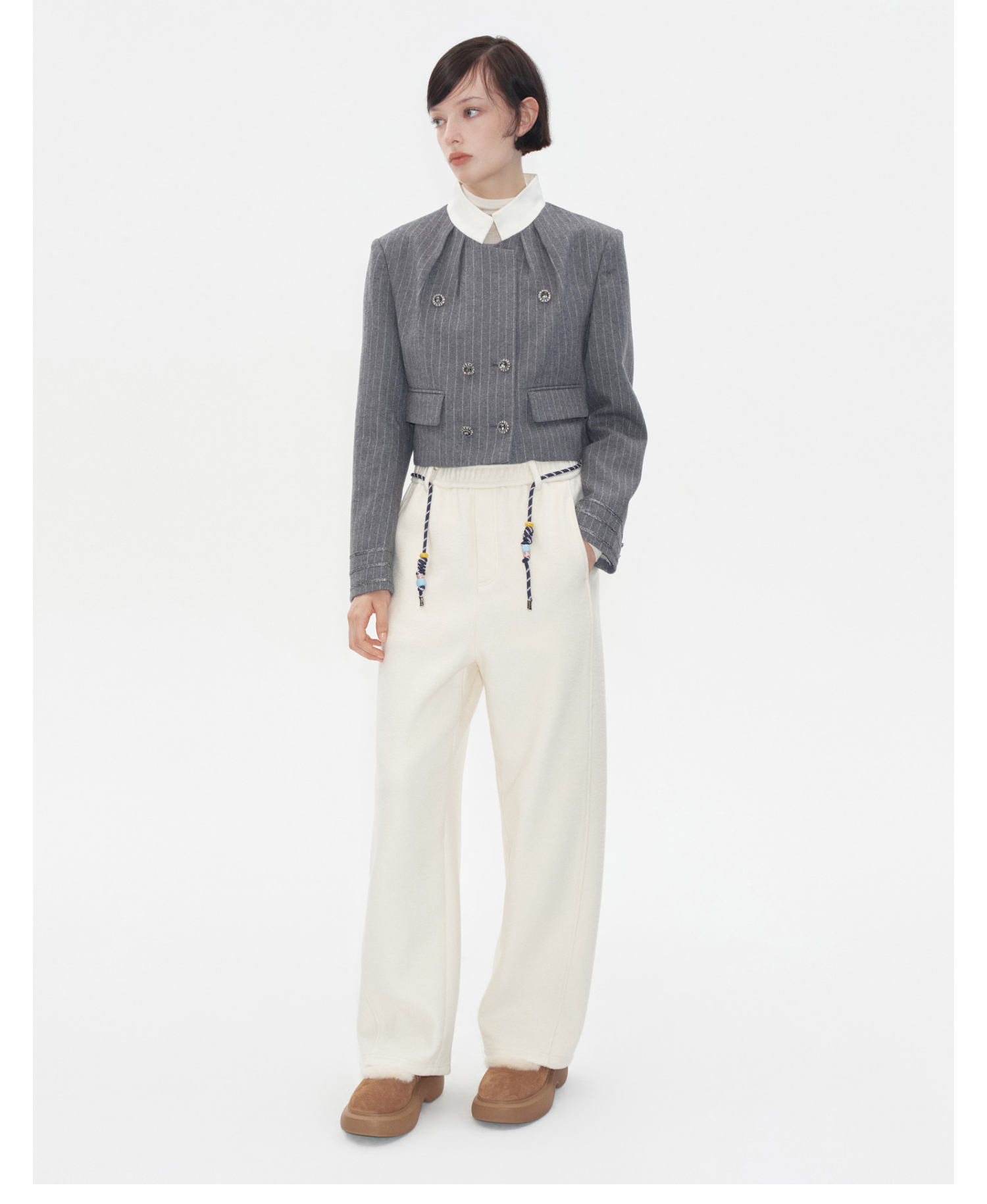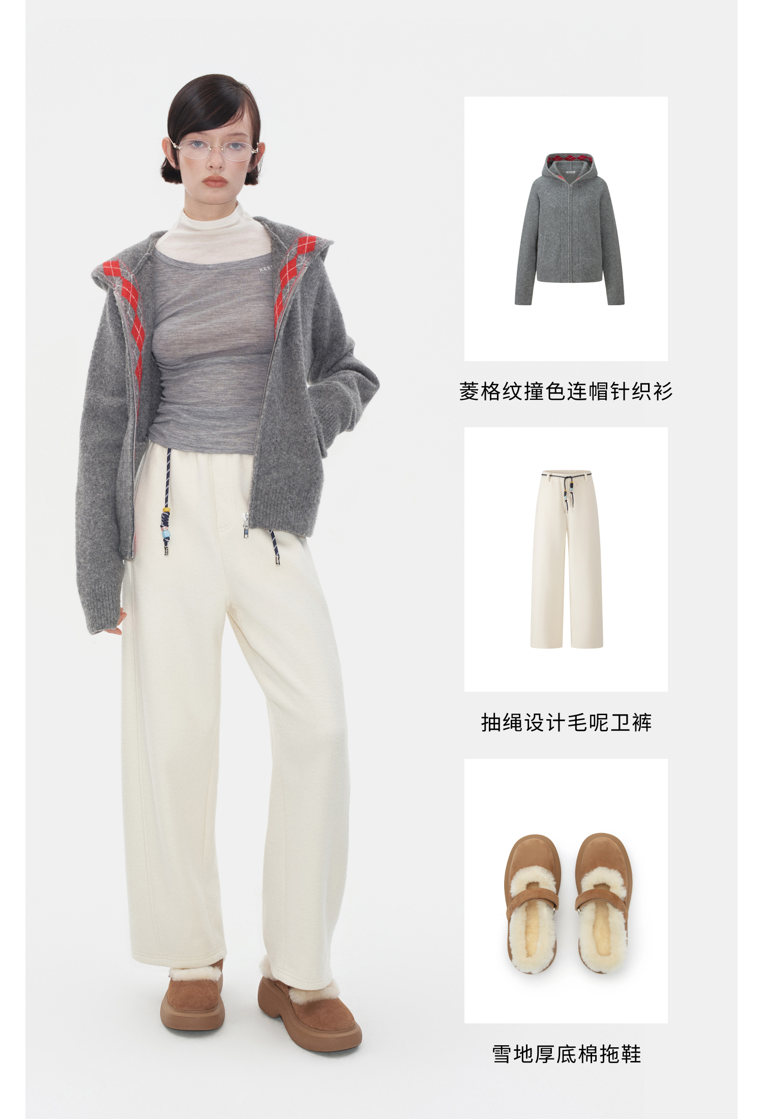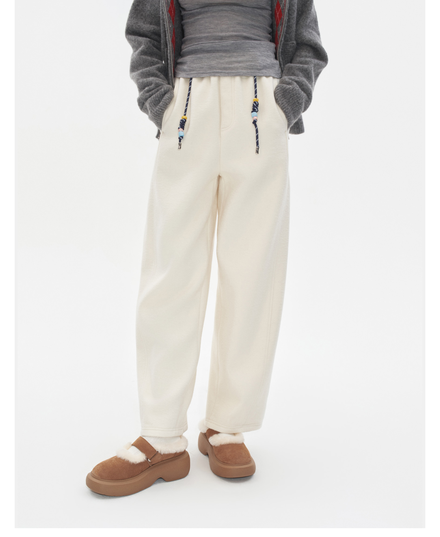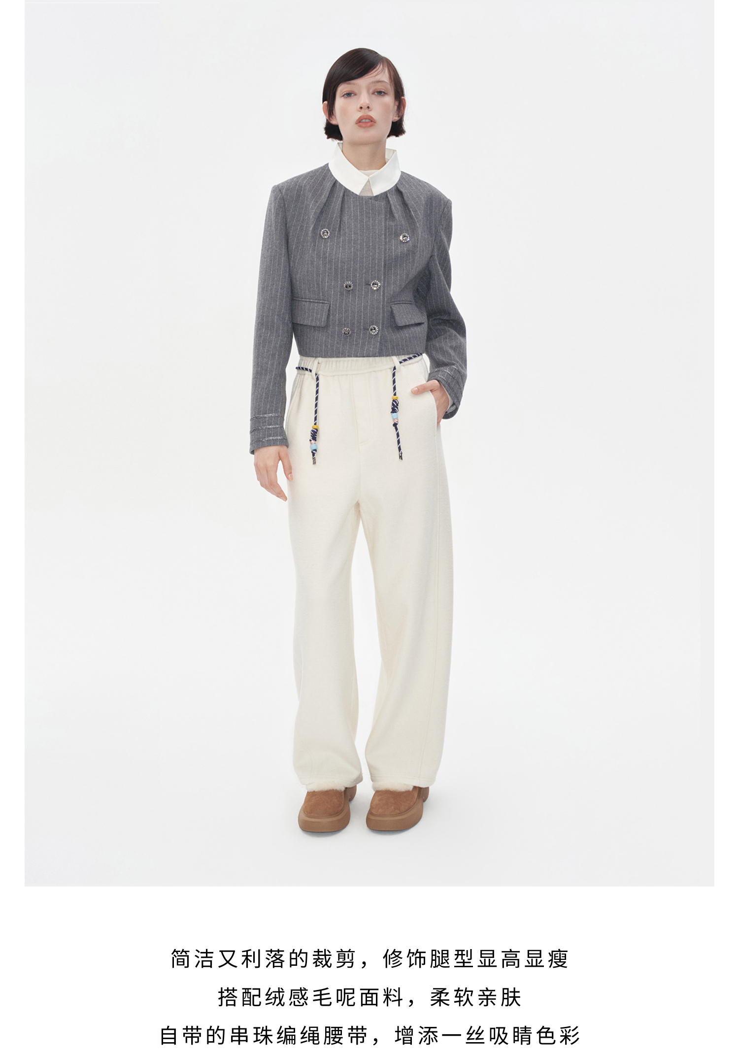 HERLIAN 2025秋冬新品腰部串珠抽绳设计毛呢卫裤