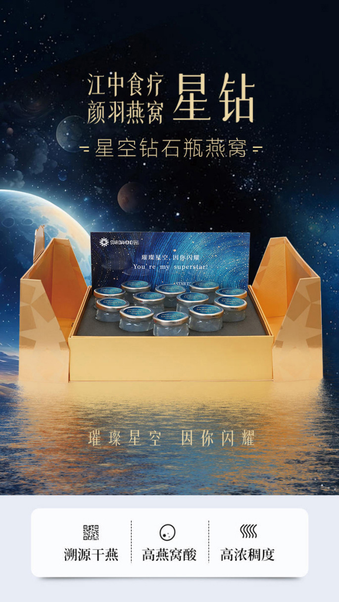 【星钻燕窝·5克干燕窝】江中食疗颜羽轻奢系列星钻燕窝 75g*12瓶 滋补营养品进口金丝燕盏礼盒 保质期18个月【京东/顺丰快递】