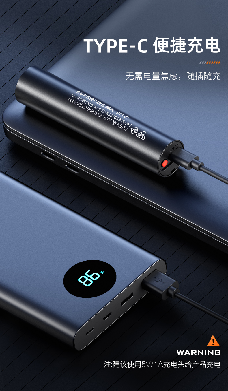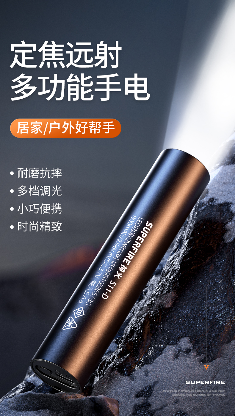 SUPERFIRE神火S11-D手电筒高亮远射迷你便携充电家用户外骑行LED手电