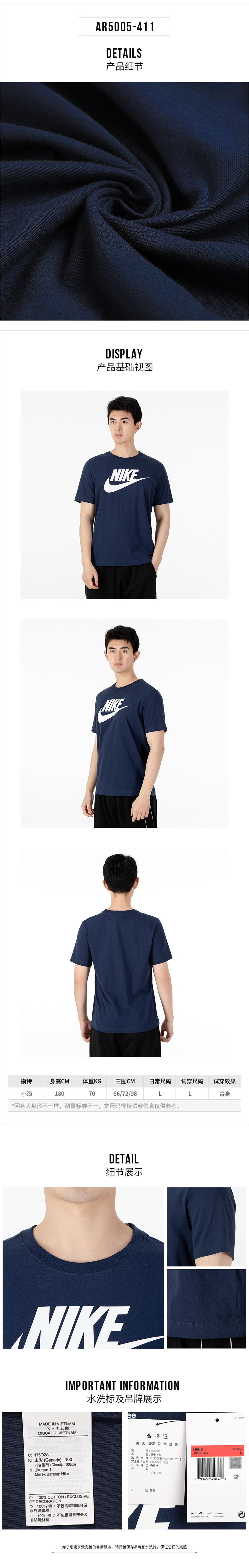 Nike耐克男装2021夏秋新款运动休闲经典百搭舒适透气圆领 经典黑白/全棉亲肤 AR5005