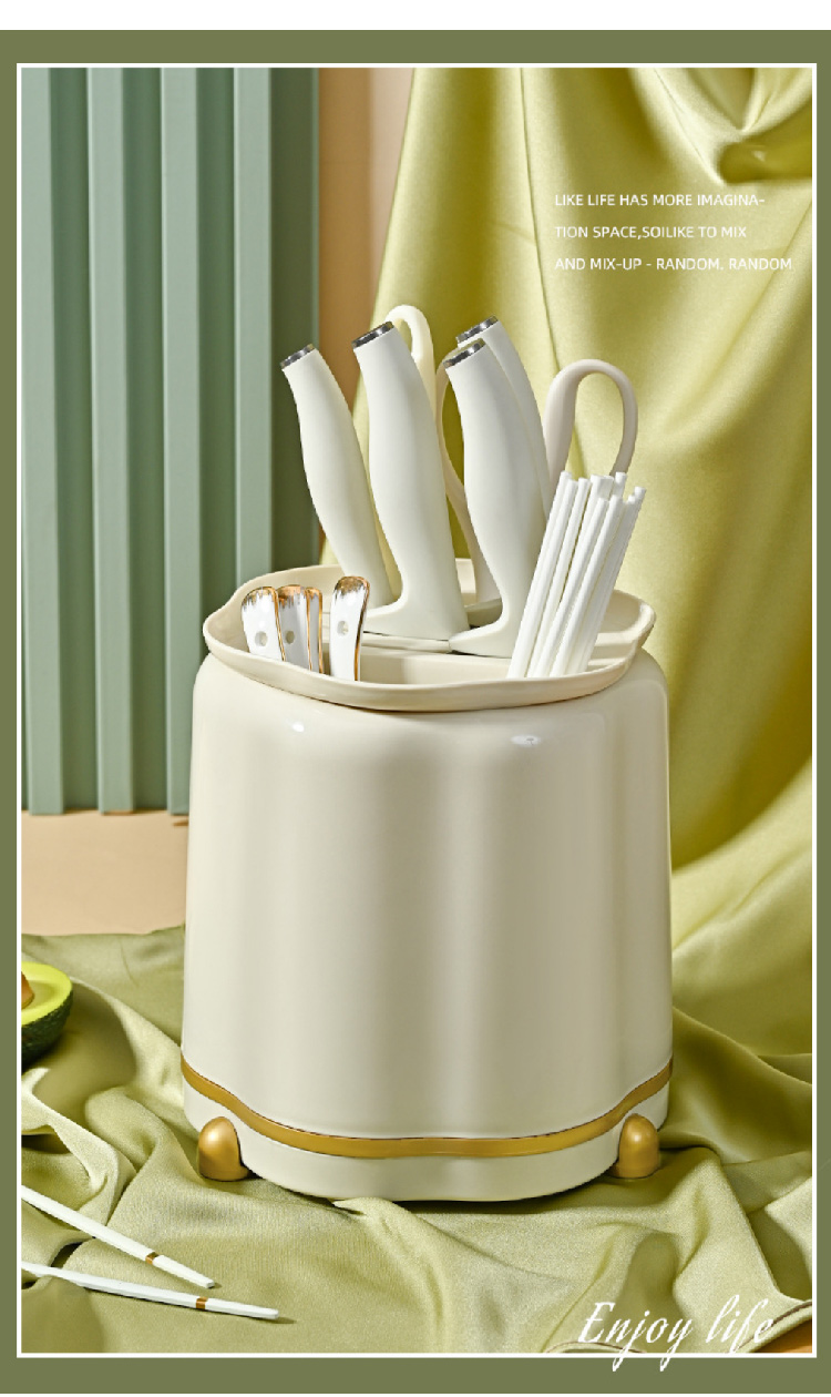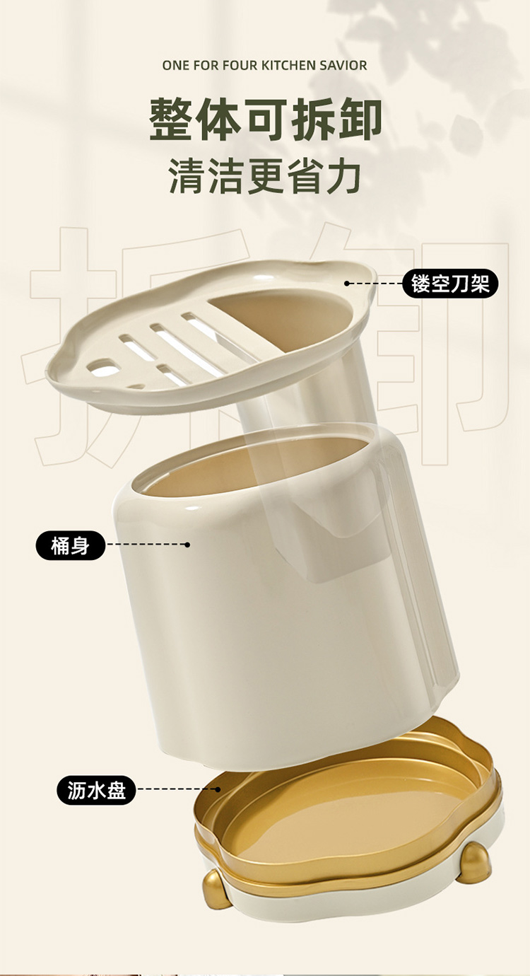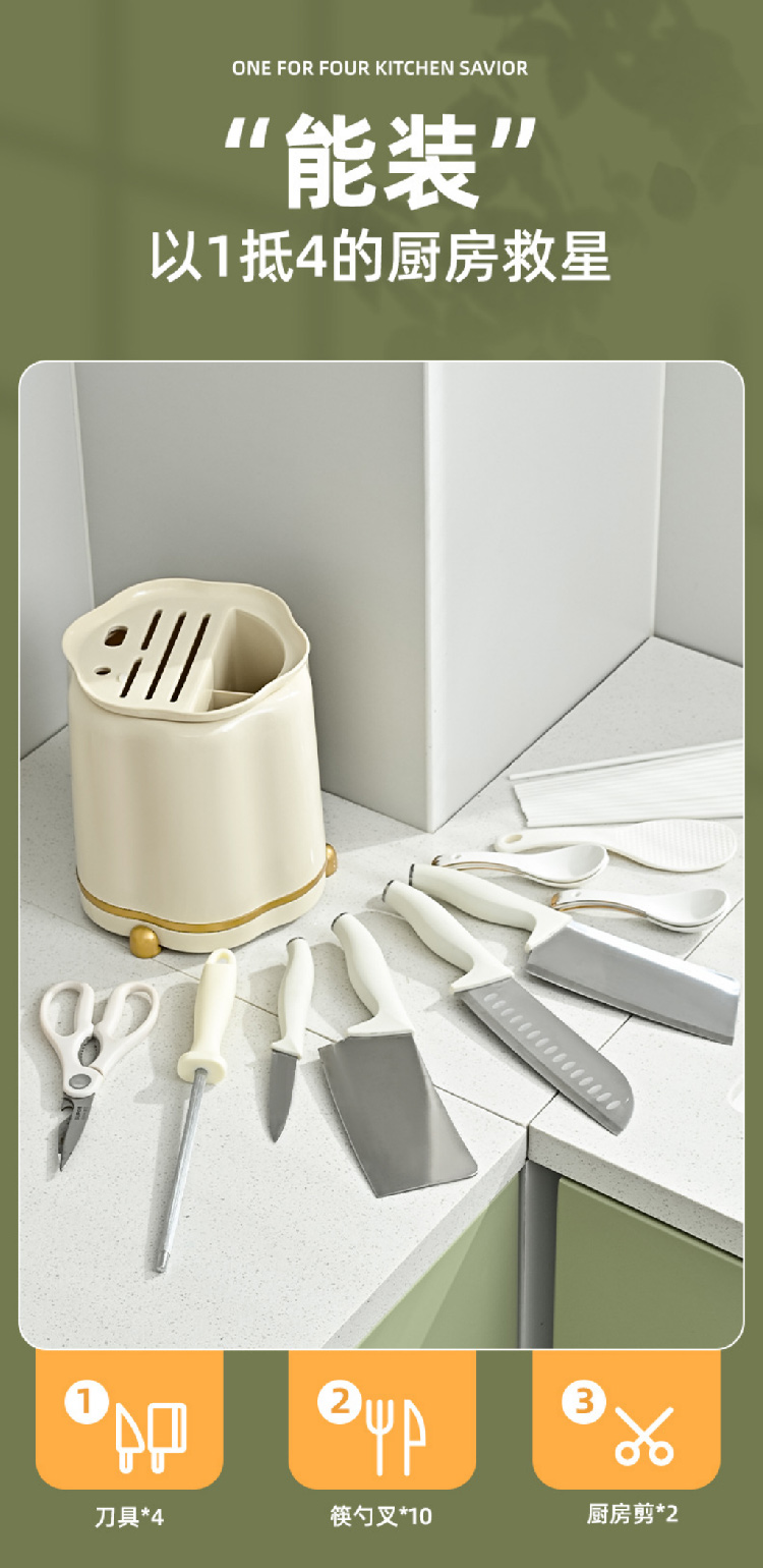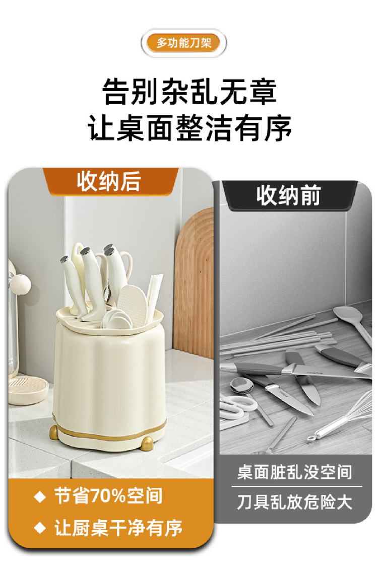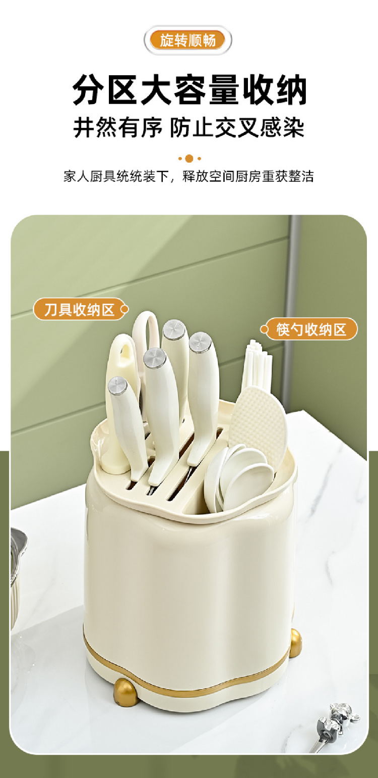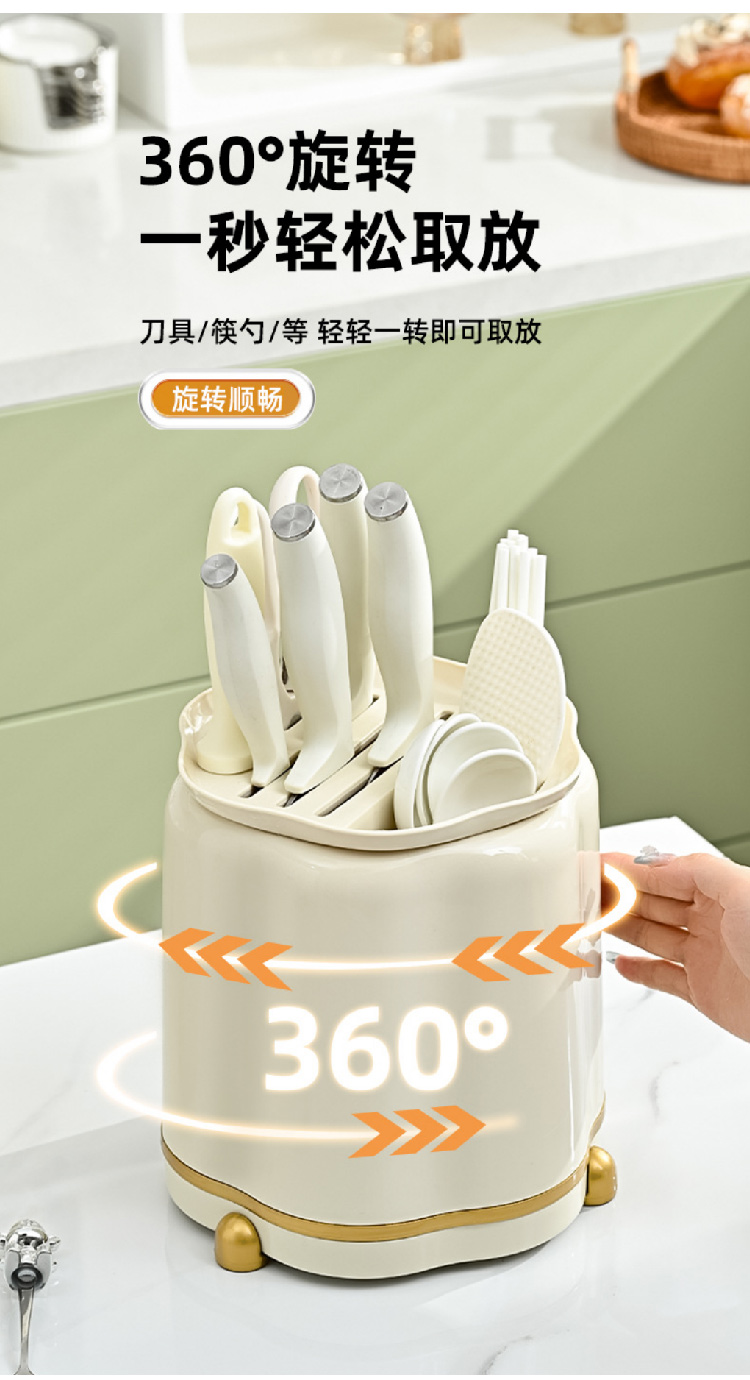 【厨房刀具收纳】奶油风夏洛克旋转刀架置物架 家用多功能刀具轻奢收纳架一体筷架
