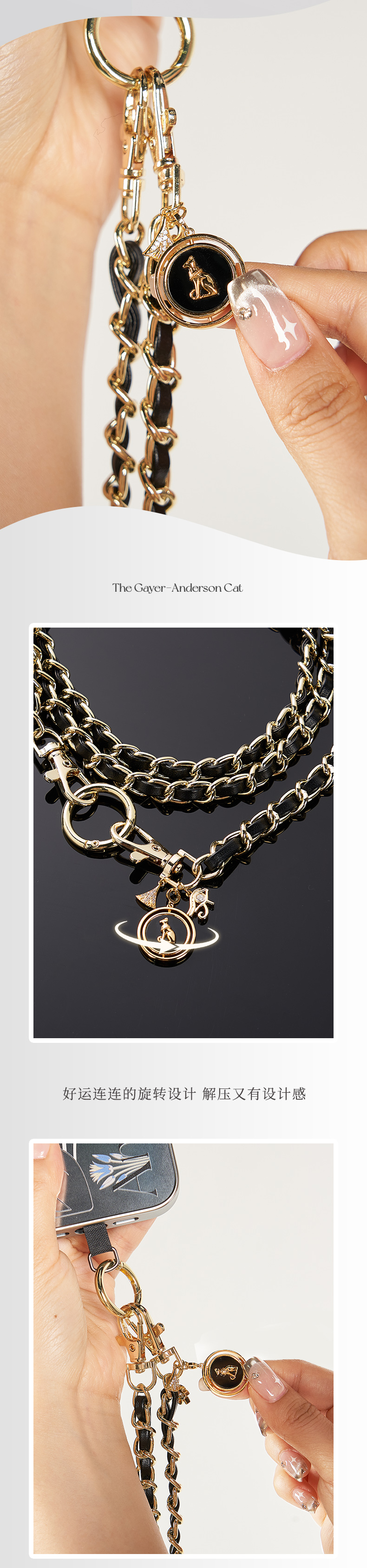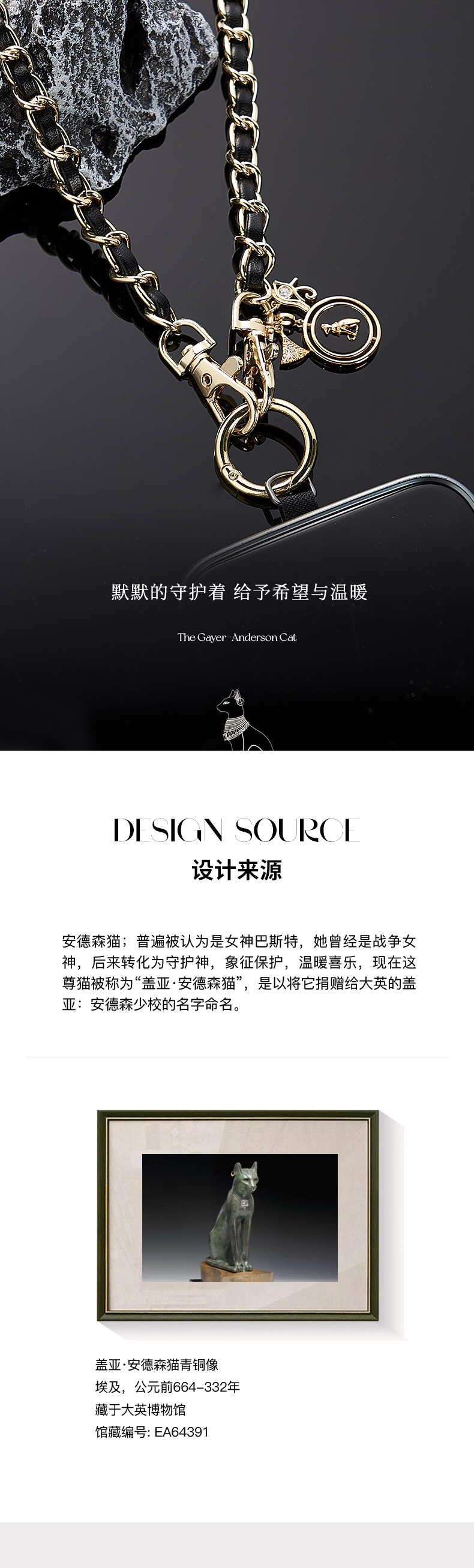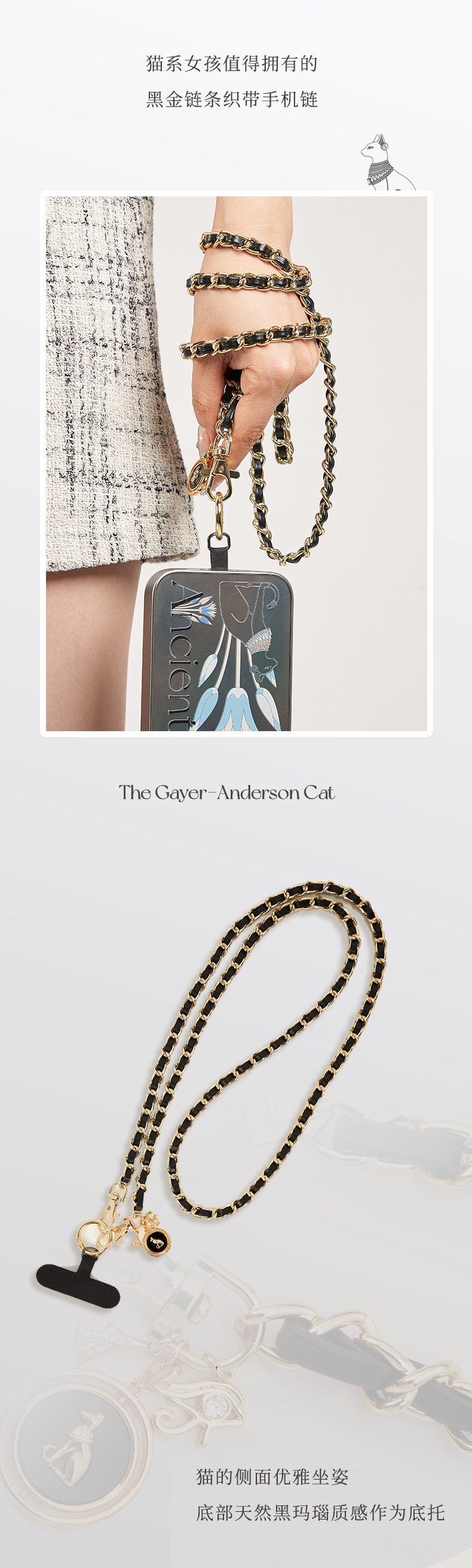 大英博物馆 埃及系列 盖亚·安德森猫 黑金复古手机绳多功能长链