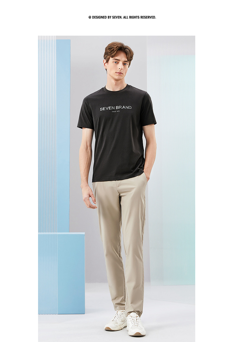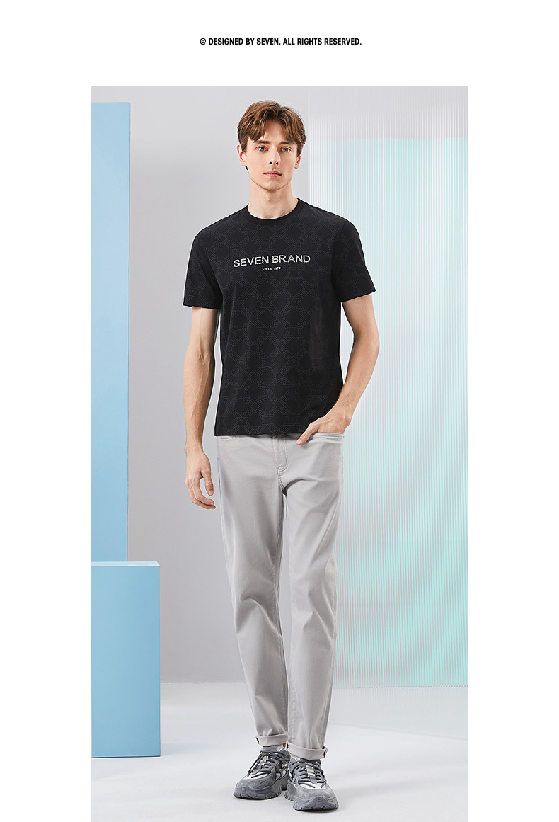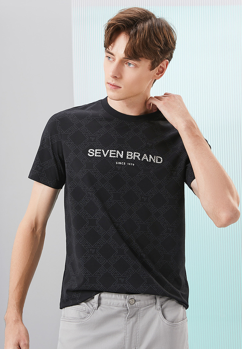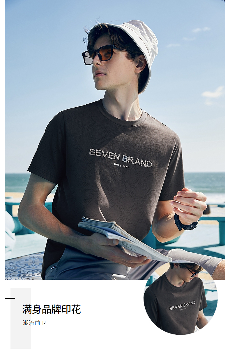 【含桑蚕丝】柒牌男士短袖t恤夏季厚款时尚字母满印休闲圆领上衣 126T71840