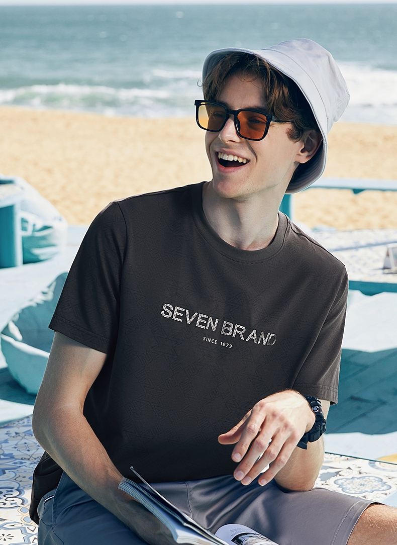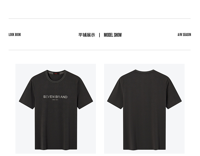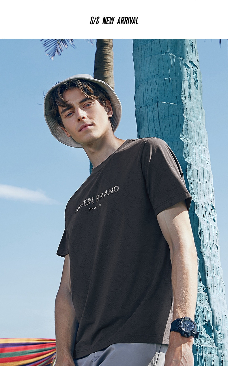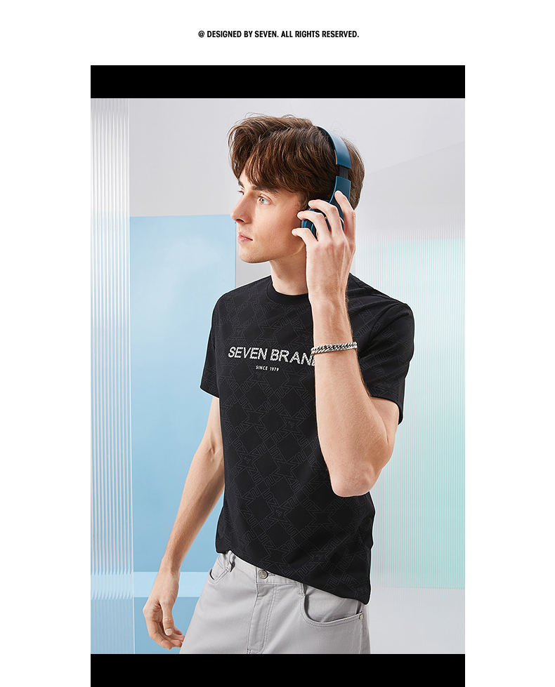 【含桑蚕丝】柒牌男士短袖t恤夏季厚款时尚字母满印休闲圆领上衣 126T71840