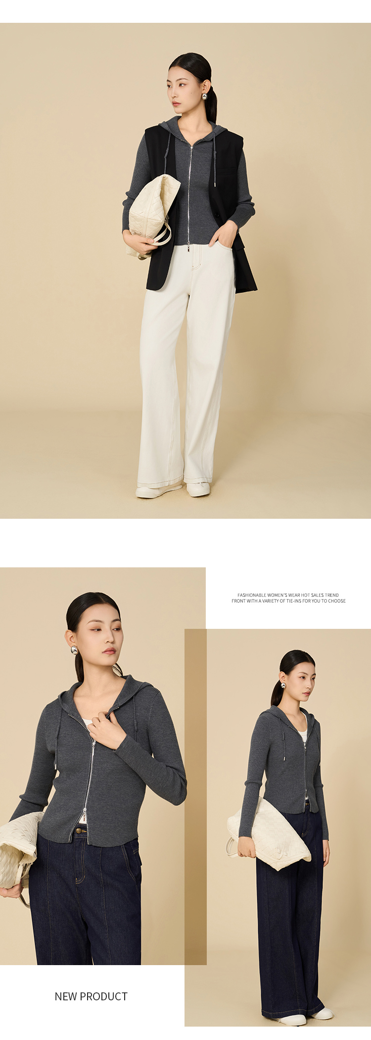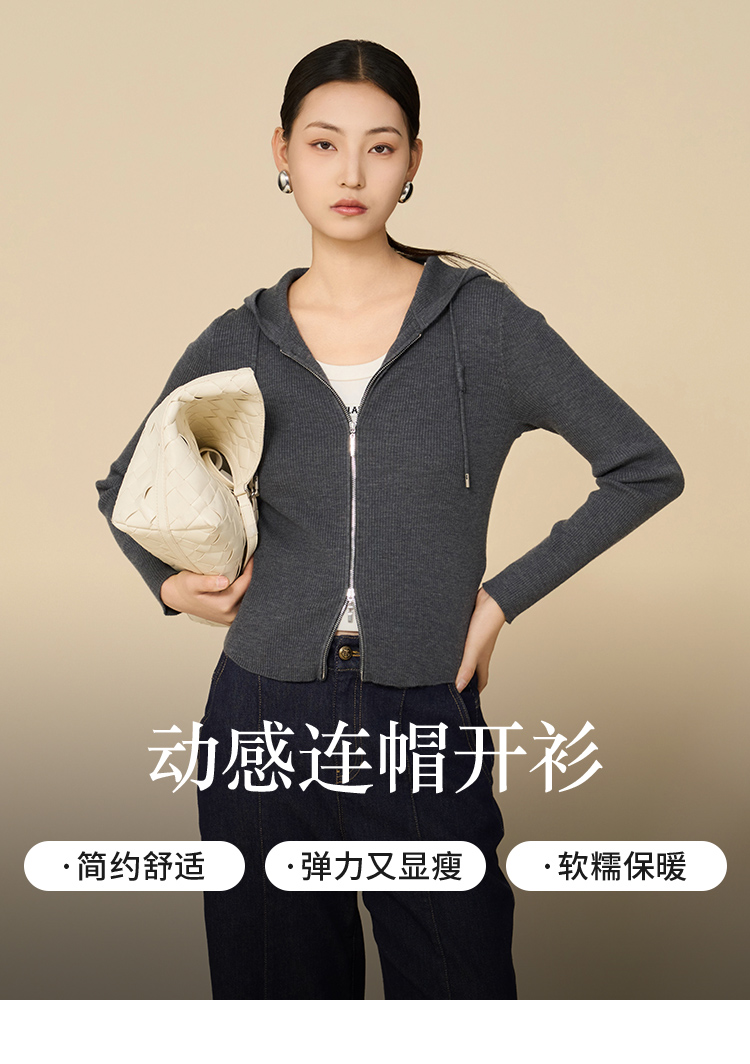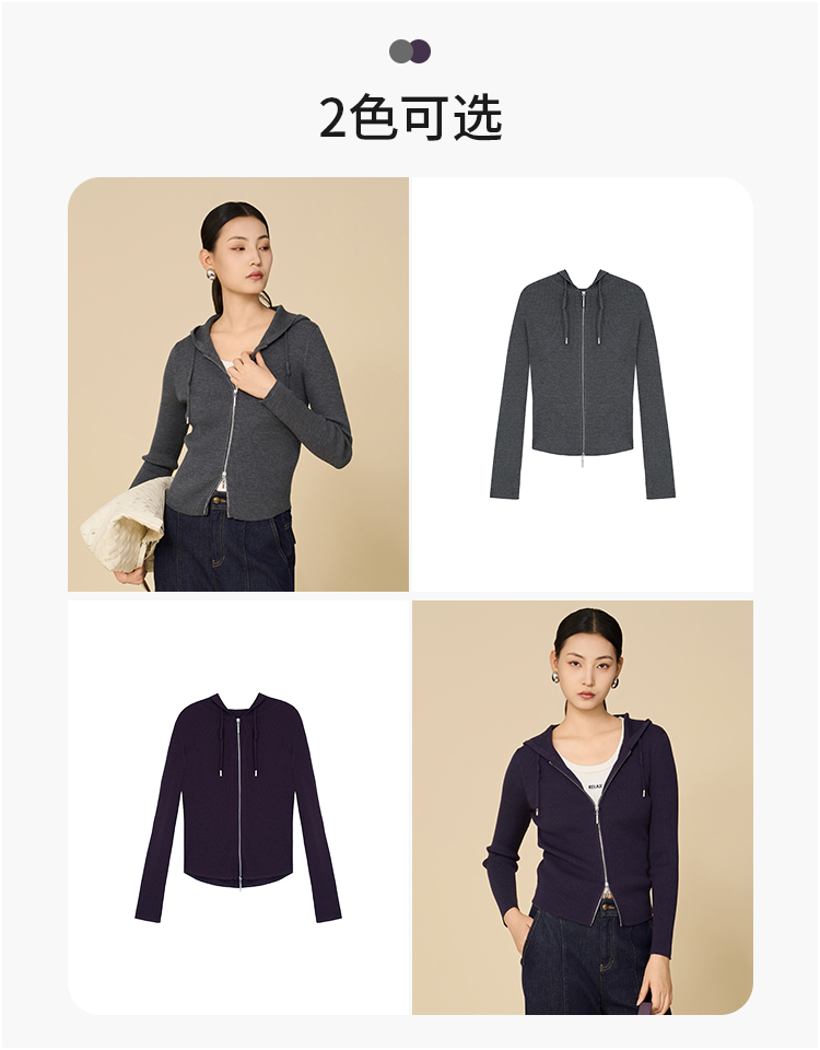 【商场同款】CNR5898 “ 动感开衫 ” 上身显瘦10斤 双向拉链两色开衫 大弹力针织衫