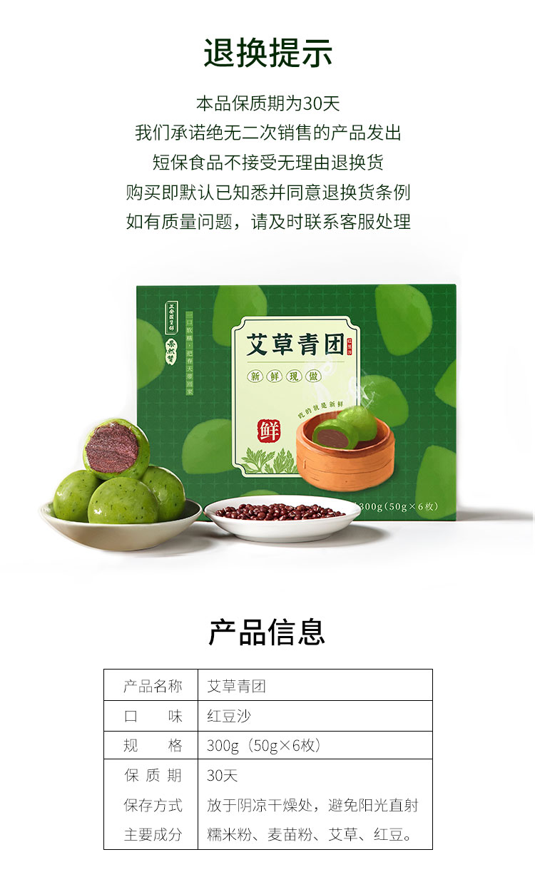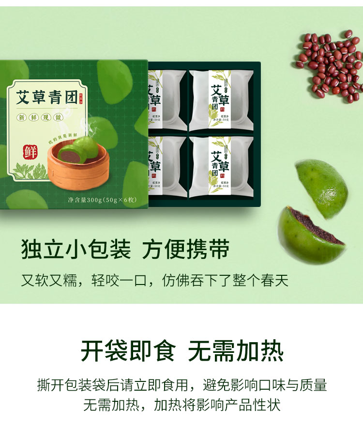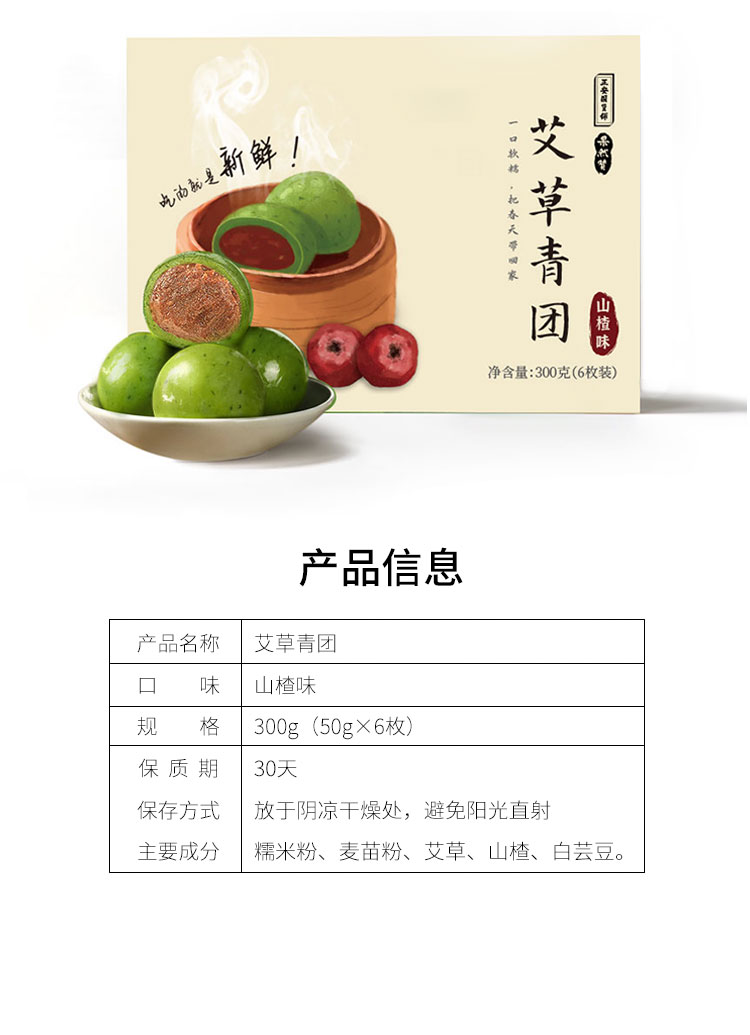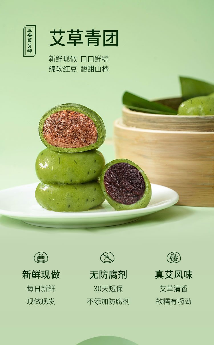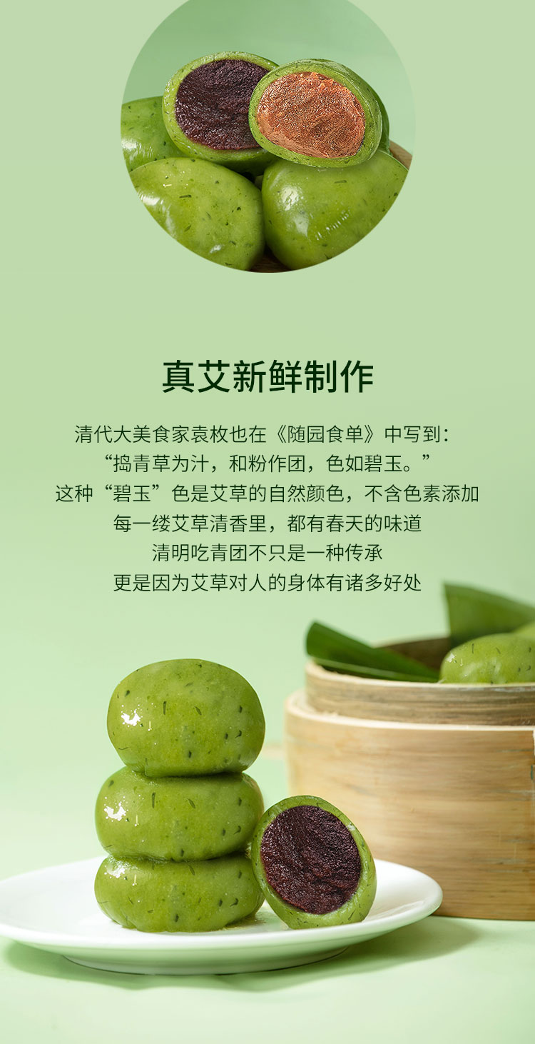 【建议收到后及时补充,口味更佳哦】艾草青团 经典红豆沙/山楂味绵密香醇 每日新鲜 下单现做现发