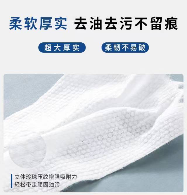 ✅️立体珍珠纹,清洁更轻松 和其他湿巾不同,这款有珍珠纹 增大了它和桌面的摩擦力 无论是灶台上溅出来的油污 还是畸角旮旯时间久了累积的污渍 一擦就干净 味道也很清新,淡淡的柠檬味 清爽好闻,厨房立马清香起来 擦完直接丢掉,再也不用洗油腻腻的抹布啦!