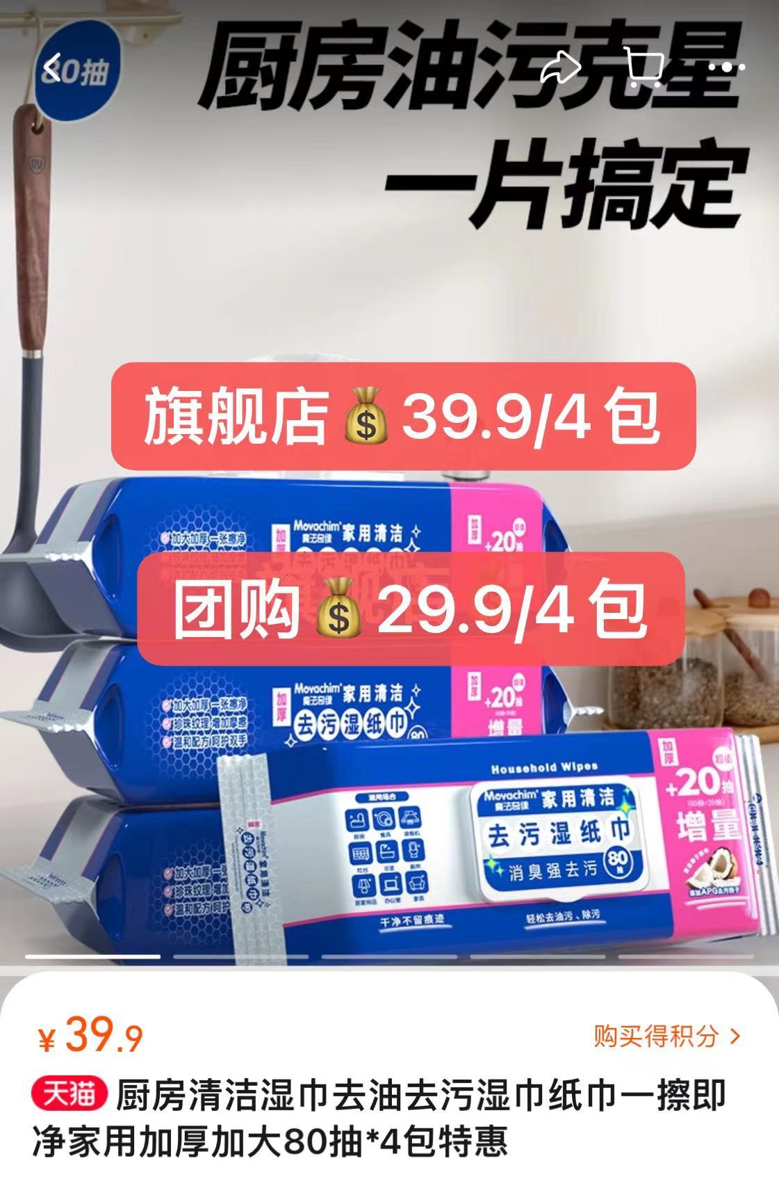 厨房湿巾是日常消耗品 每天都在用,有好活动当然要囤囤囤~ 这次还加量啦!每包➕20抽! 旗舰店4包💰39.9元! 我们团购买4包💰29.9元! 一天用两张,团购一次能用一年啦!