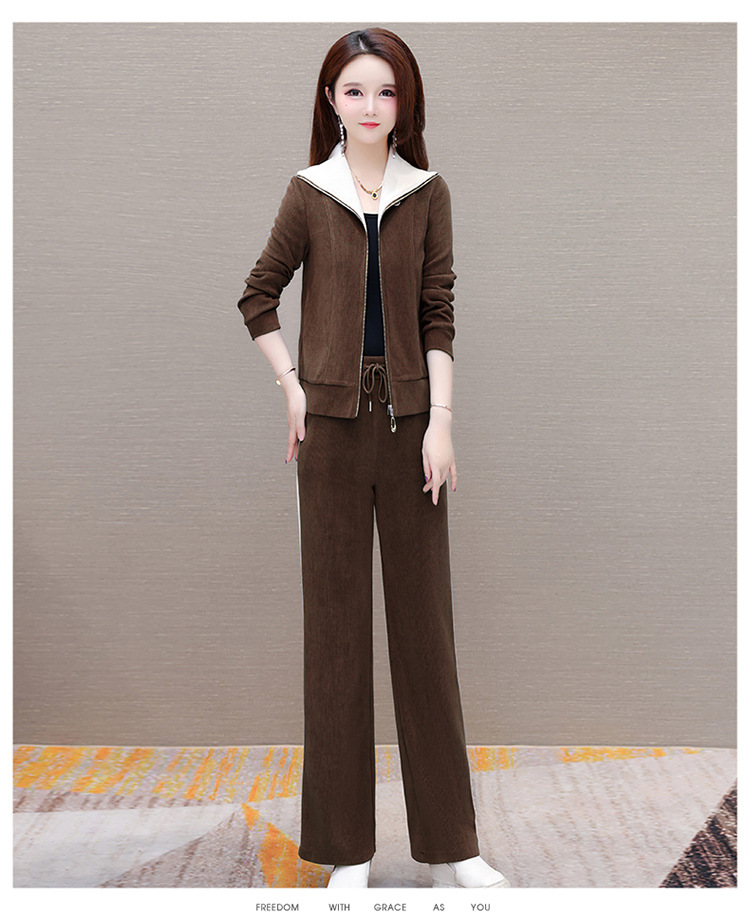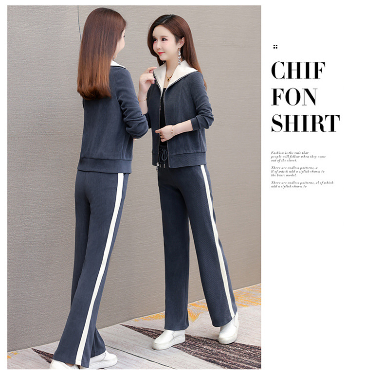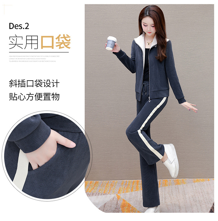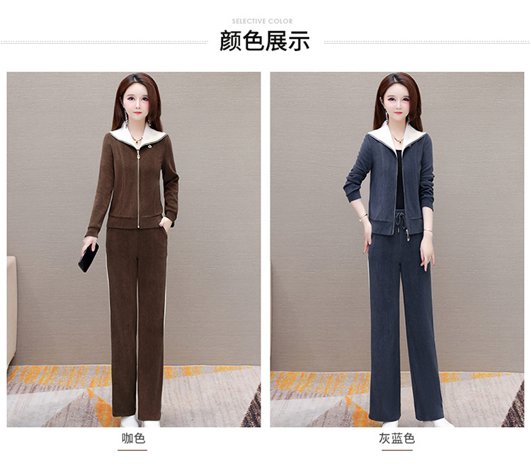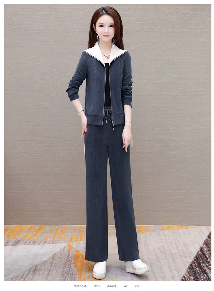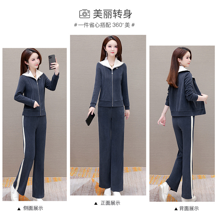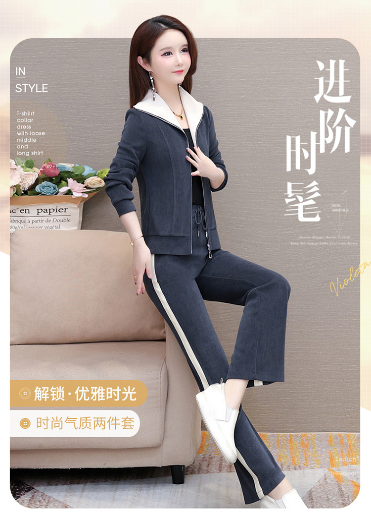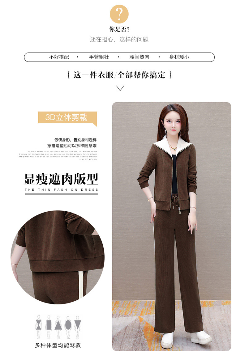 长袖连帽休闲外套+长款修身,宽松显瘦时尚阔腿裤两件套QYM- XYKL-4801-L