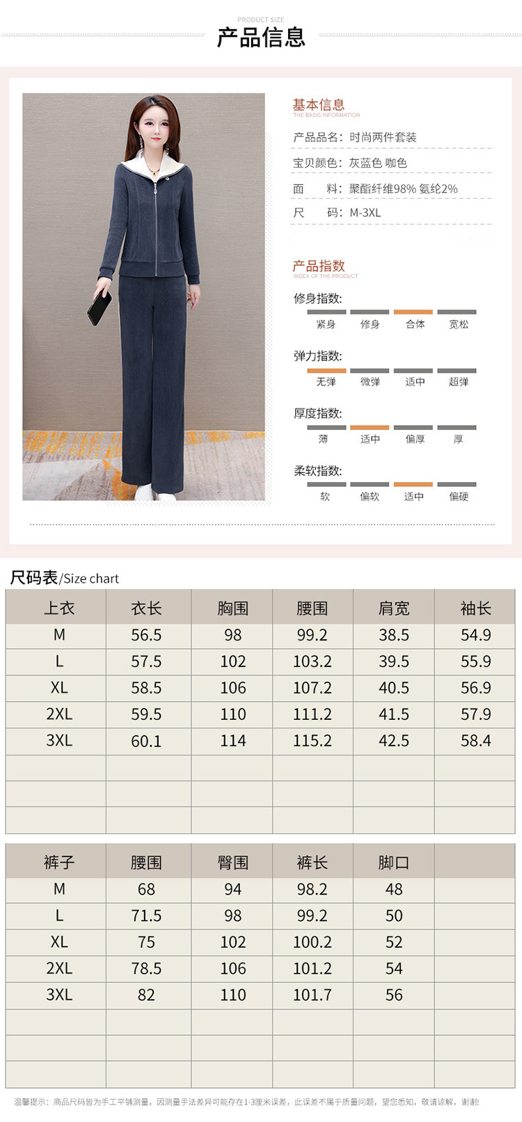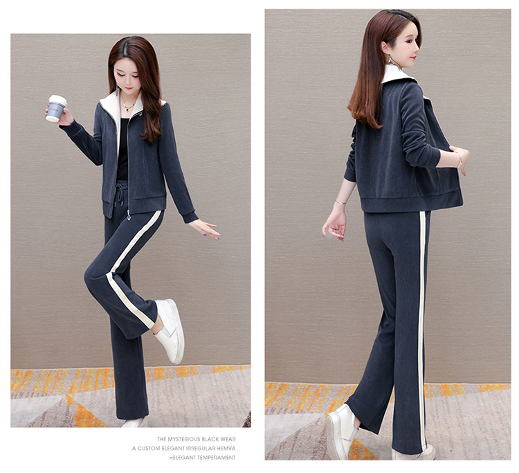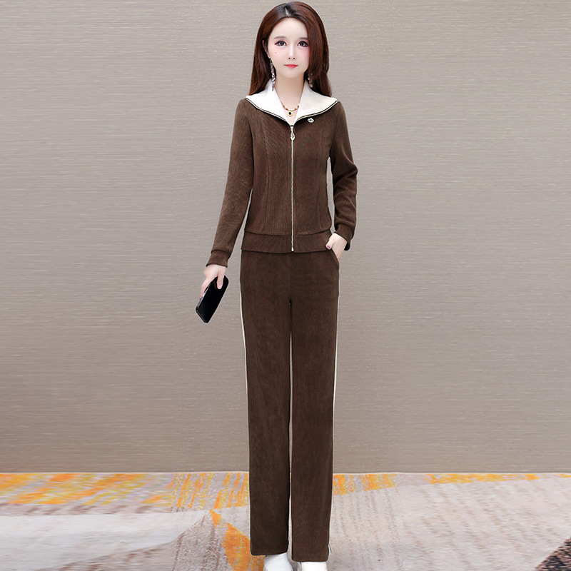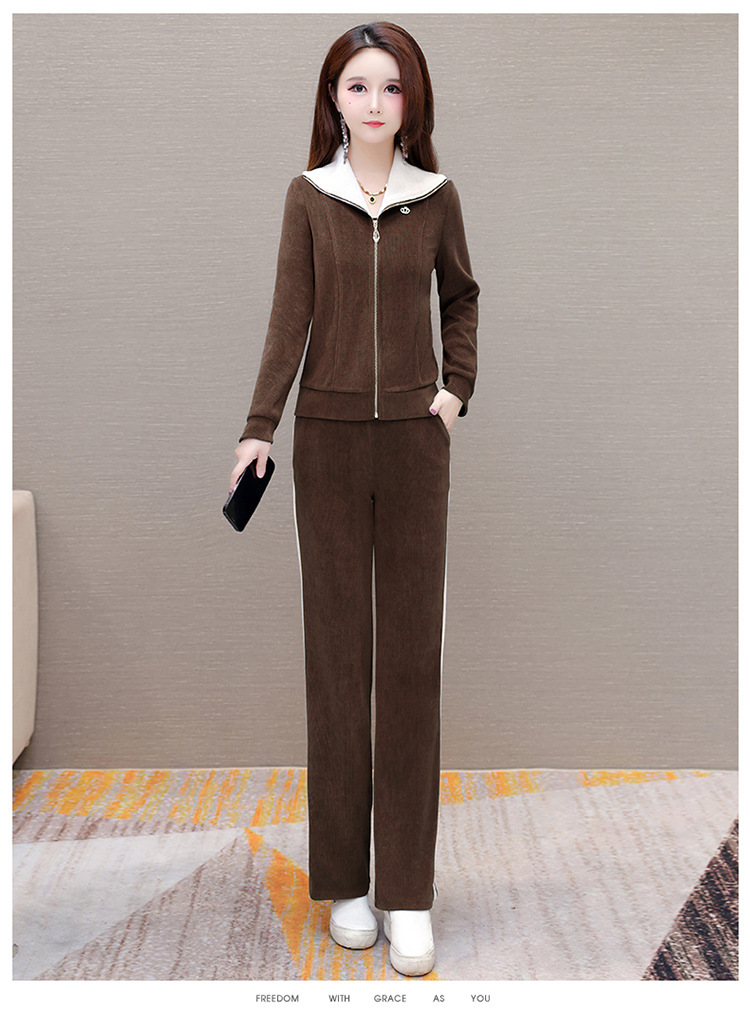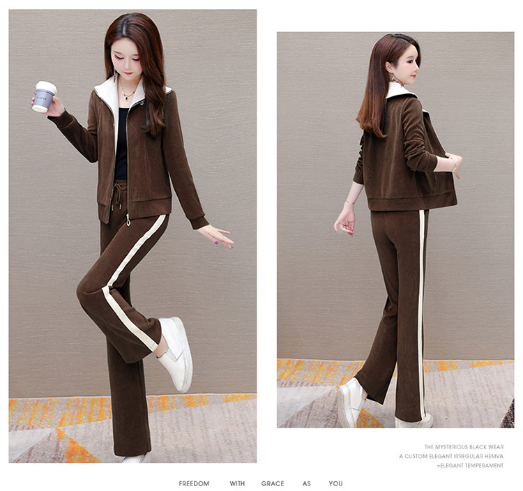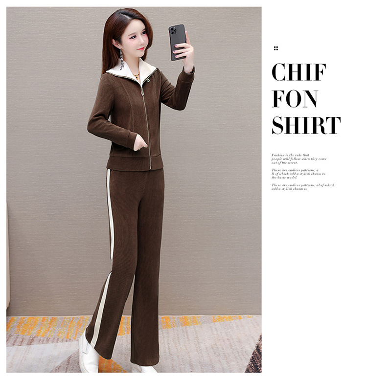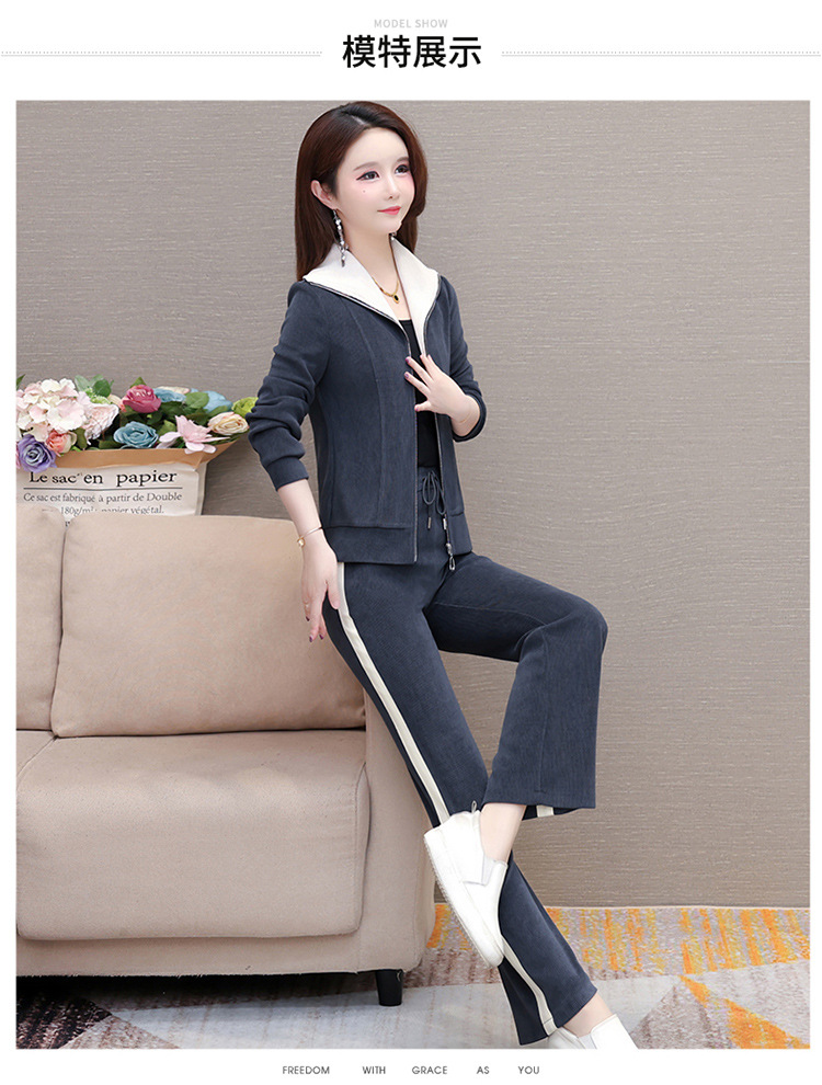 长袖连帽休闲外套+长款修身,宽松显瘦时尚阔腿裤两件套QYM- XYKL-4801-L