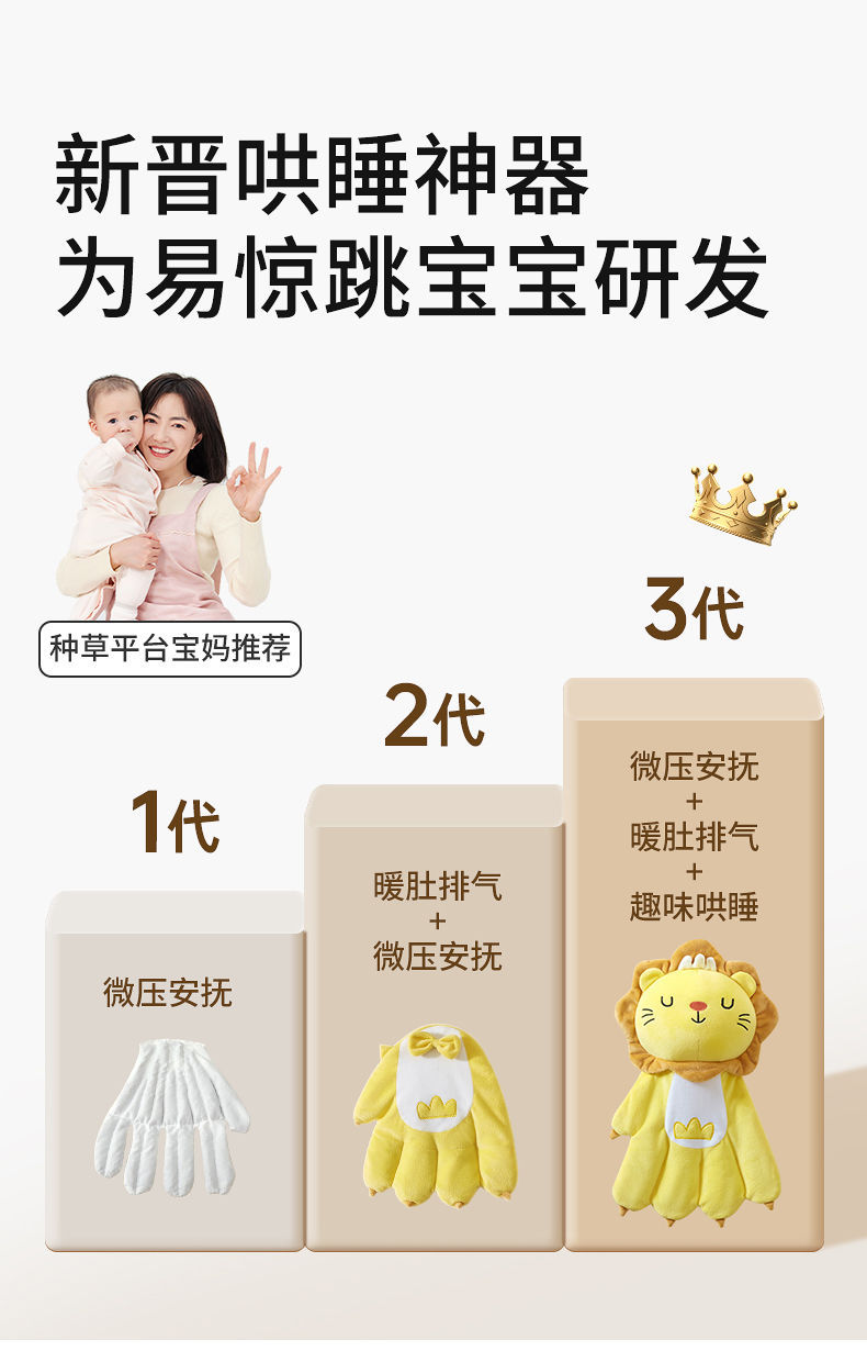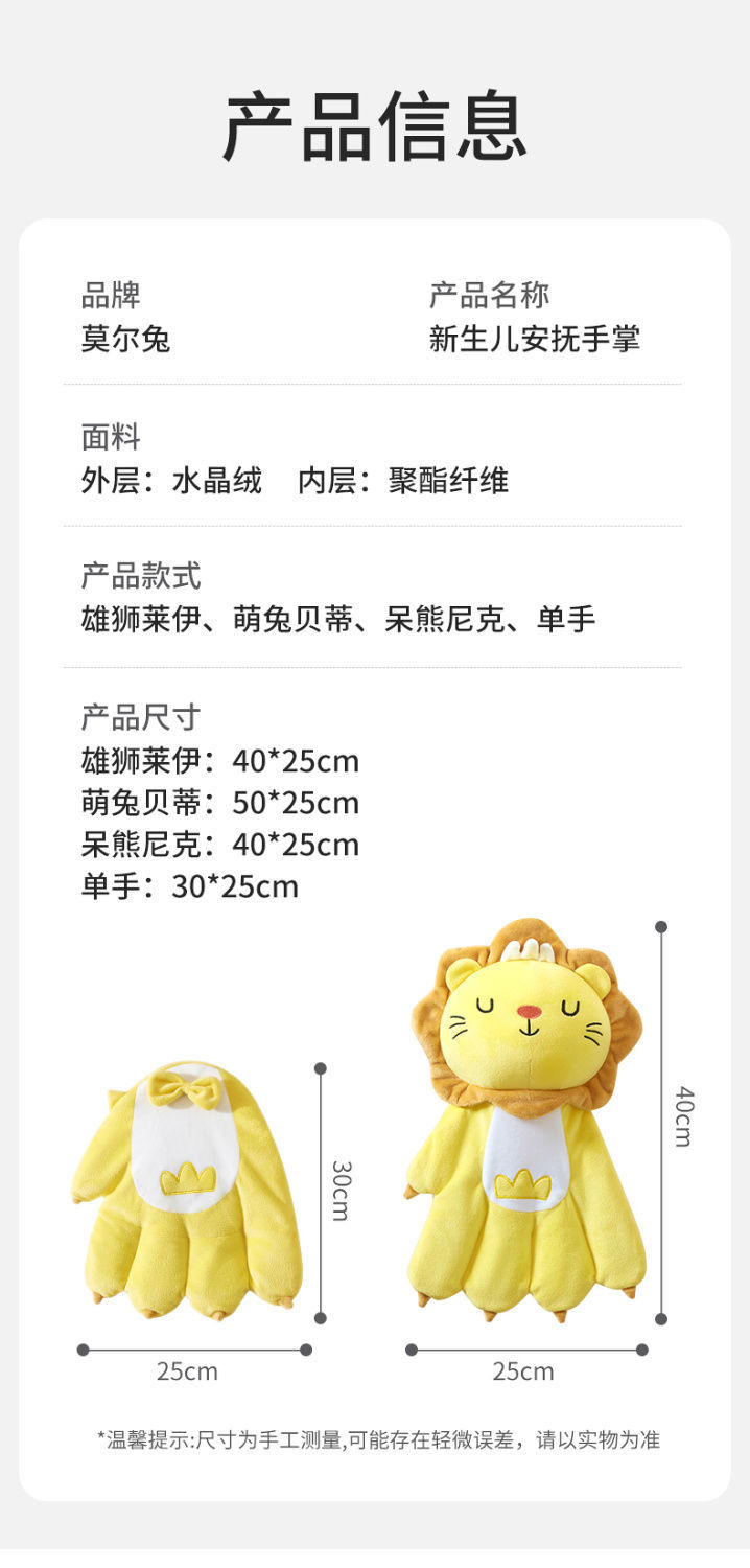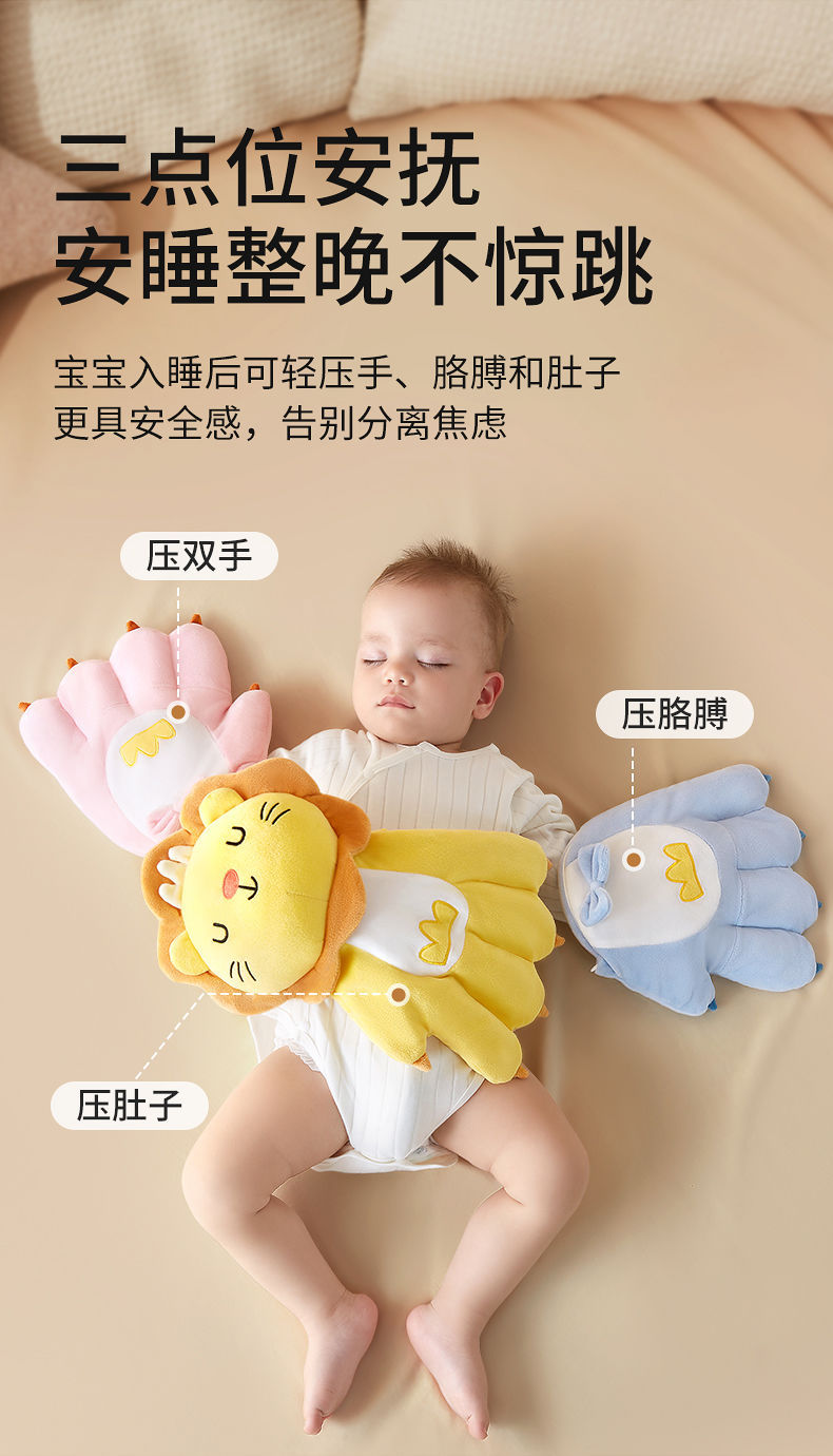 婴儿安抚手掌压惊玩偶睡觉神器a类食品级可入口啃咬防惊跳枕米袋