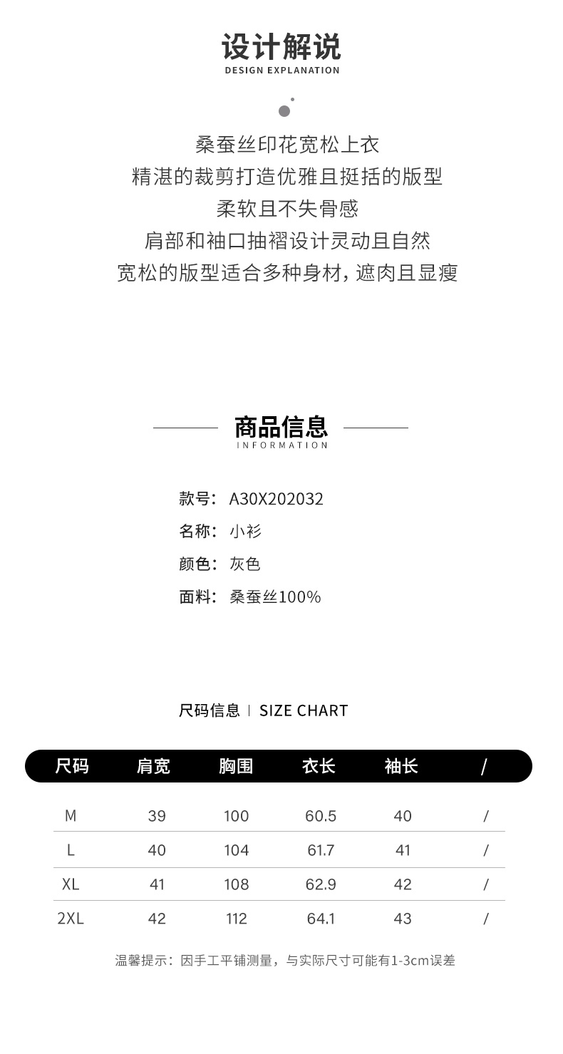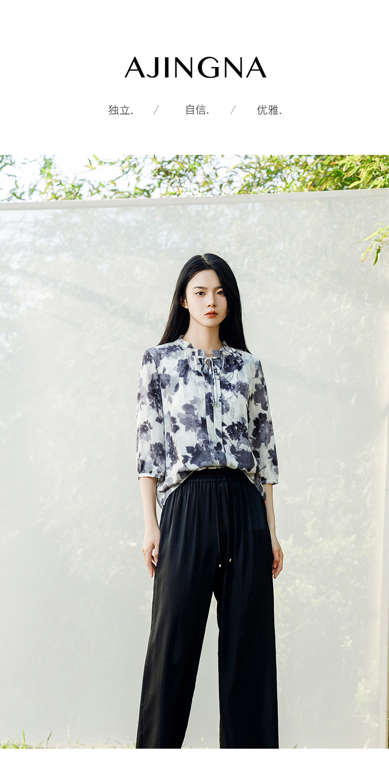 【商场同款】阿菁娜2024夏季新款桑蚕丝印花宽松上衣A30X202032