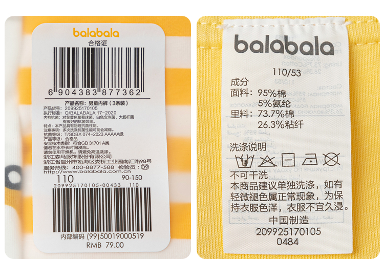 巴拉巴拉男童内裤棉a类儿童平角短裤小童宝宝亲肤四角抗菌三条装