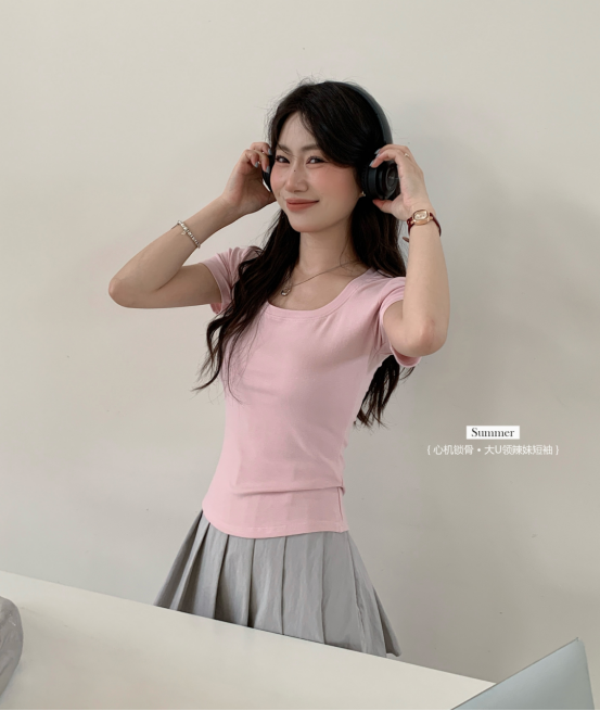 既不暴露,又刚刚好地性感。 这个短袖真的太懂女生了,大U领设计让你轻松拥有天鹅颈 不挑人、不挑发型,基础色也能穿出氛围感。
