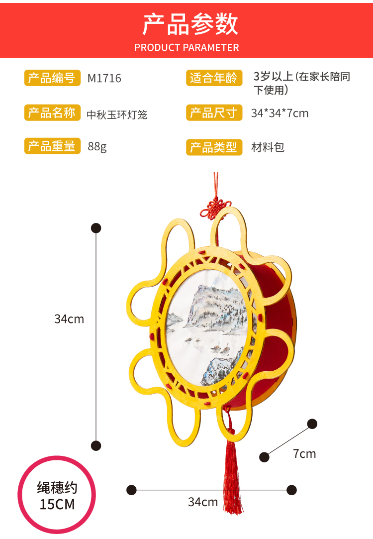 美可中秋节手工diy玉环灯笼儿童手提发光制作材料包幼儿园元宵