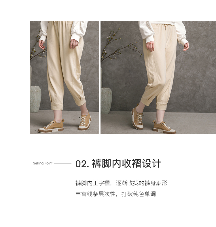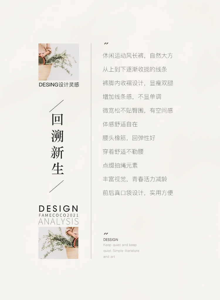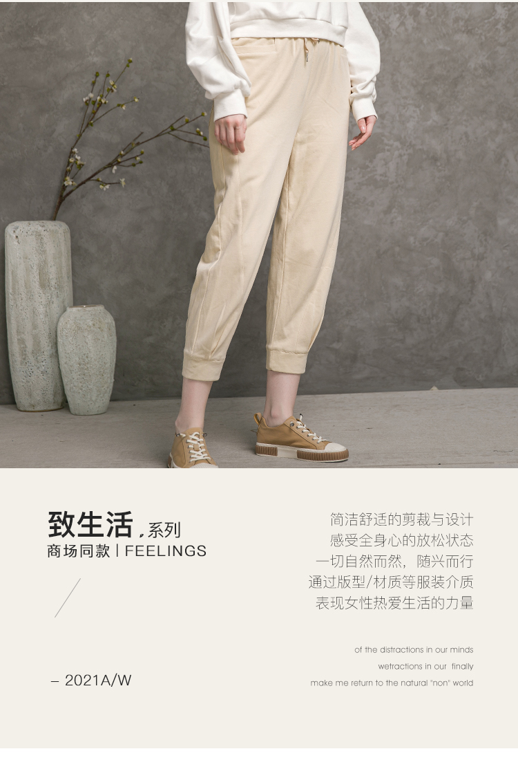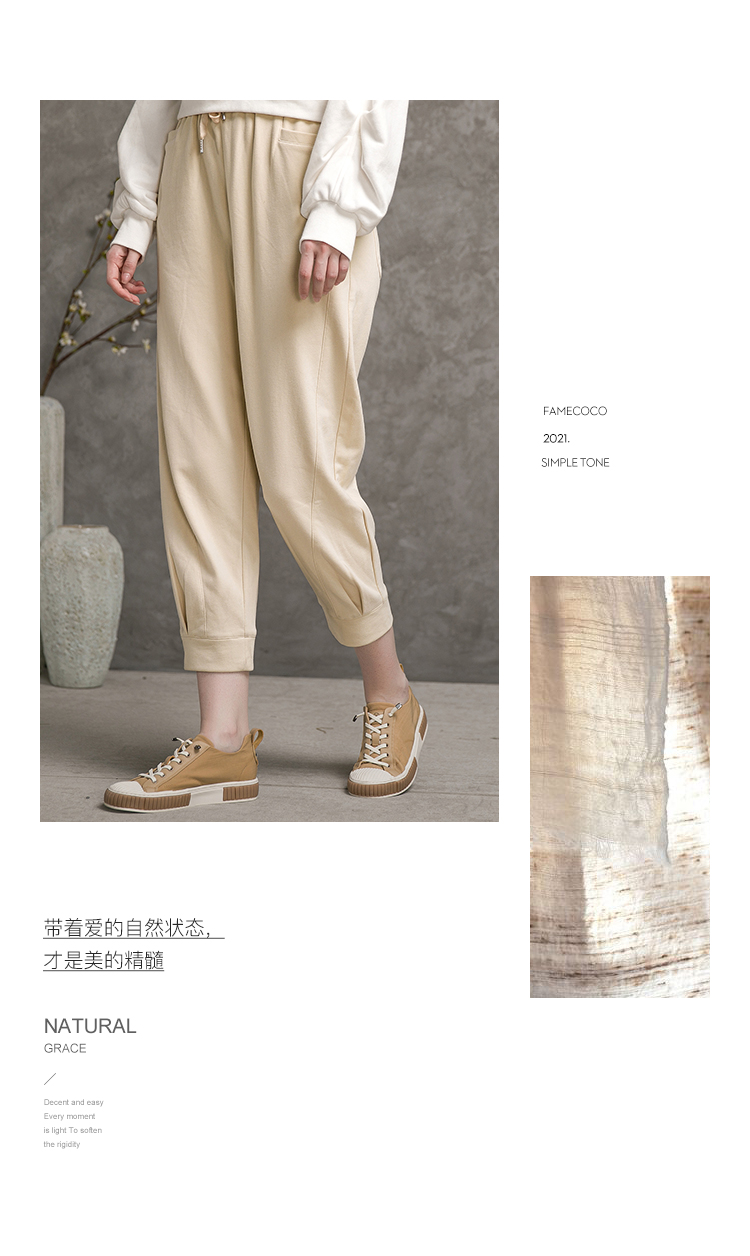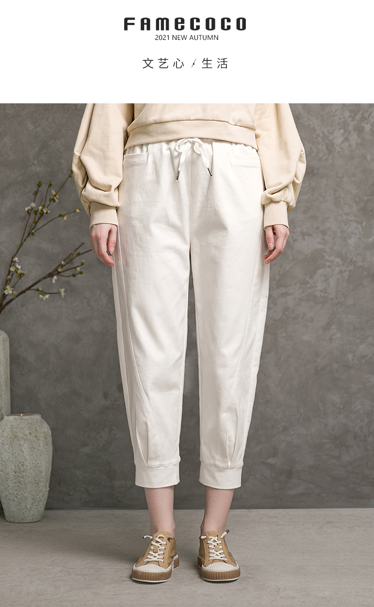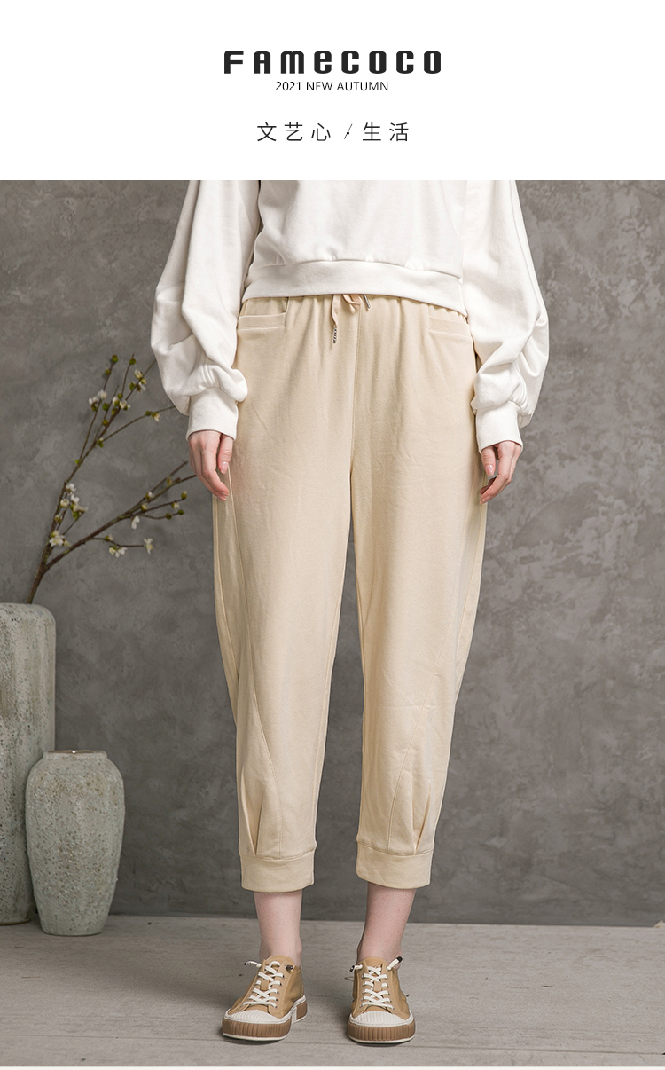 famecoco范可儿阔腿裤女秋季松紧腰休闲裤运动长裤F216GA001
