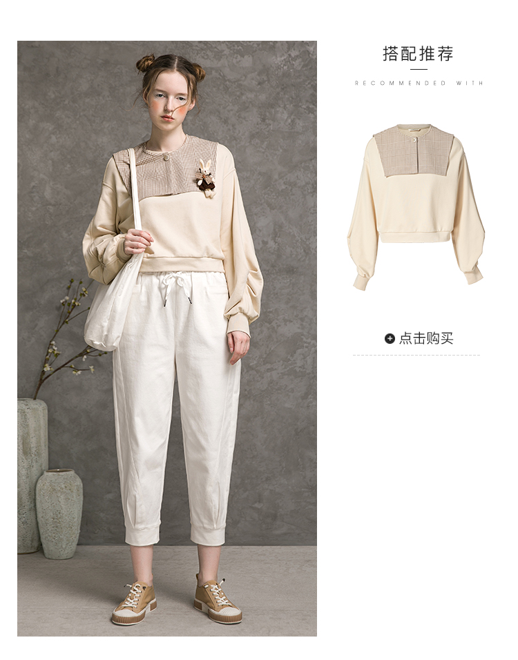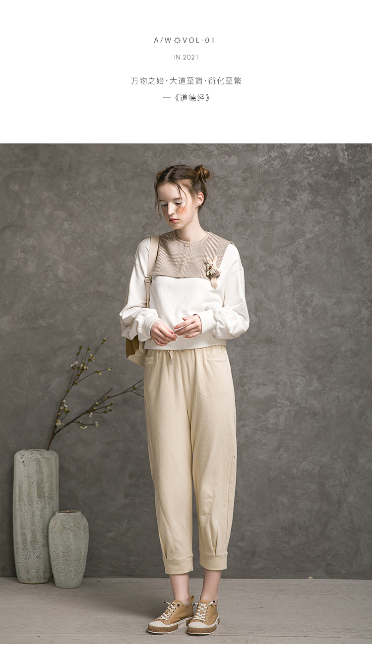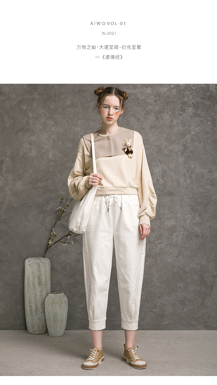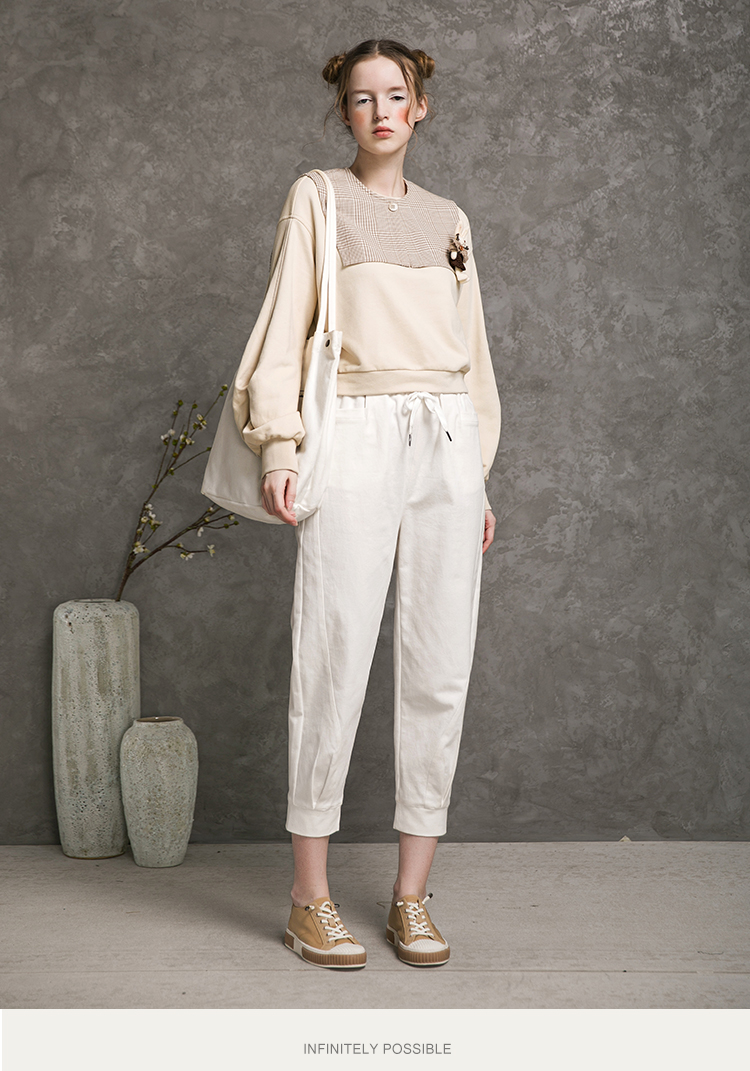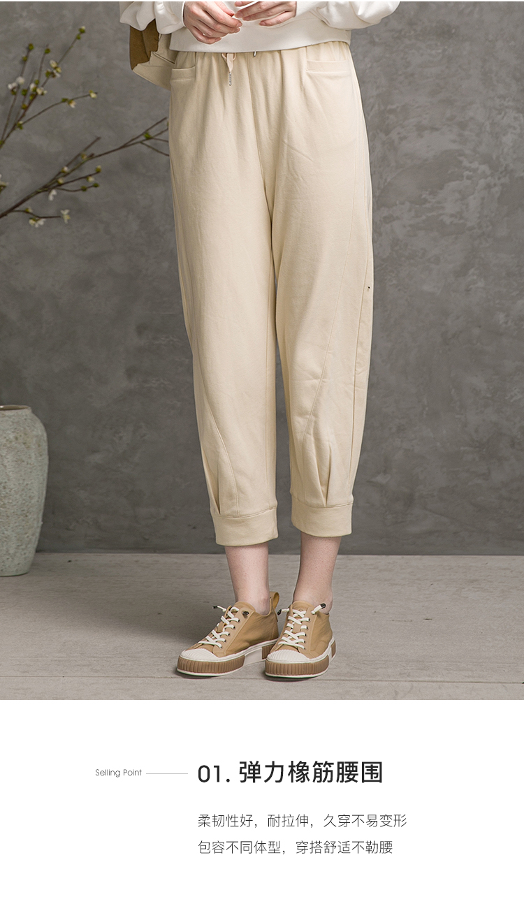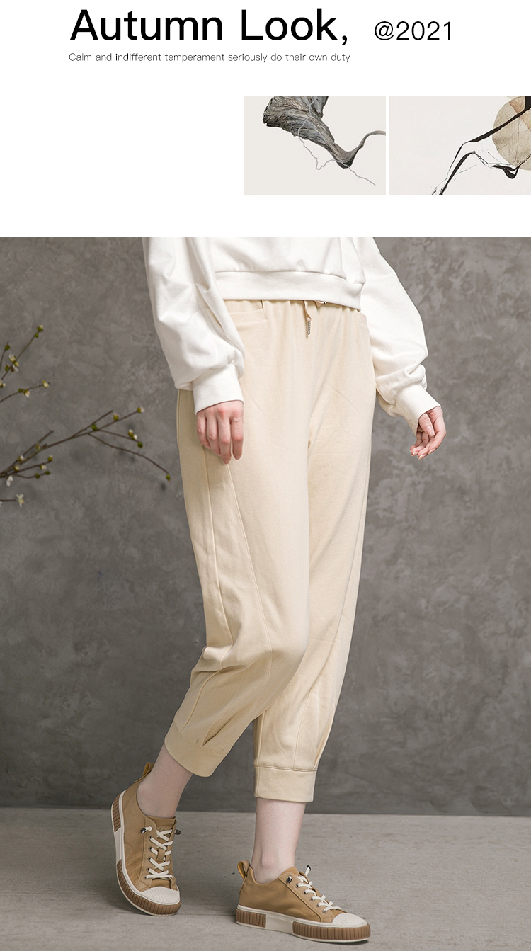 famecoco范可儿阔腿裤女秋季松紧腰休闲裤运动长裤F216GA001
