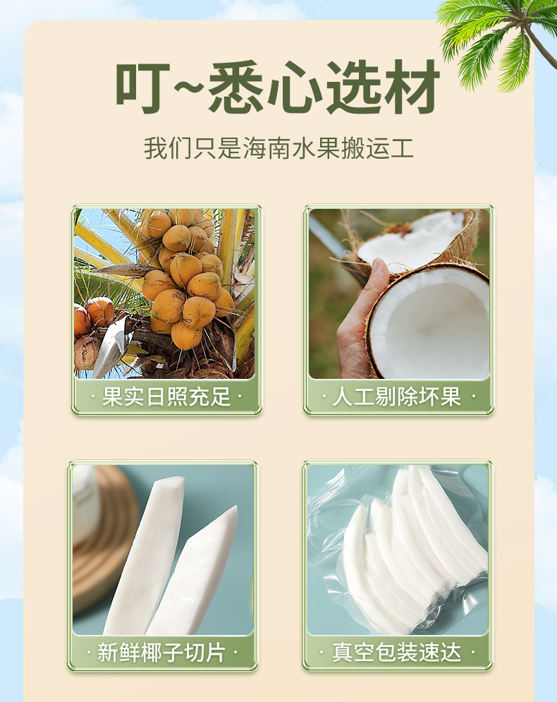 【即食新鲜❗海南椰子肉】甄选品质原料,海南椰子原果现切,0香精/0色素,美味健康无负担,脆块椰子片鸡煲汤配料,小零食果干零食品L