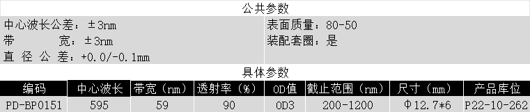 BP595/59K OD3@200-1200 T>90% Φ12.7*6 带通滤光片 (带套圈)