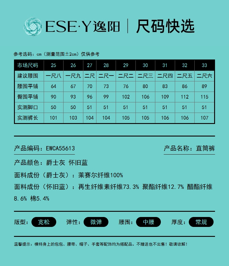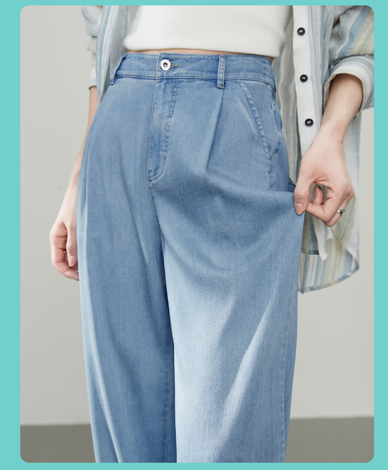 【天丝长直筒裤】逸阳宽松显瘦垂顺阔腿牛仔裤子5613