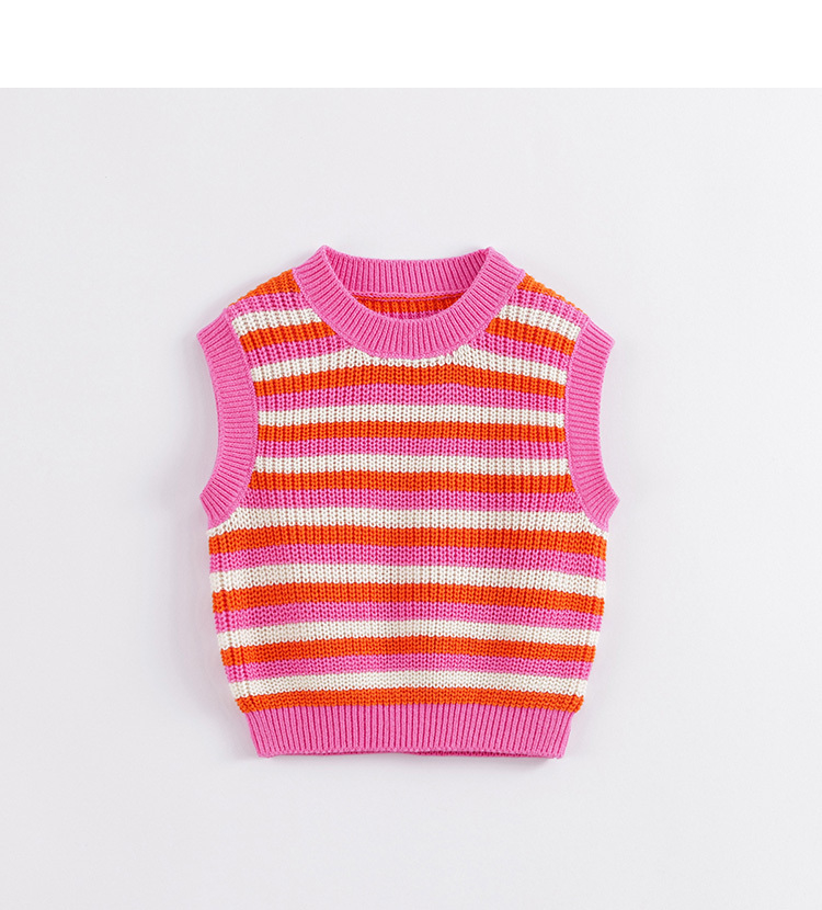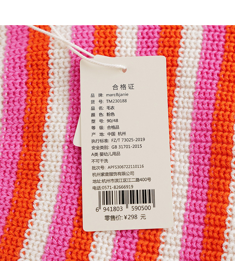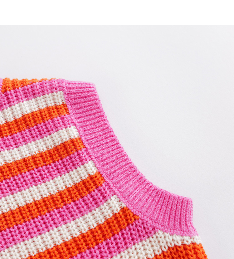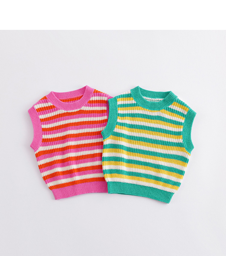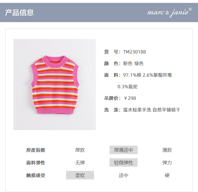 马克珍妮春装新款 女童撞色条纹针织马甲 儿童背心230188