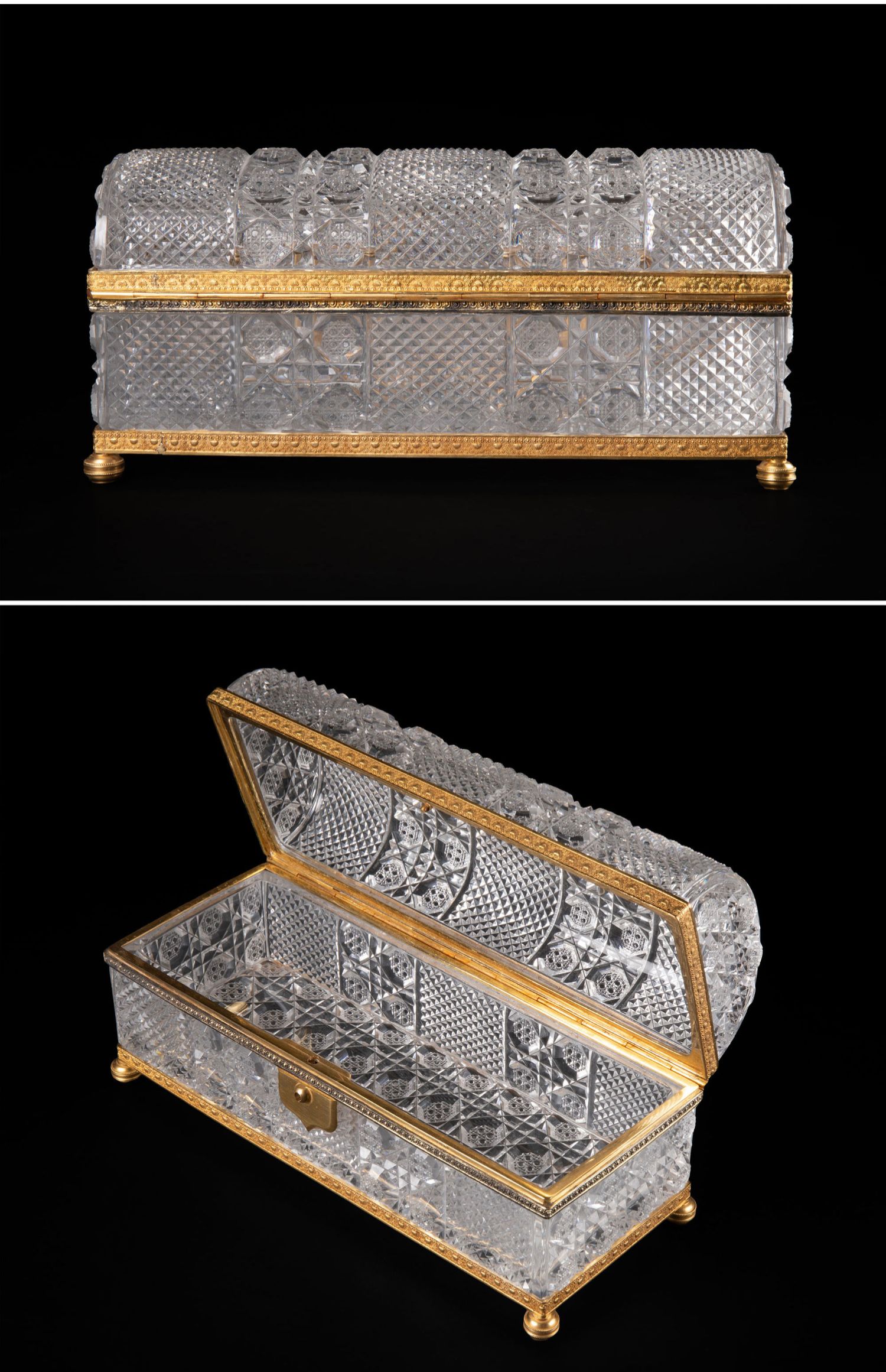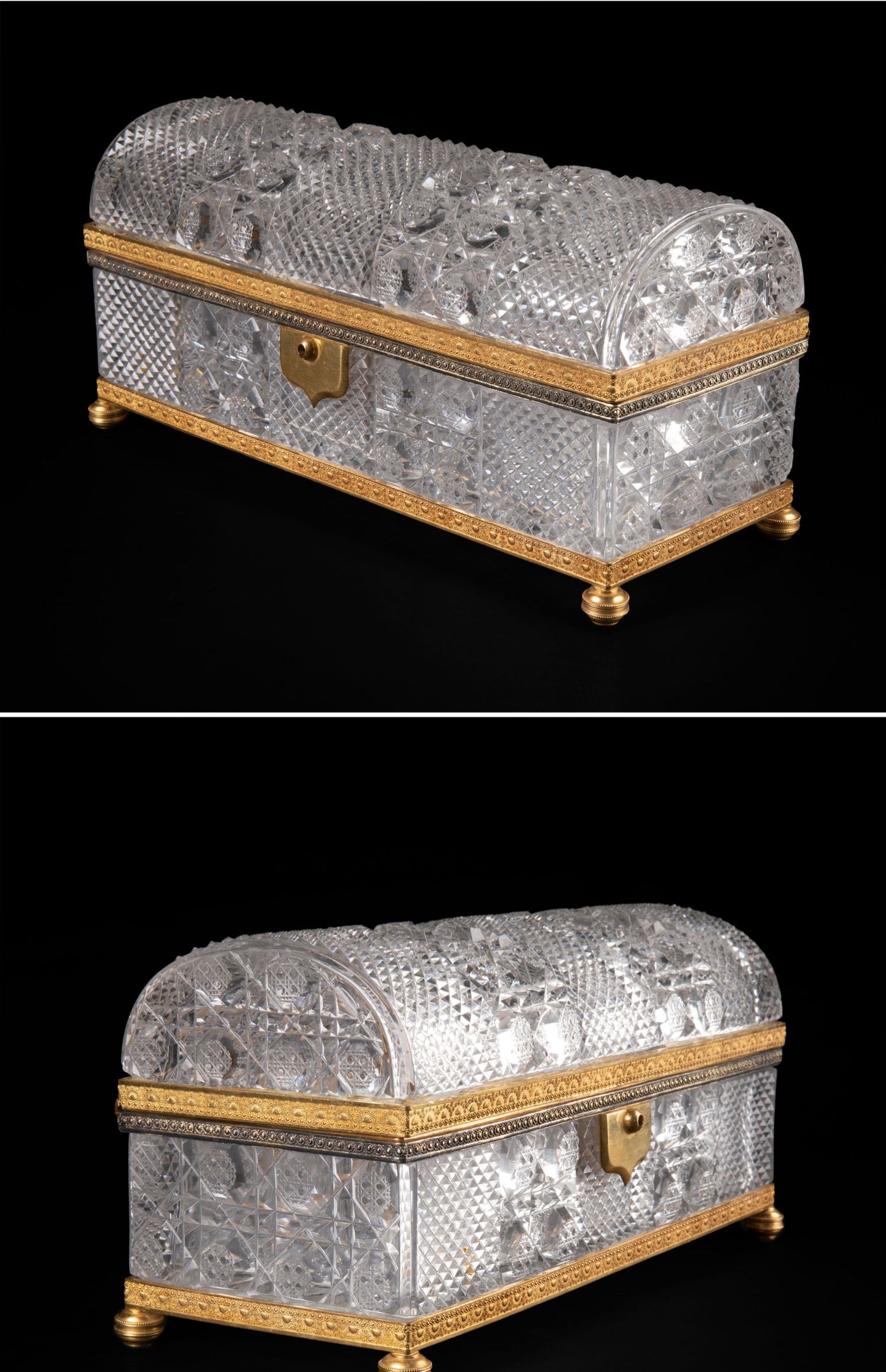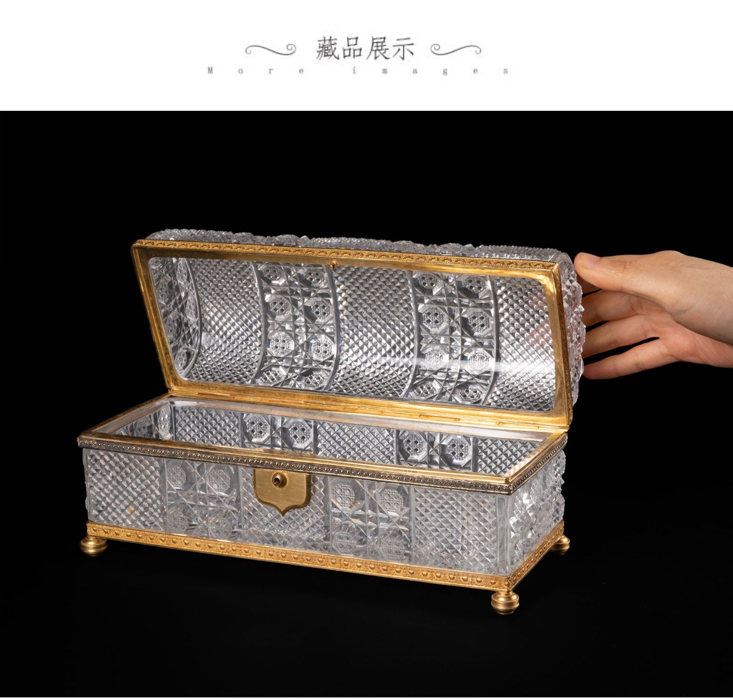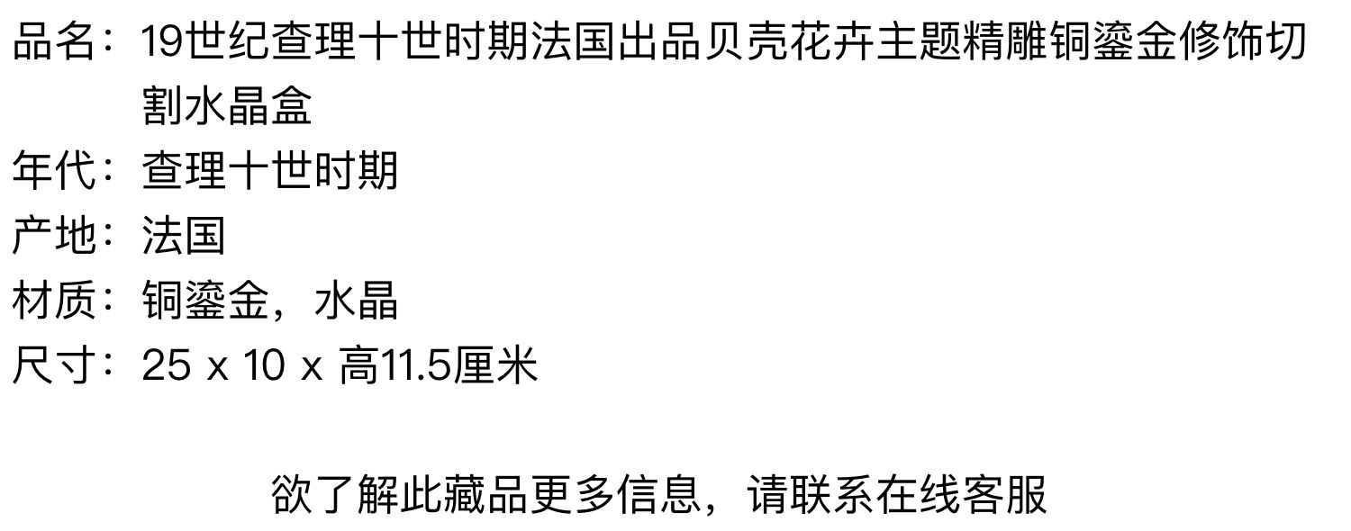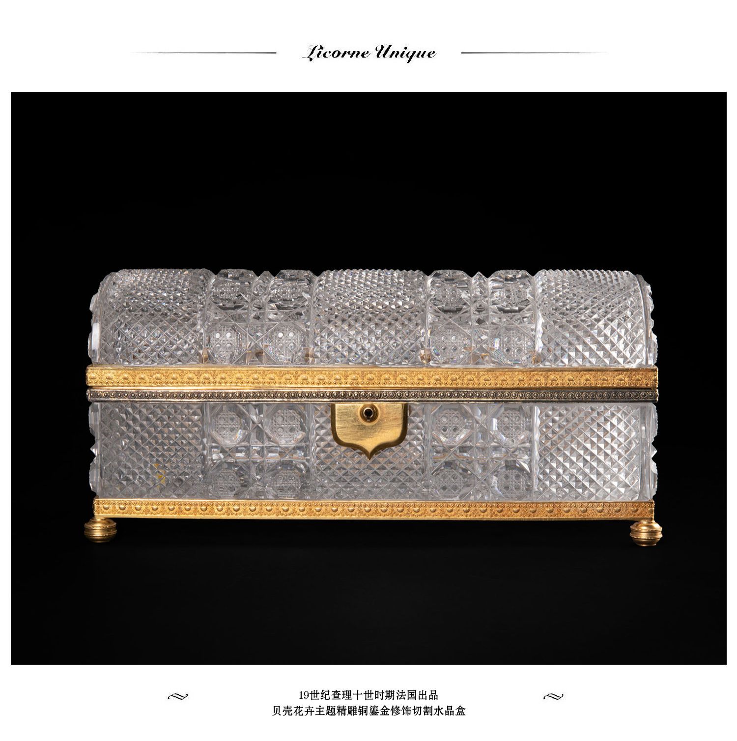 独角鹿西洋古董法国贝壳花卉精雕铜鎏金切割水晶盒首饰盒珍宝盒