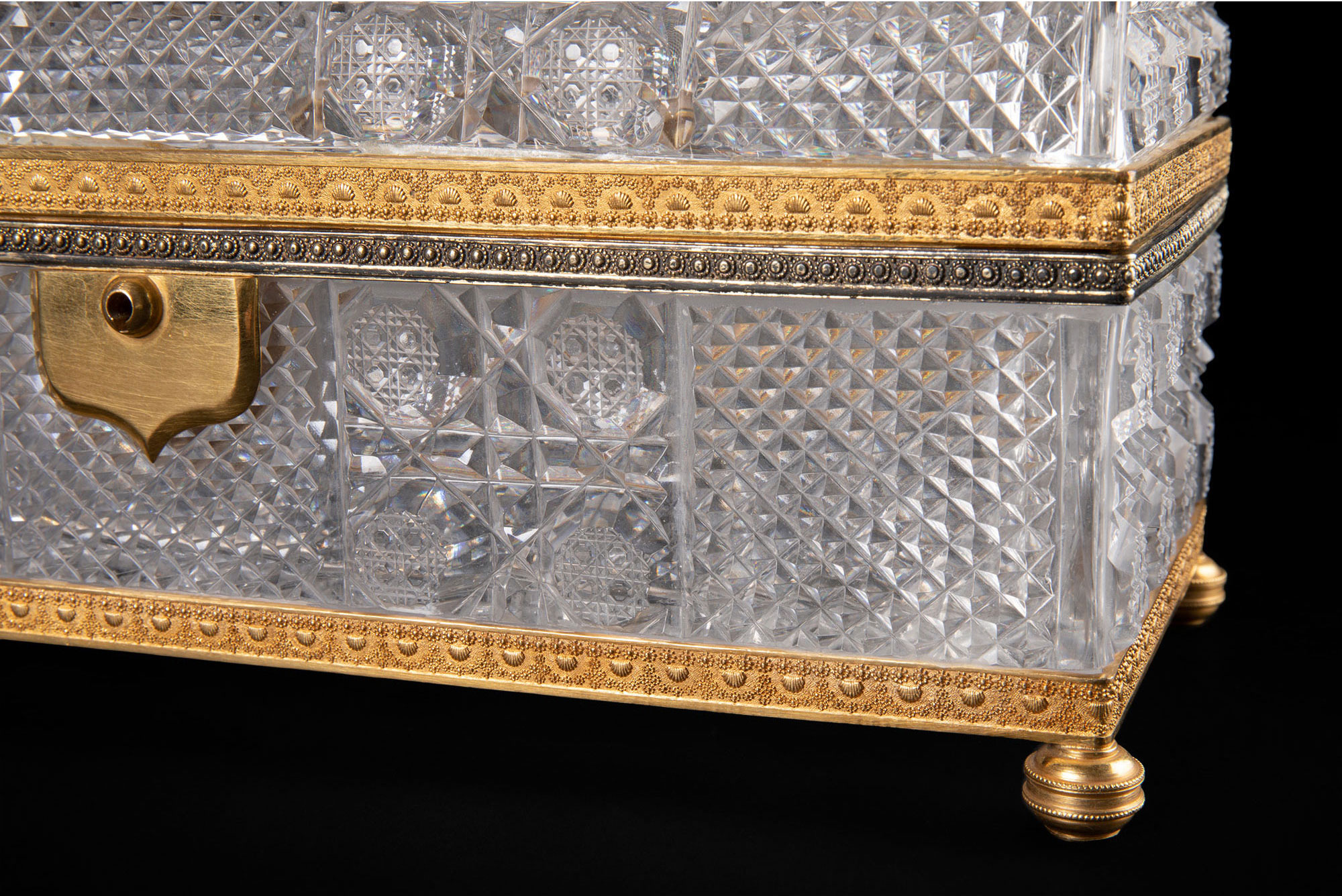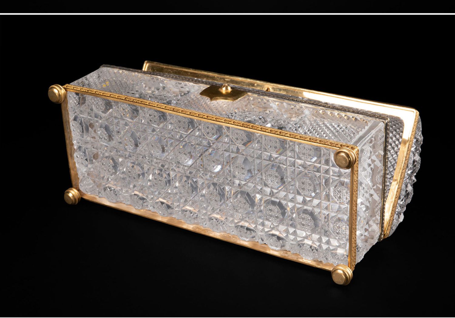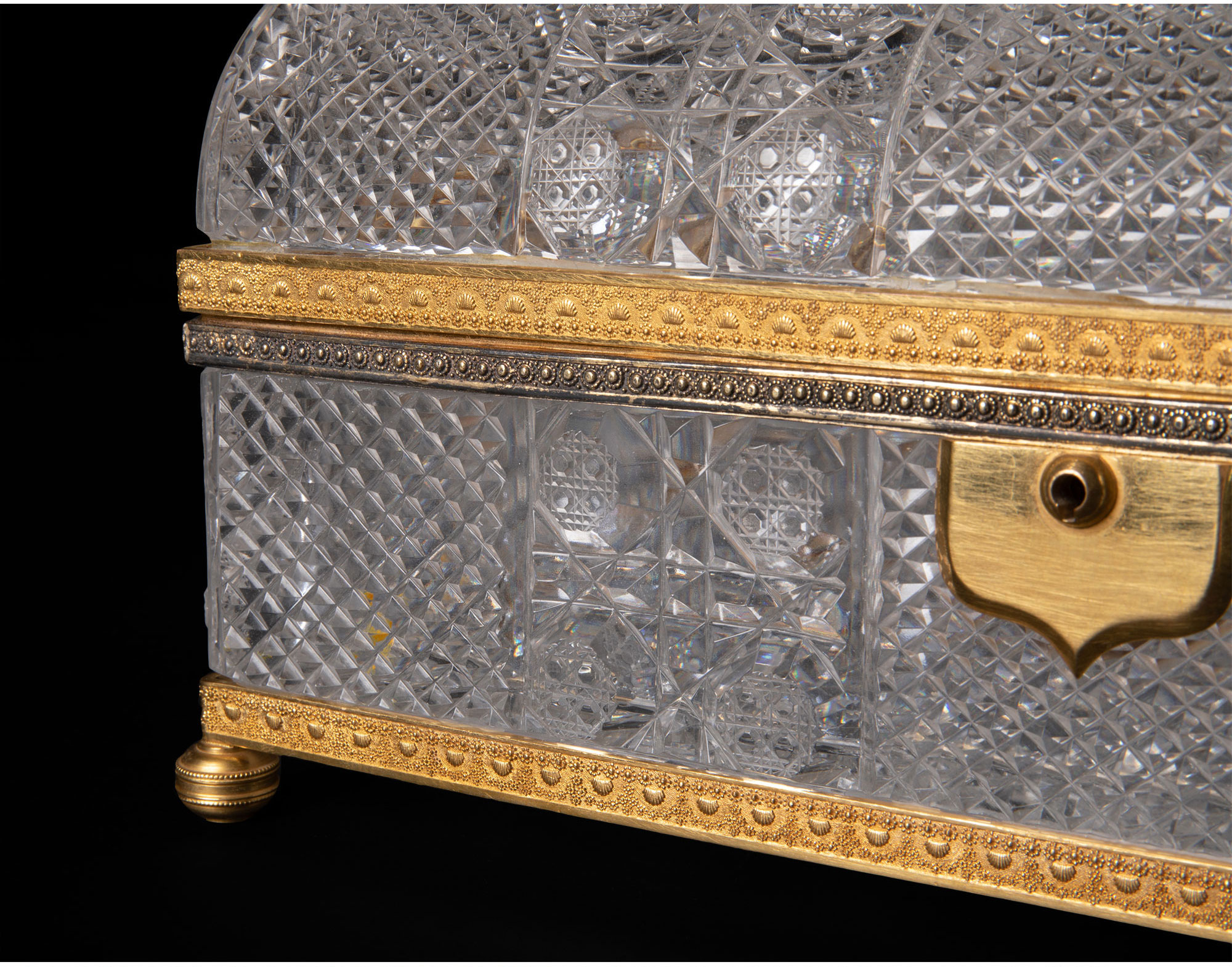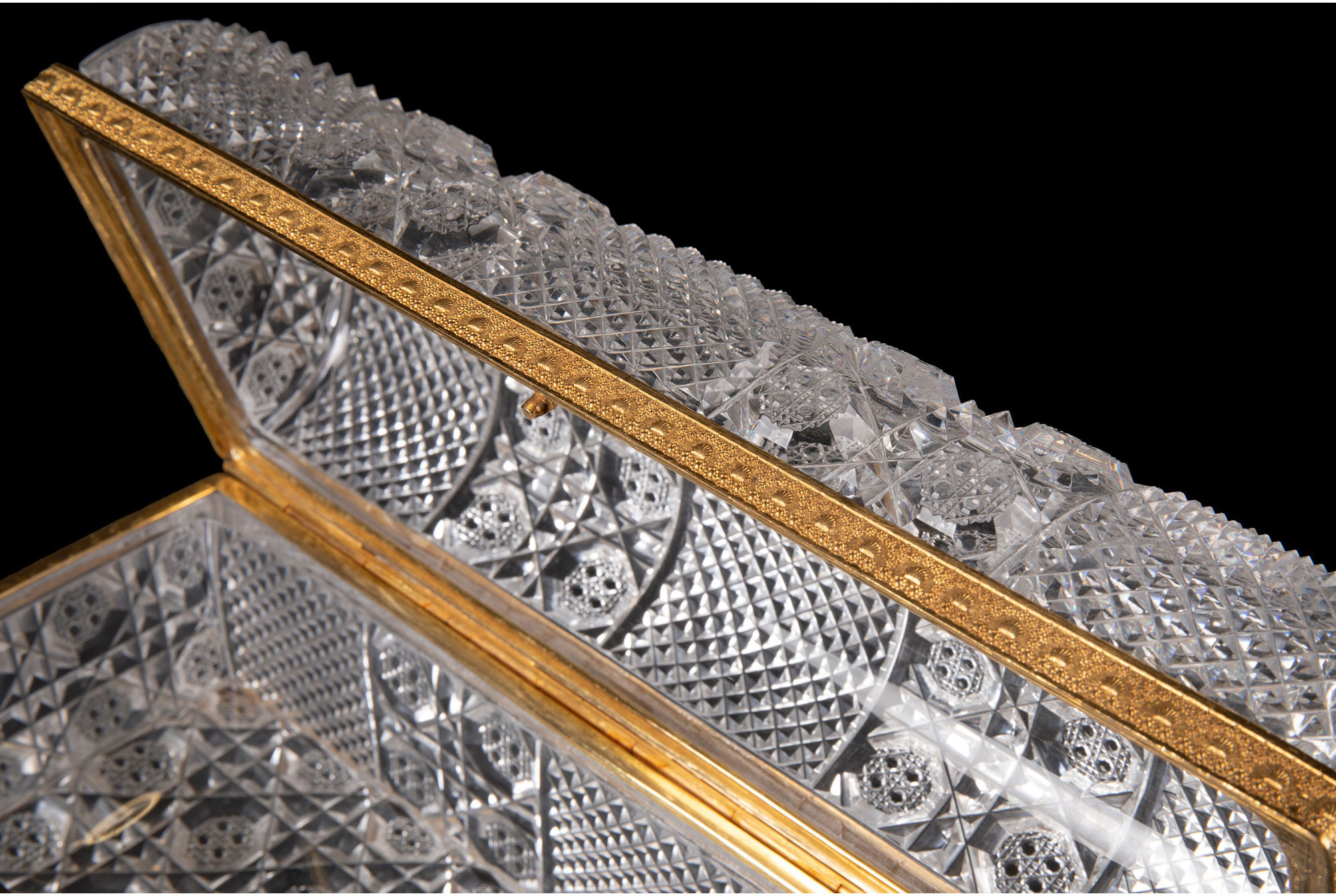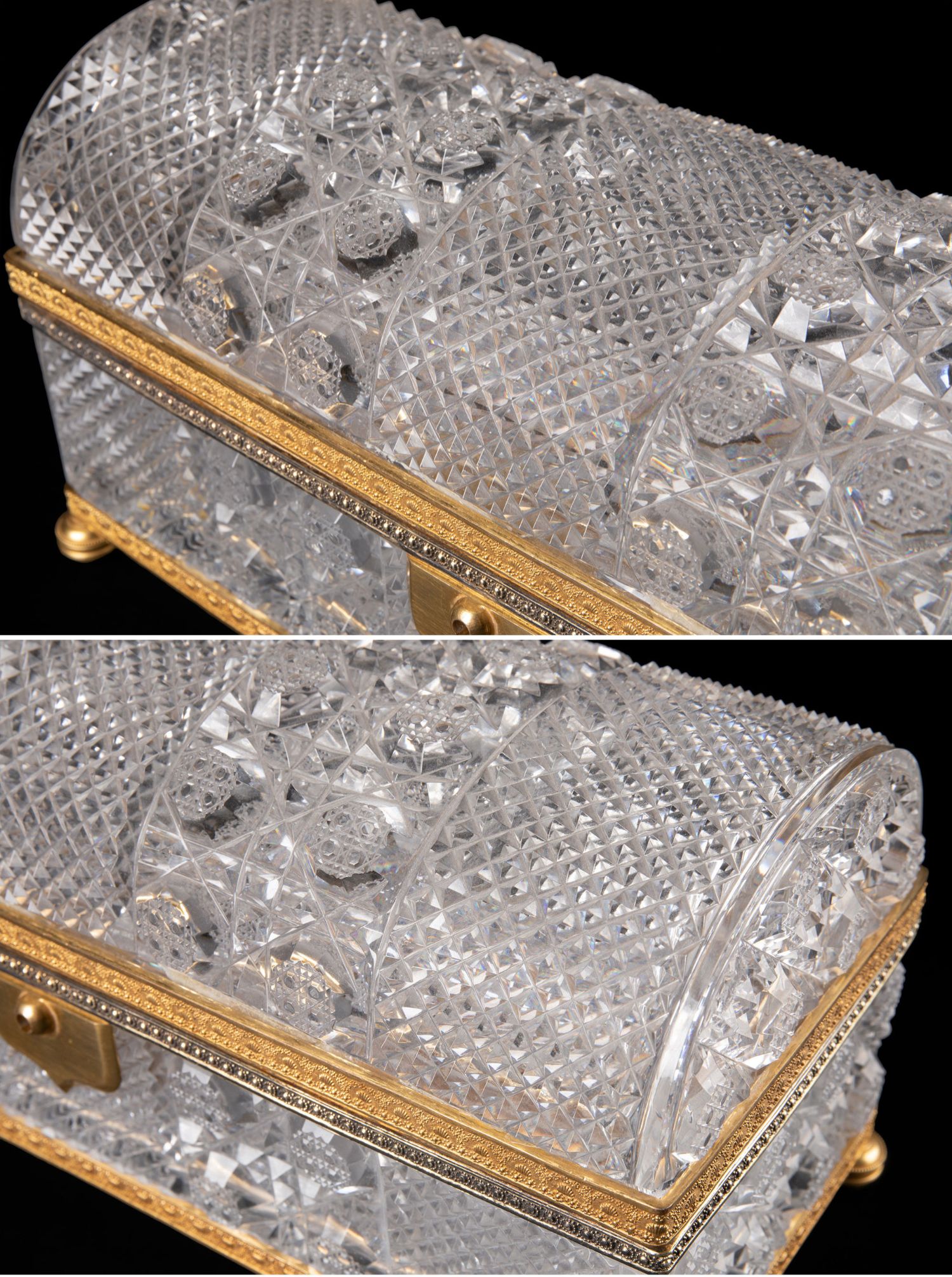 独角鹿西洋古董法国贝壳花卉精雕铜鎏金切割水晶盒首饰盒珍宝盒