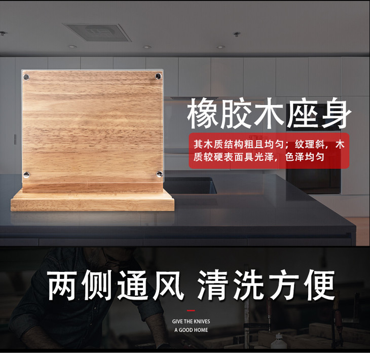 汉道-【V8刀座】橡胶木刀座常用厨房刀座方便收纳易清洗