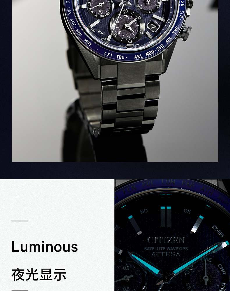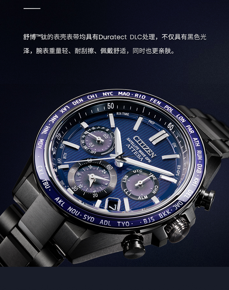 西铁城/CITIZEN光动能系列舒博钛DLC卫星对时男表CC4059-64L
