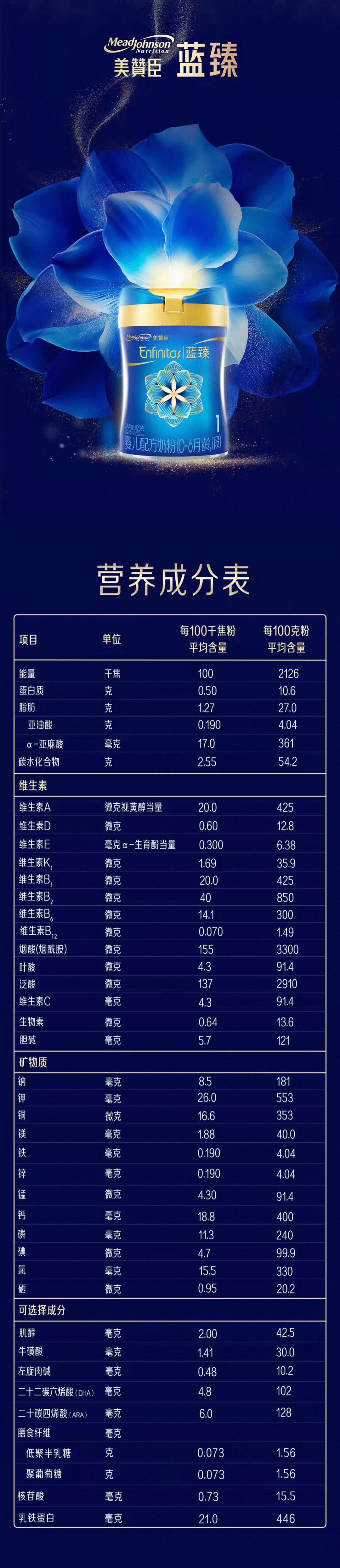 美赞臣蓝臻1段0-6月含乳铁蛋白婴儿配方牛奶粉820g*6罐
