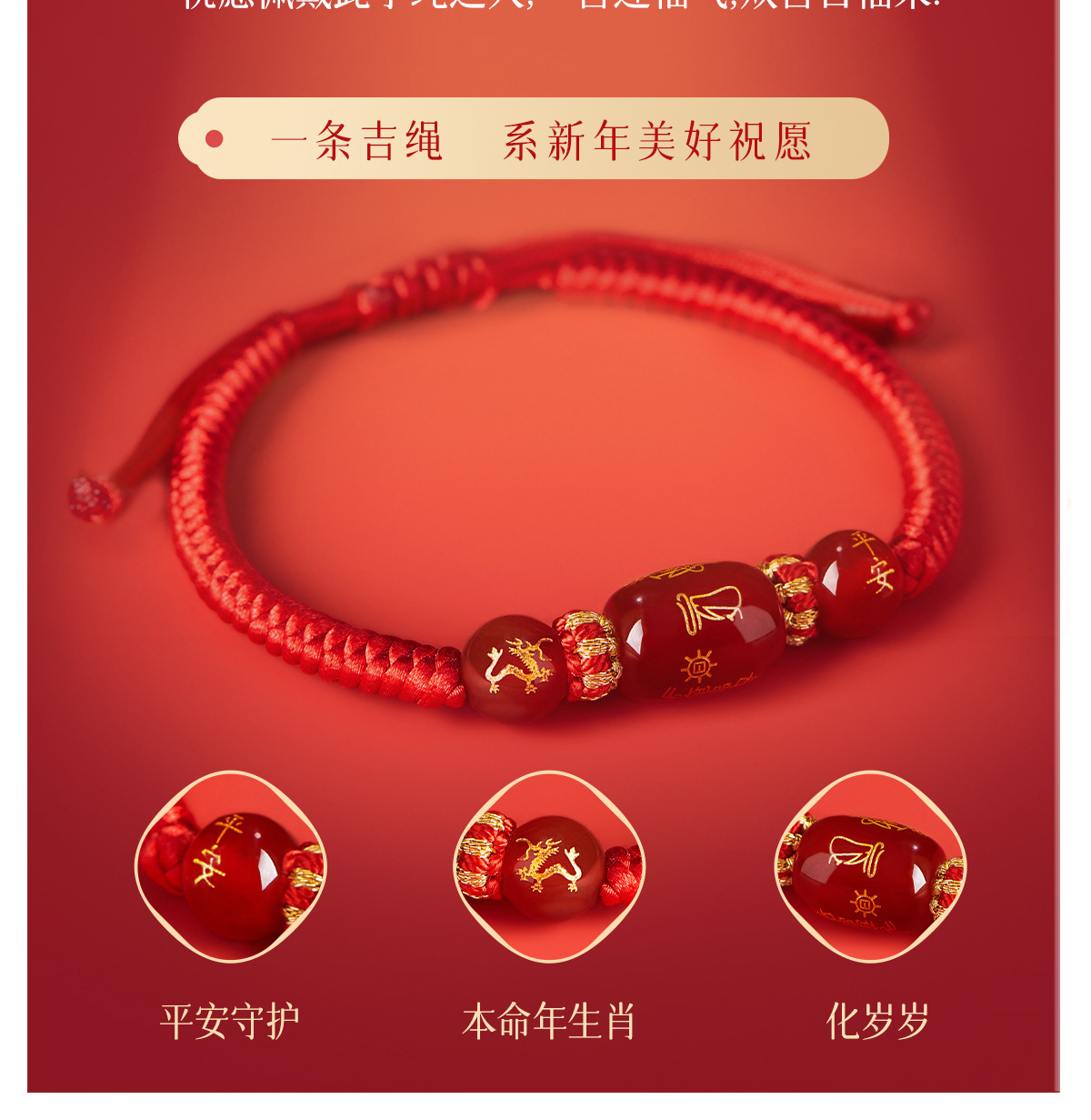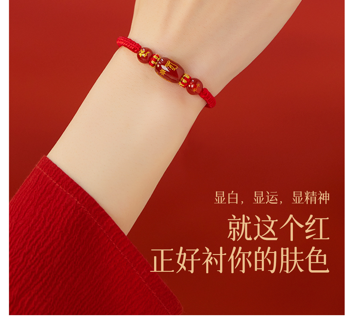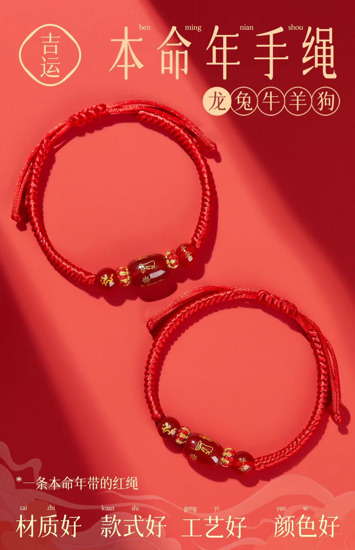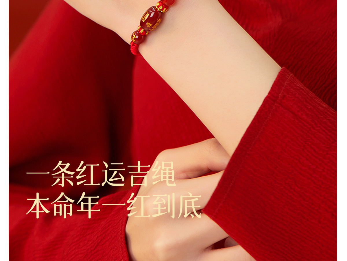 「十二生肖手链!太岁红绳」2024龙年本命年牛兔狗太岁化红绳手绳男女红色人工编织绳玛瑙手链时尚饰品