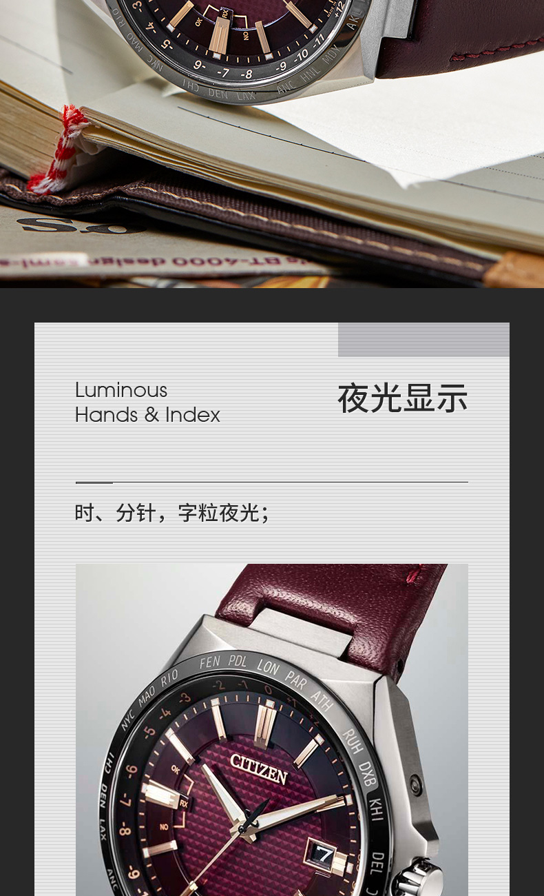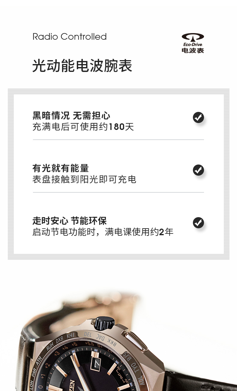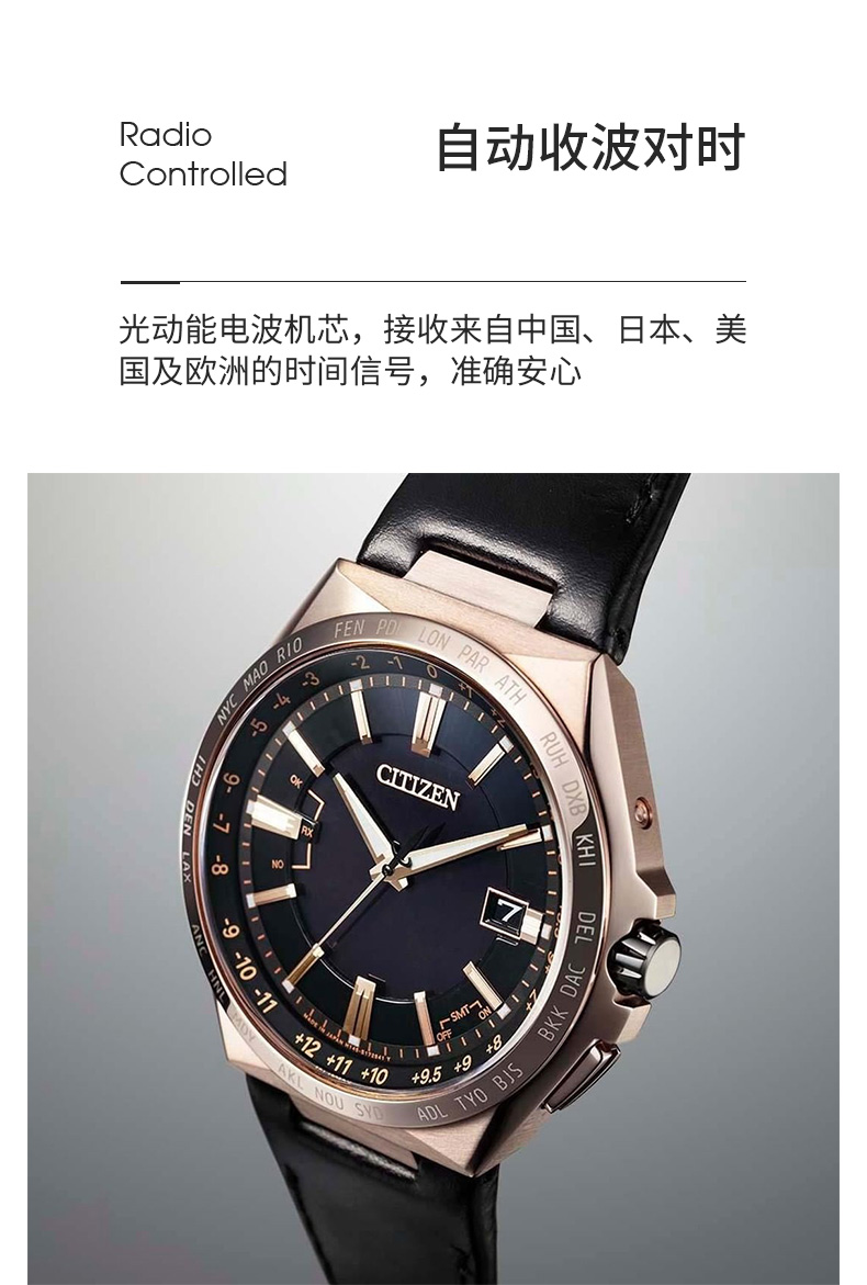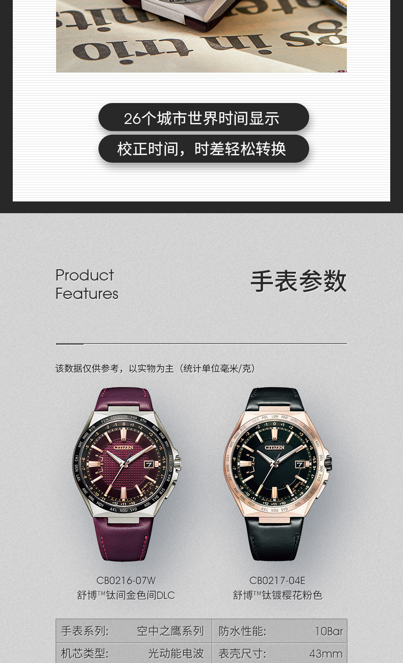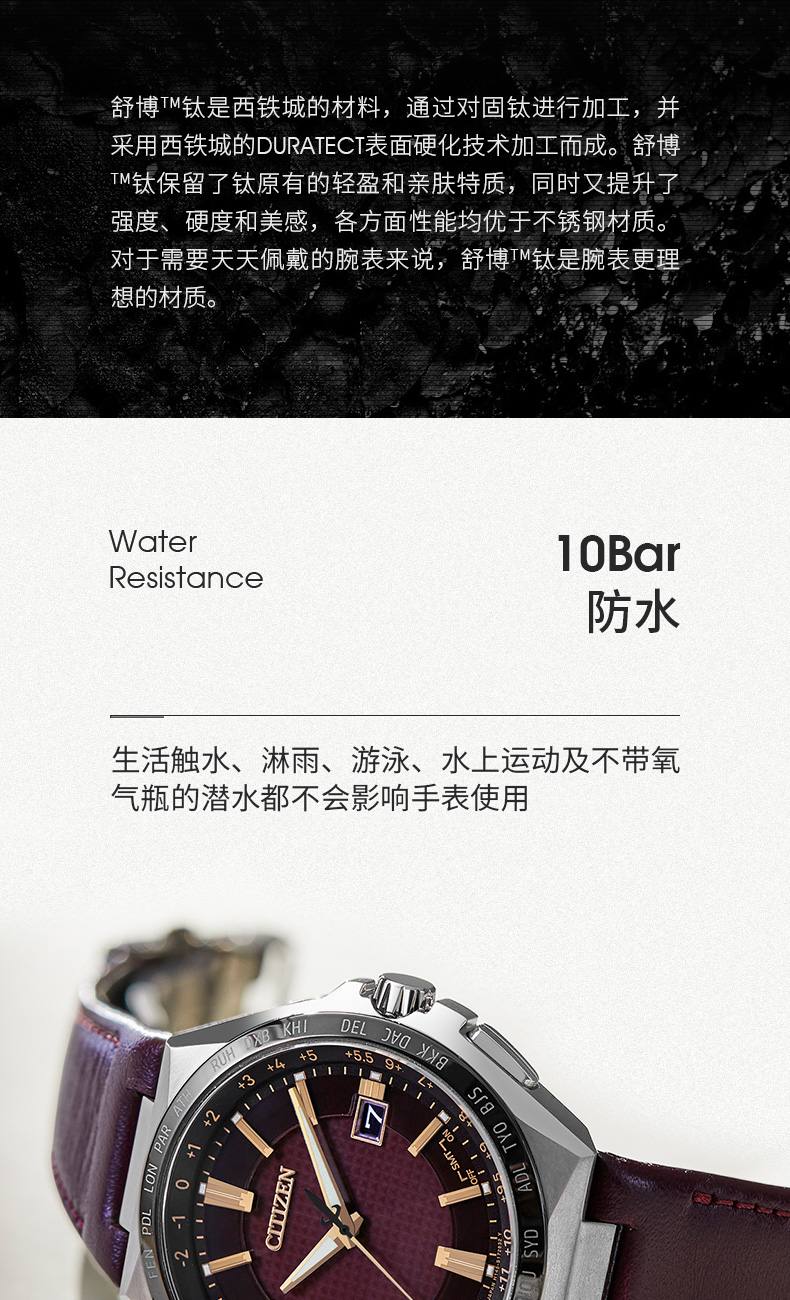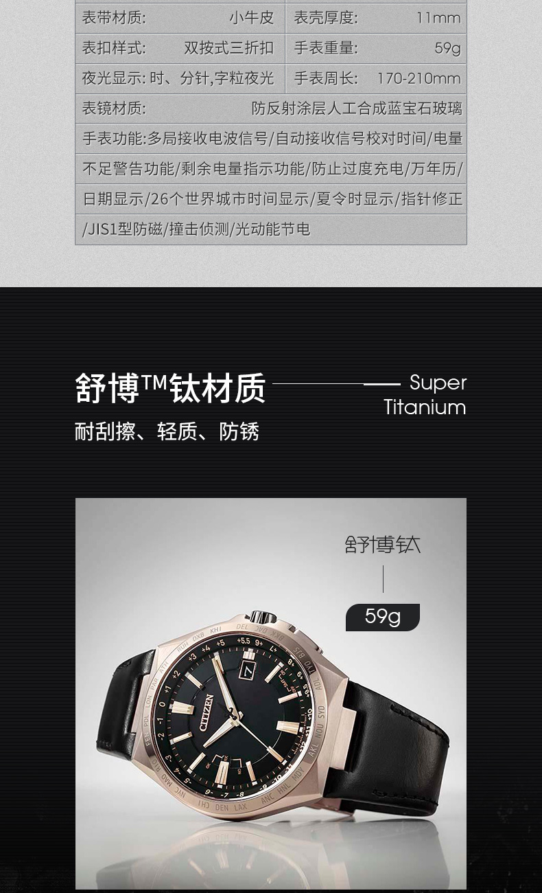 西铁城光动能舒博™钛间DLC多局电波表CB0216-07W