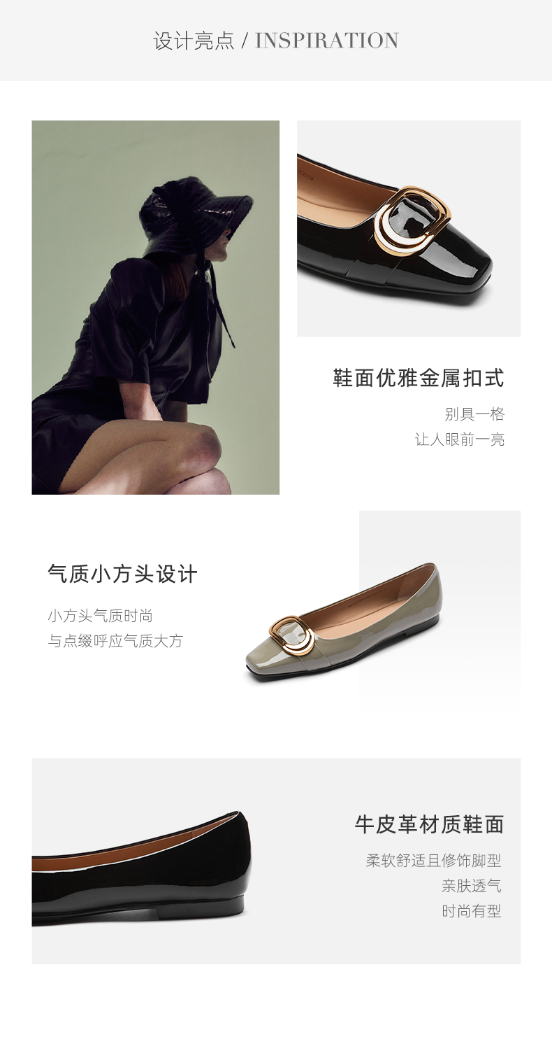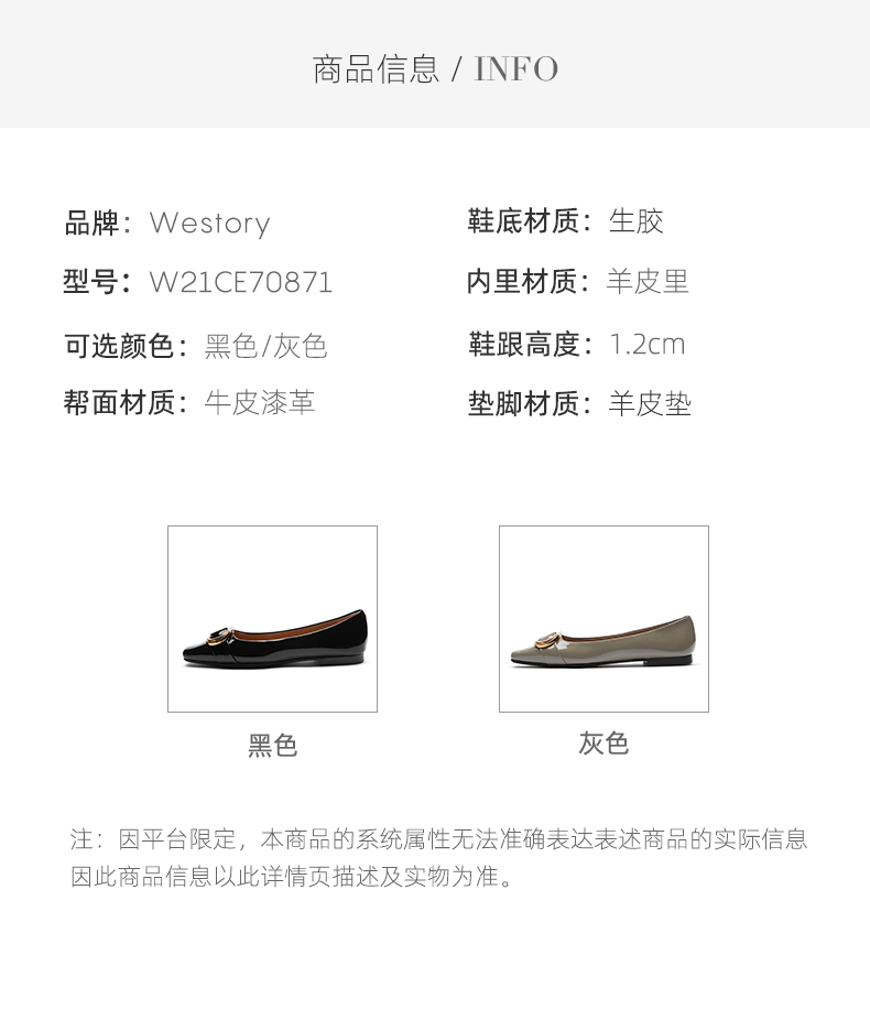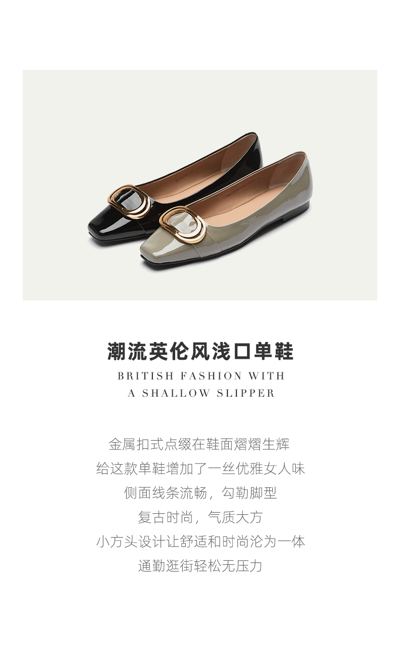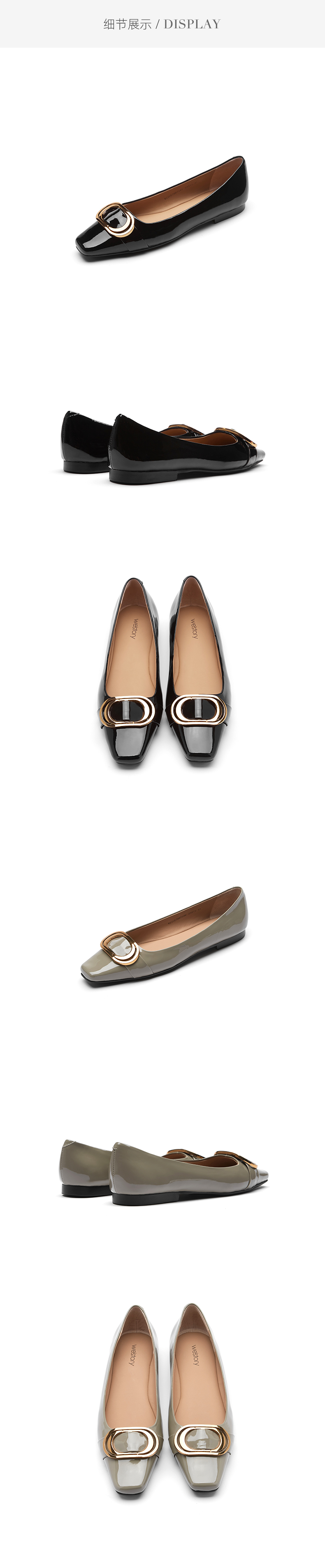 westory女鞋2021秋季新款漆皮浅口尖头奶奶鞋平底单鞋W21CE70871
